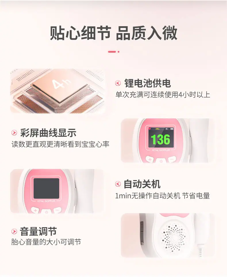 Medidor Portátil de Frecuencia Cardíaca Fetal Kangtai Doppler Monitor de Frecuencia Cardíaca Fetal para el Hogar Mujeres Embarazadas Movimiento Fetal Medidor de Frecuencia Cardíaca Fetal Venta al por Mayor Transfronteriza