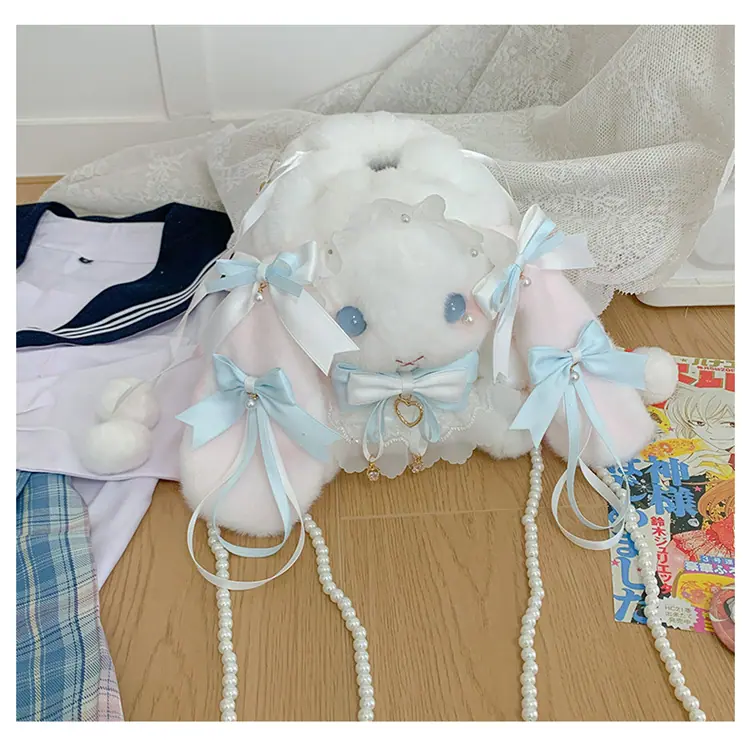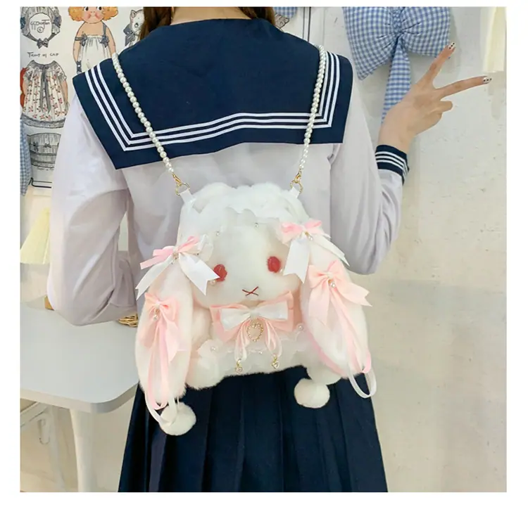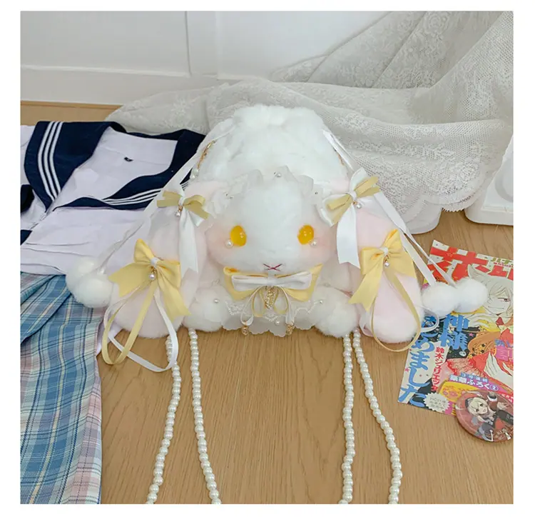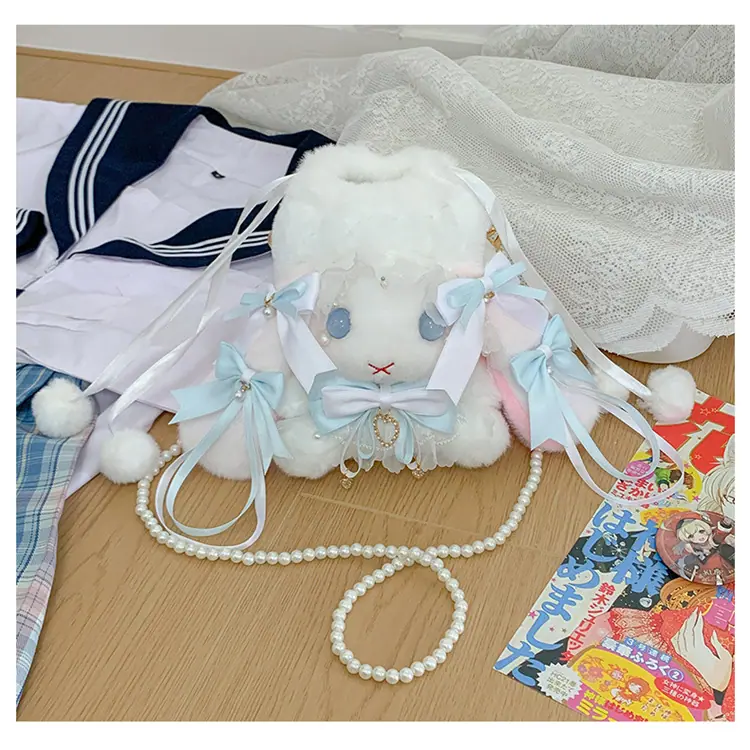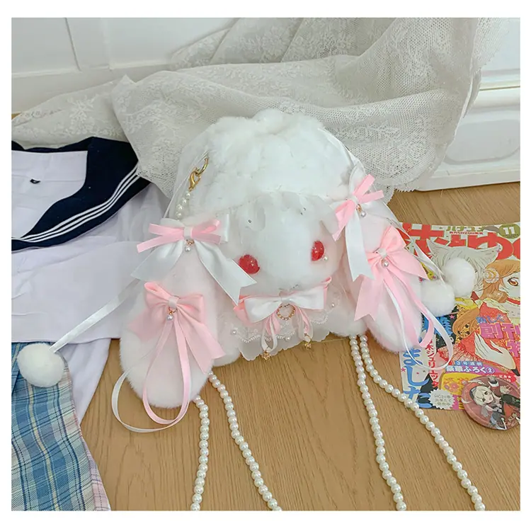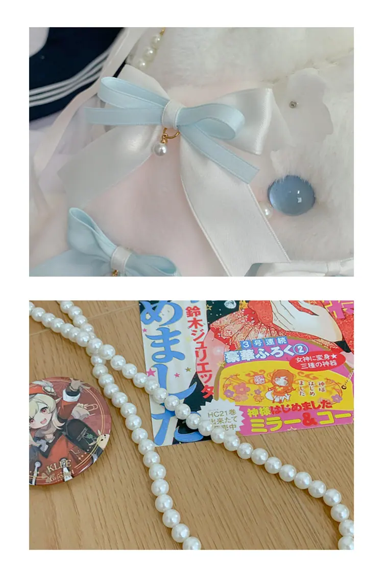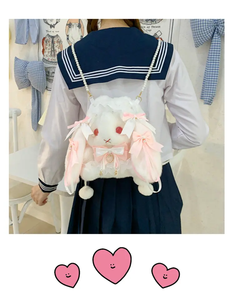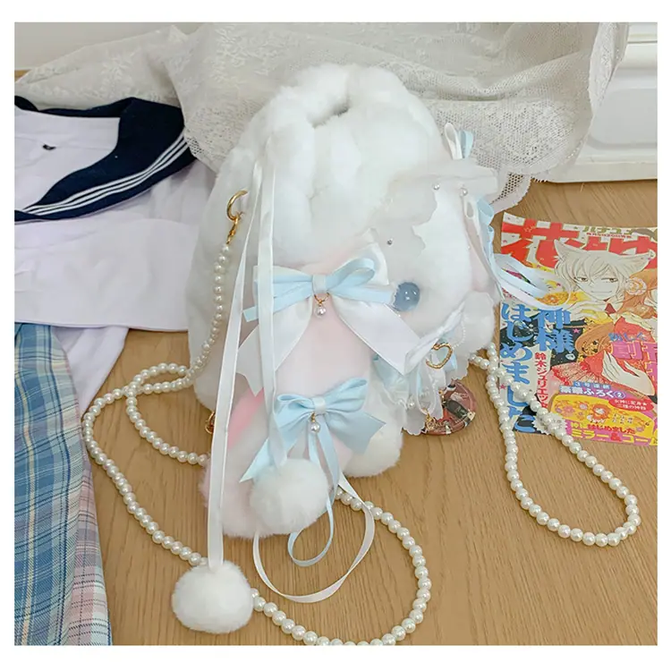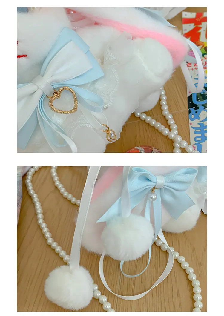 Lindo Dulce Peluche Muñeca Bolso de Hombro Cadena de Perlas Mochila Lolita Japonesa Lazo Conejo Bolso