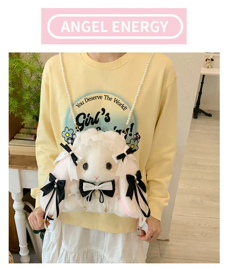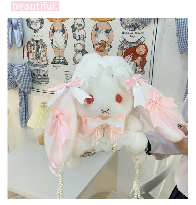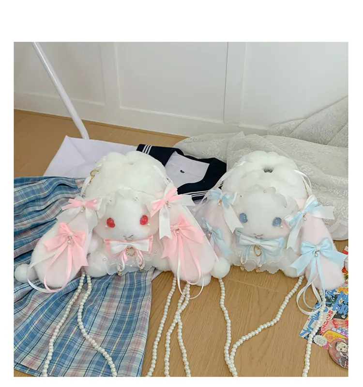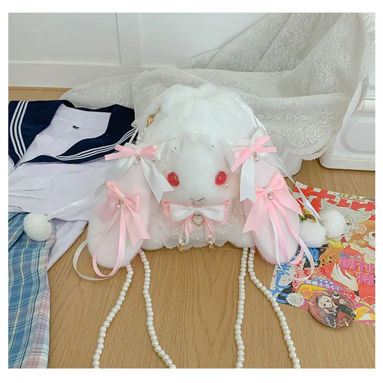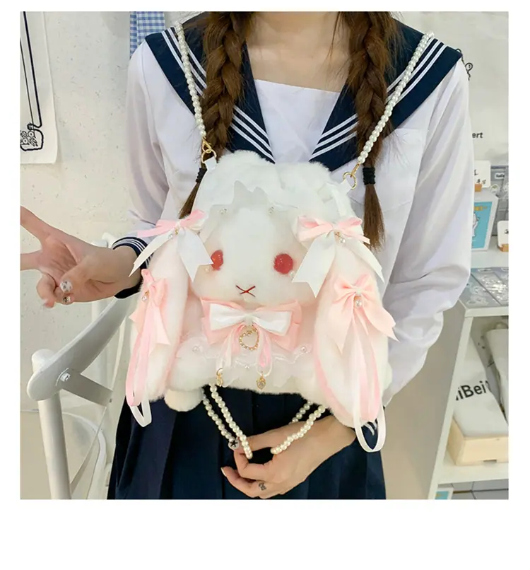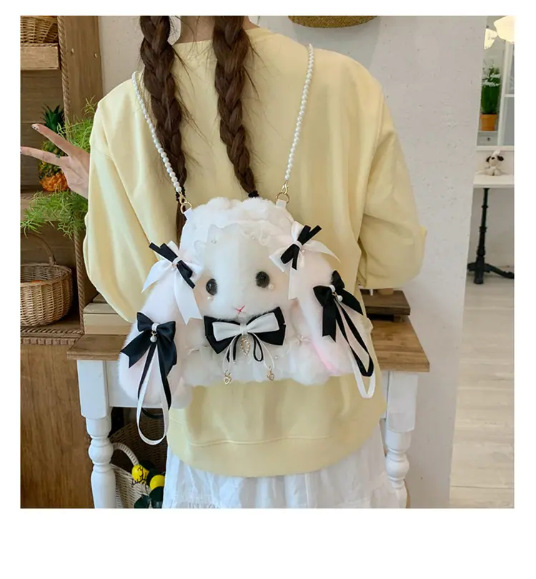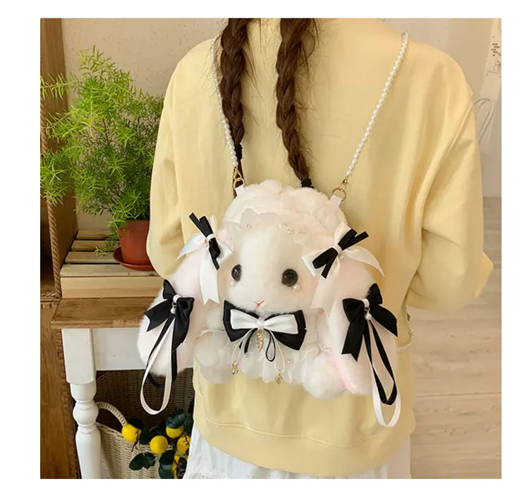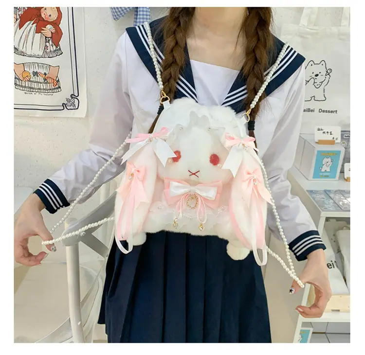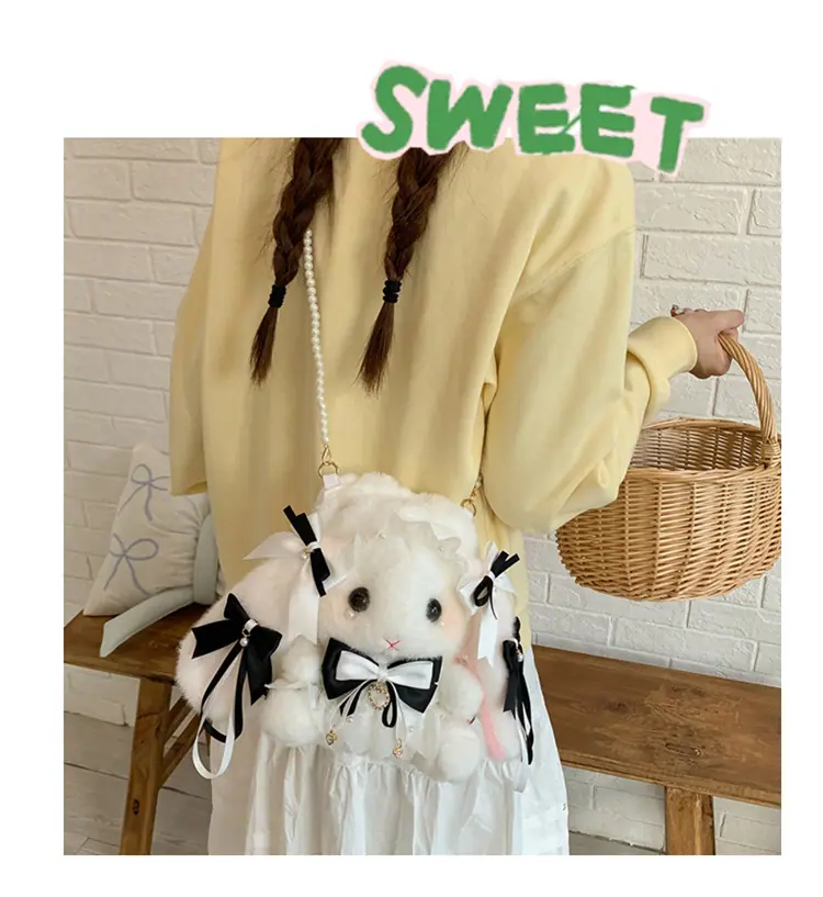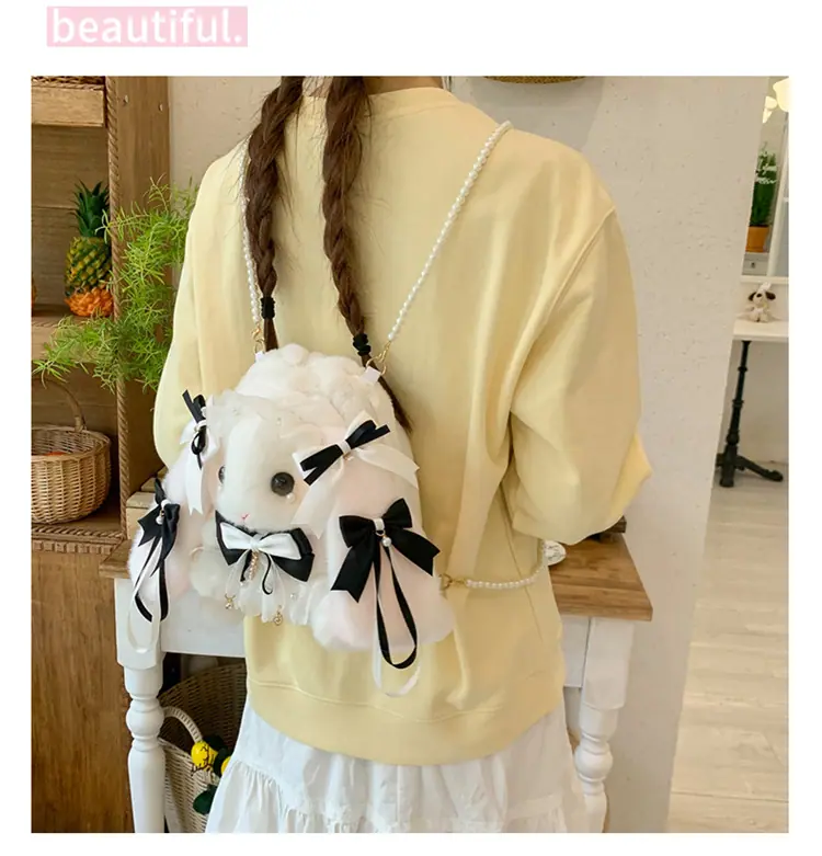 Lindo Dulce Peluche Muñeca Bolso de Hombro Cadena de Perlas Mochila Lolita Japonesa Lazo Conejo Bolso