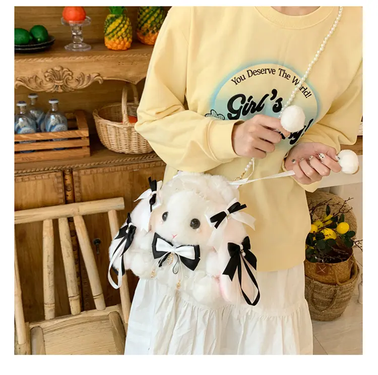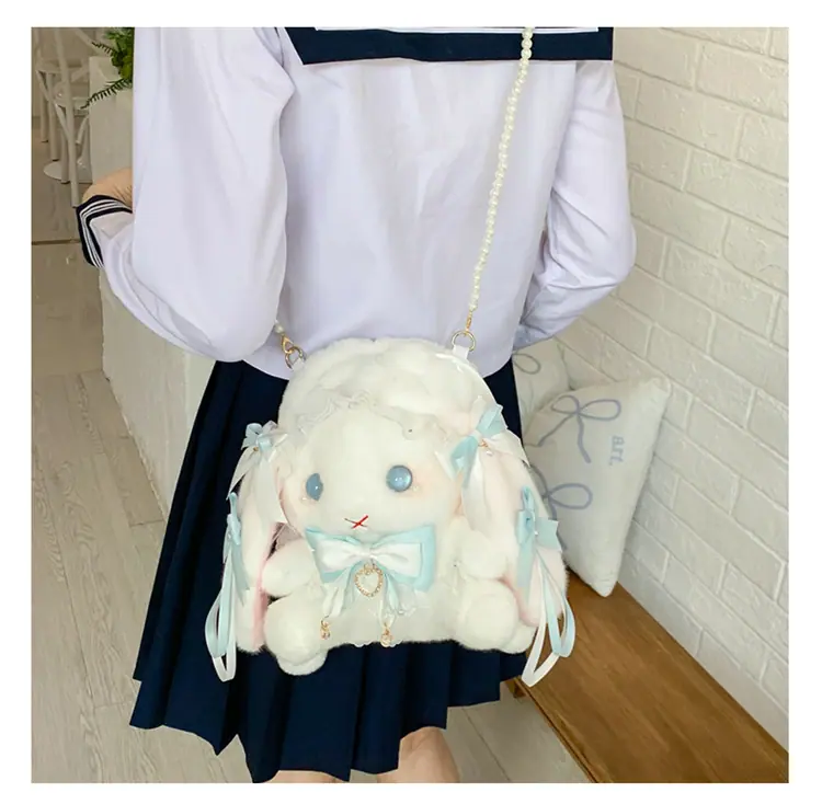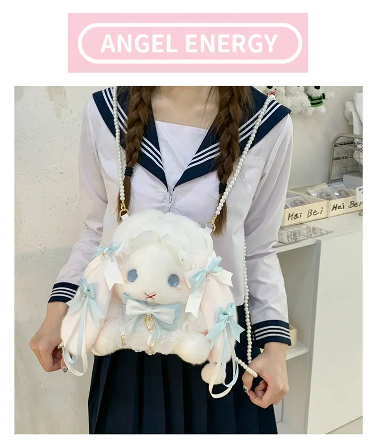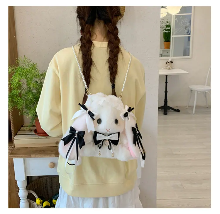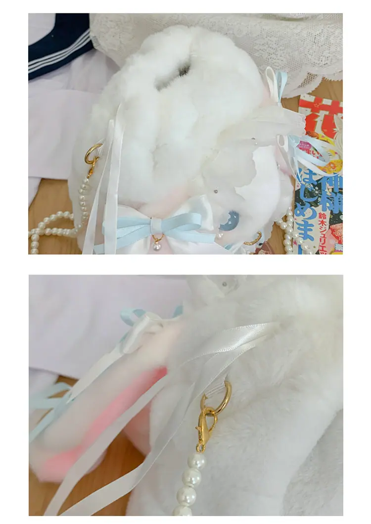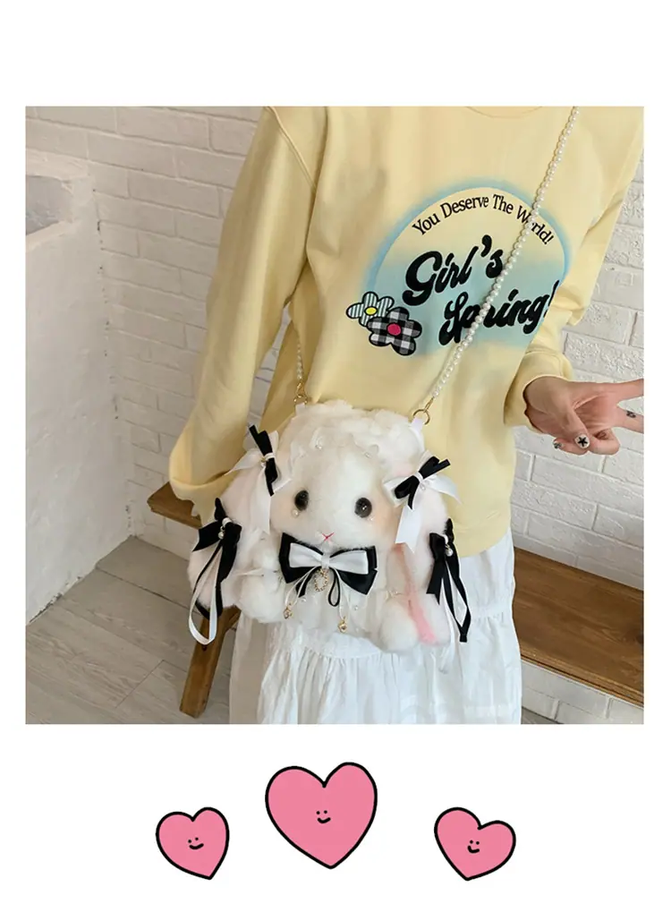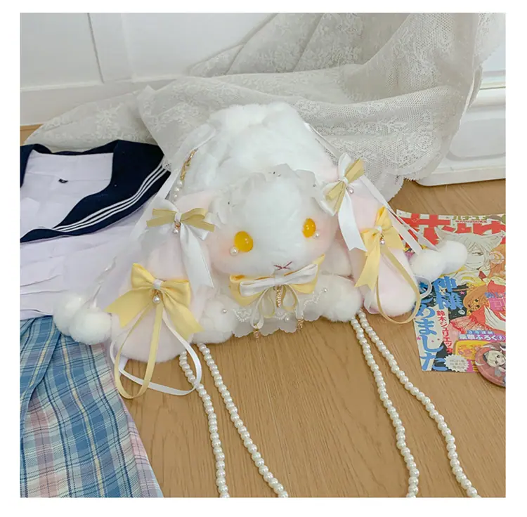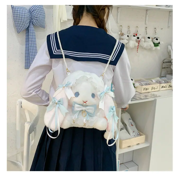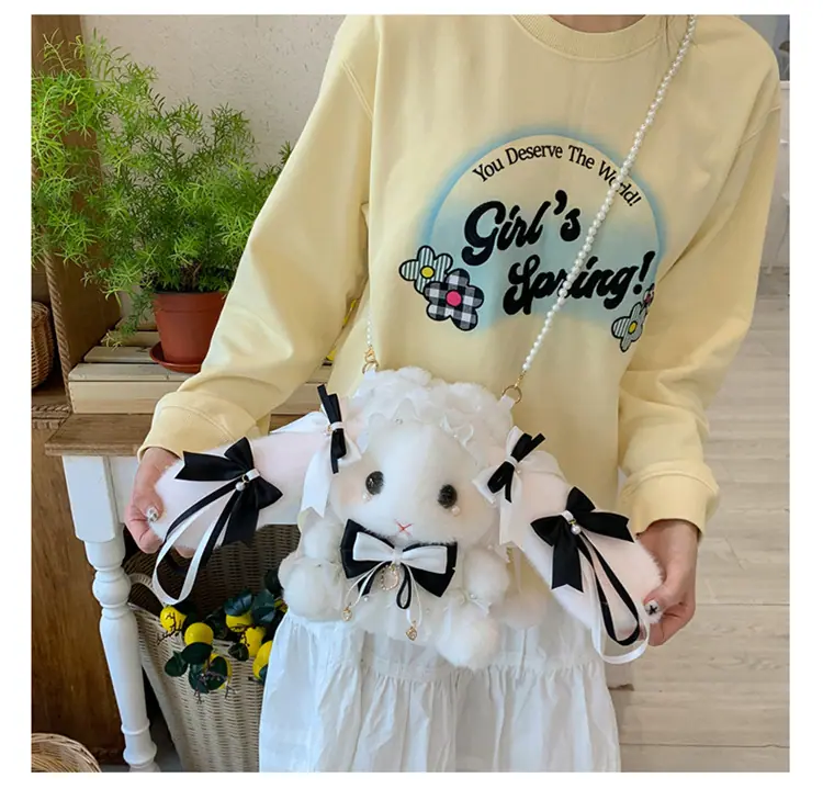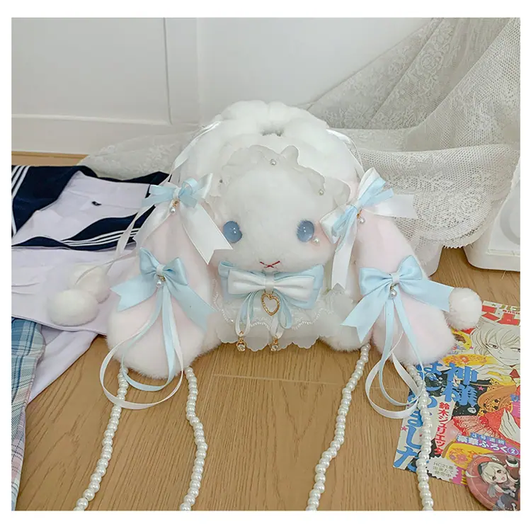 Lindo Dulce Peluche Muñeca Bolso de Hombro Cadena de Perlas Mochila Lolita Japonesa Lazo Conejo Bolso
