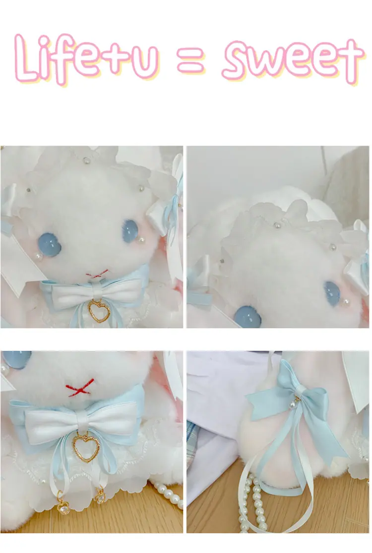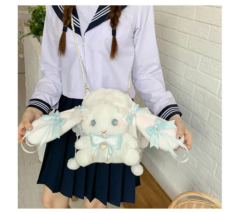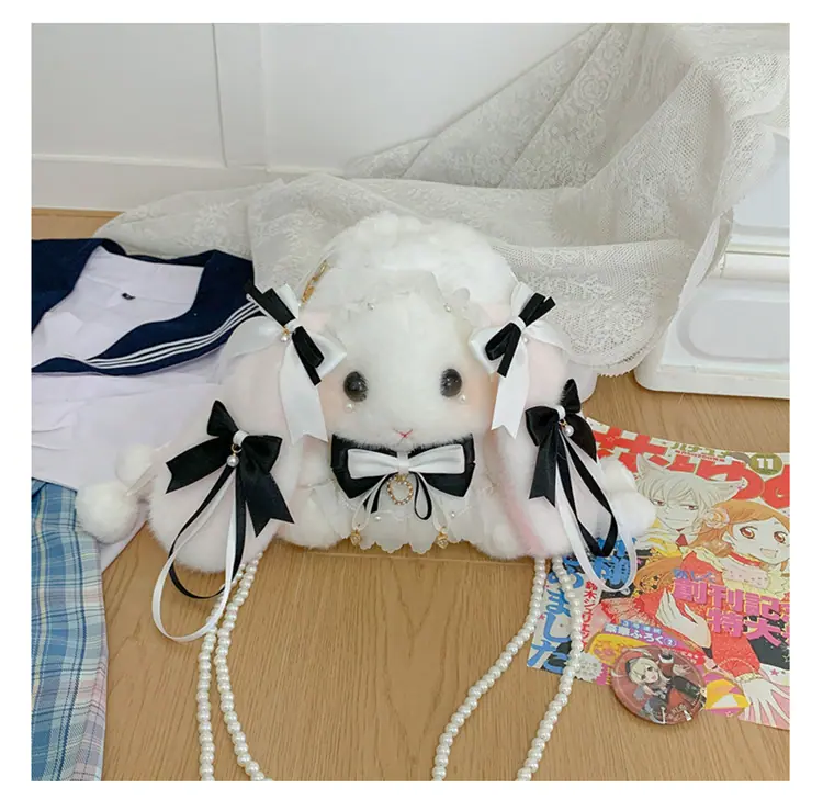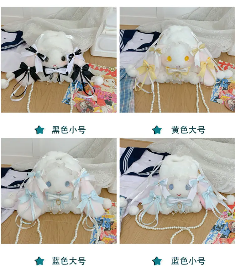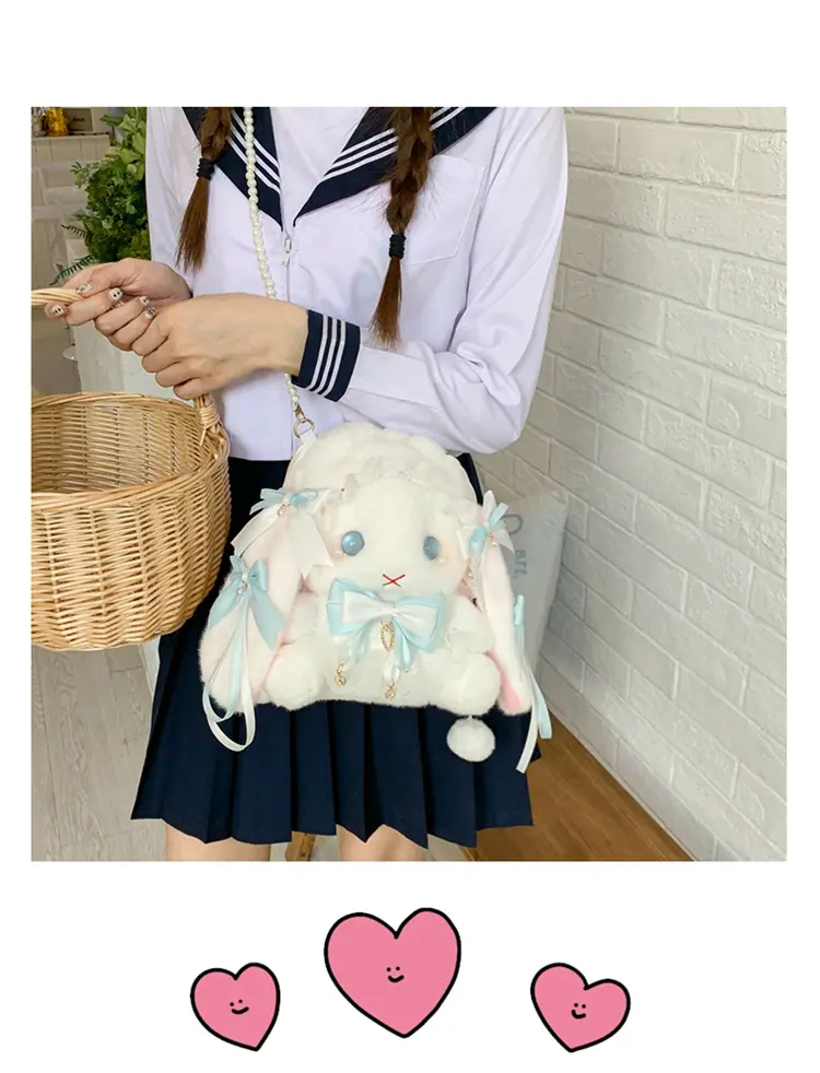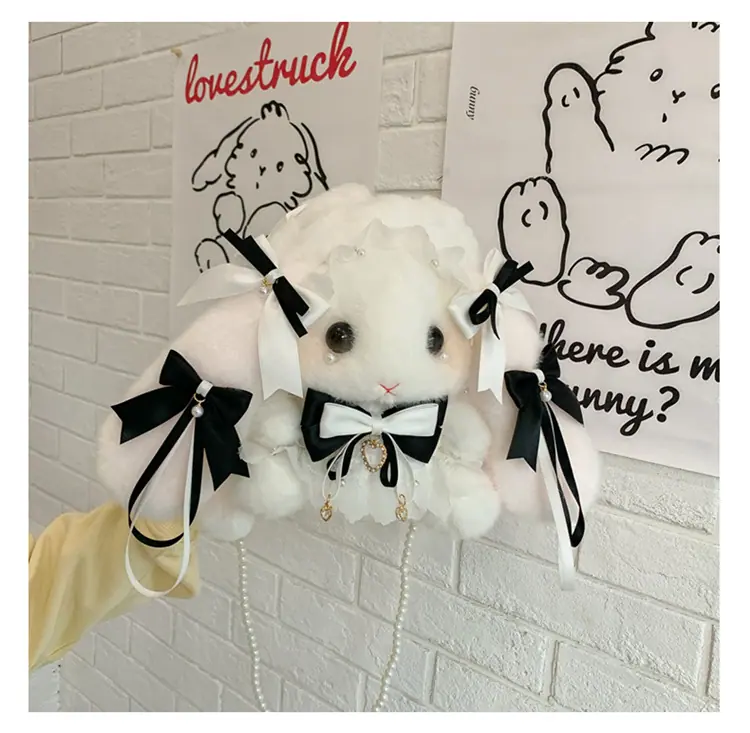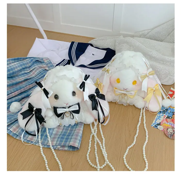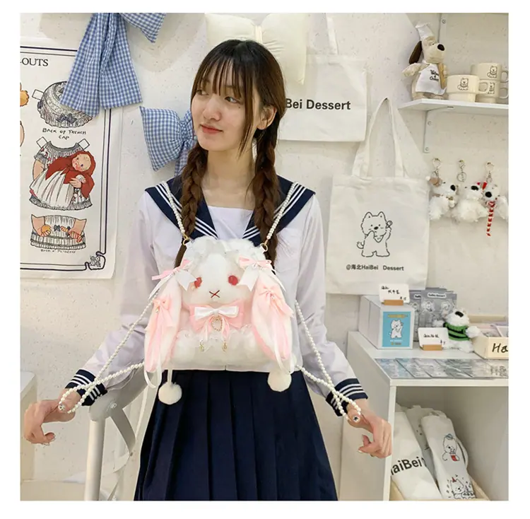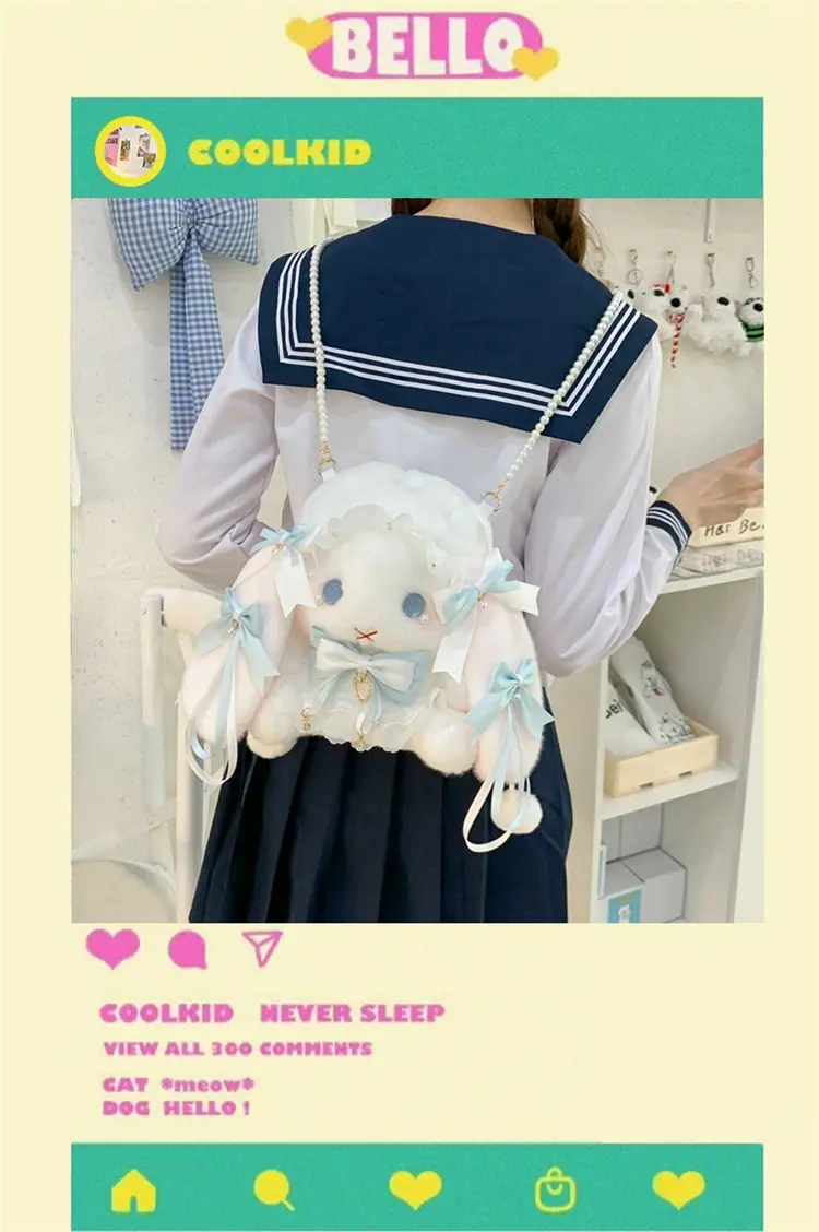 Lindo Dulce Peluche Muñeca Bolso de Hombro Cadena de Perlas Mochila Lolita Japonesa Lazo Conejo Bolso