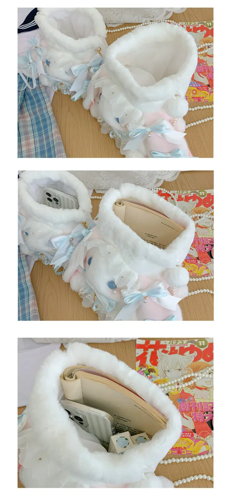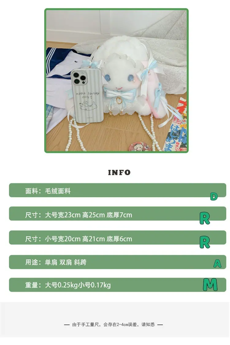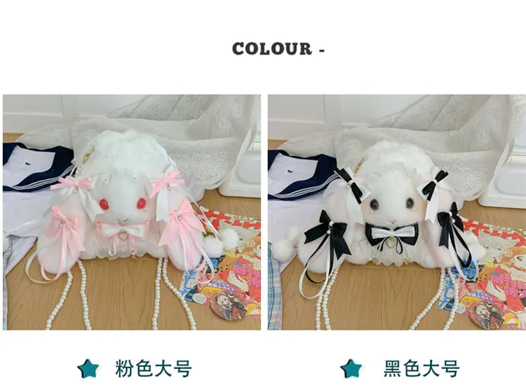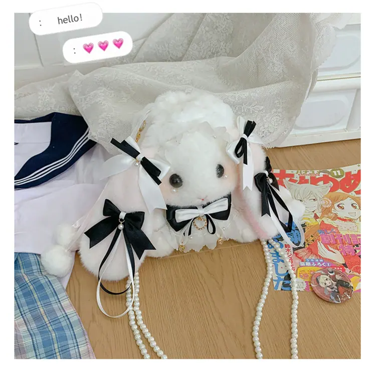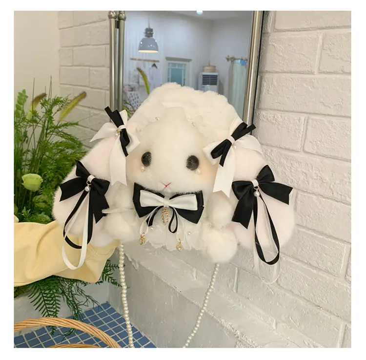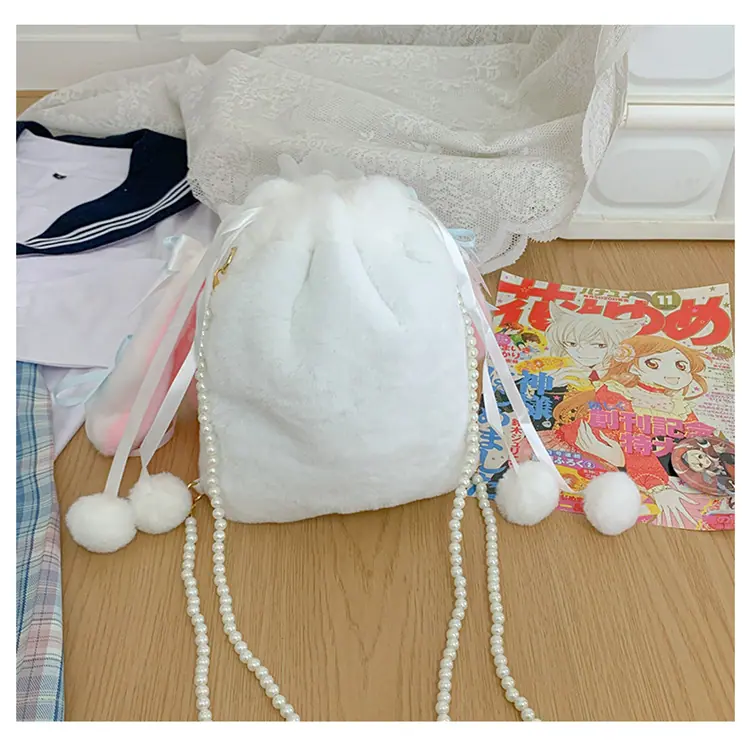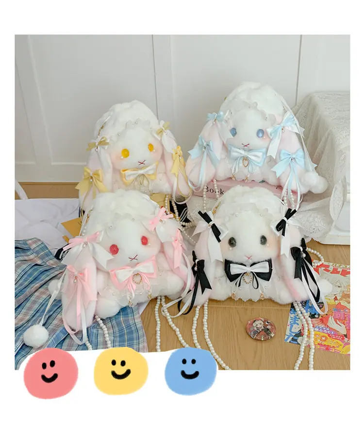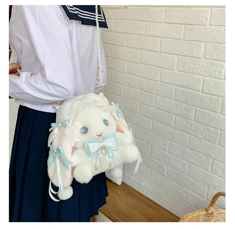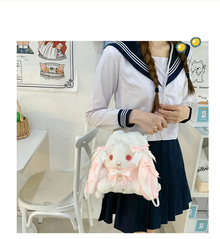 Lindo Dulce Peluche Muñeca Bolso de Hombro Cadena de Perlas Mochila Lolita Japonesa Lazo Conejo Bolso