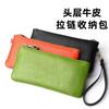 Cartera de Cuero Genuino Moda Femenina Delgada Larga Bolso de Mano para Teléfono Móvil Gran Capacidad Almacenamiento Cremallera Billetera para Monedas Bolso Cartera