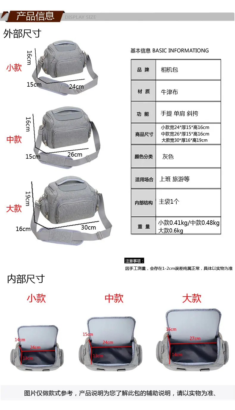 Slr camera bag, Single battery/mirrorless camera bag, Portable/card camera bag