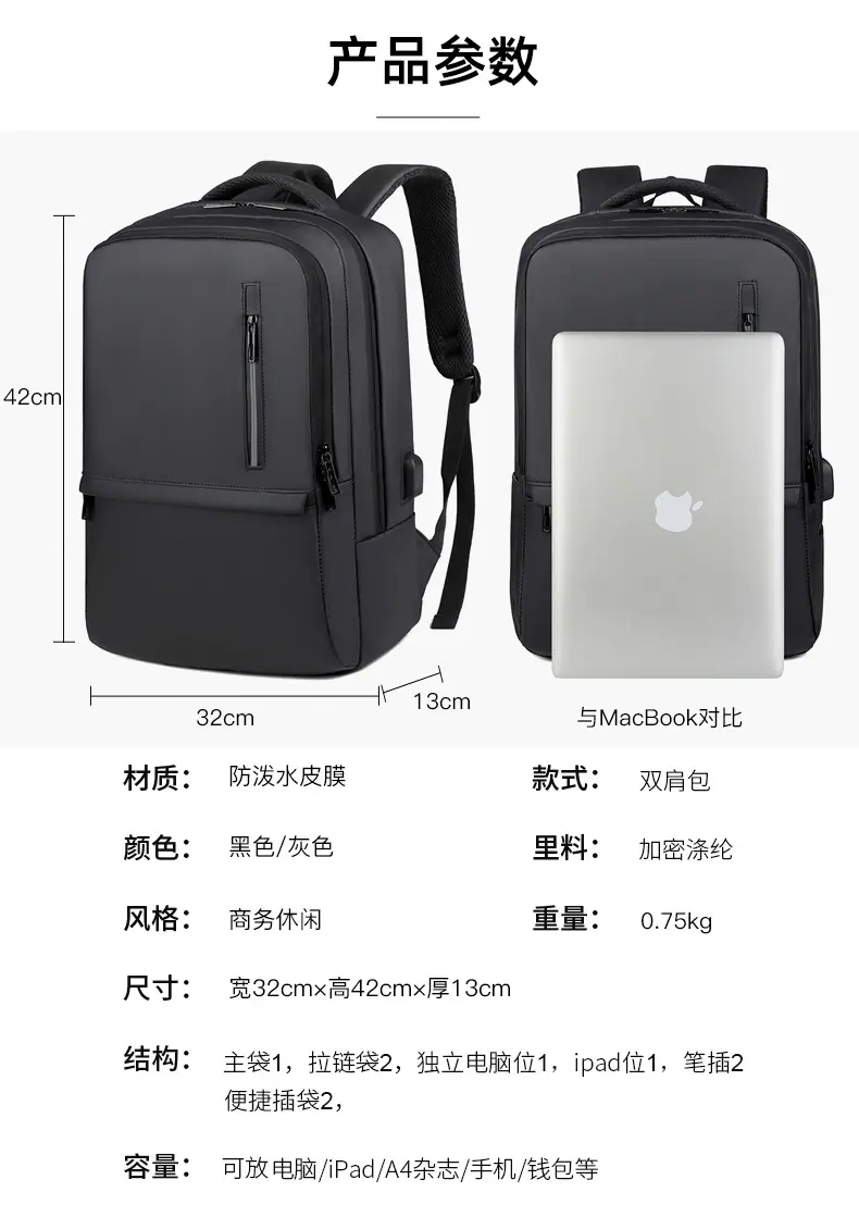 Mochila de Moda para Viajeros de Negocios Transfronterizos de Gran Capacidad para Estudiantes Mochila de Viaje Multifuncional para Hombre