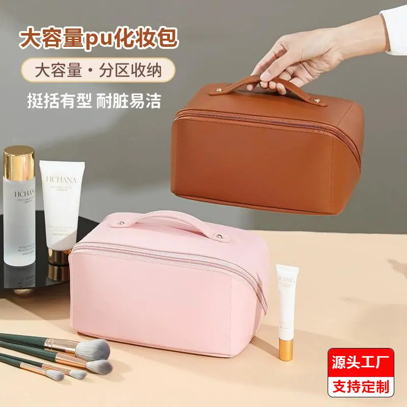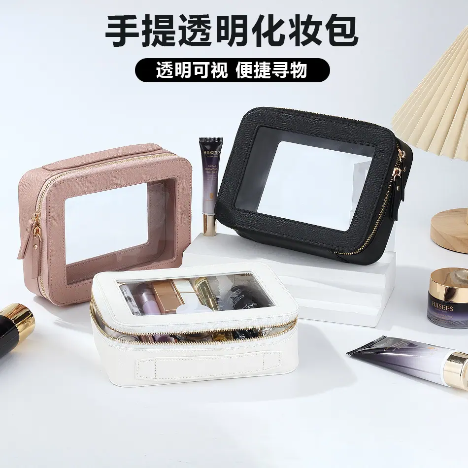 Bolsa de maquillaje de ventana grande de alta venta transfronteriza europea y americana, bolsa de aseo, viaje, hogar, gran capacidad, viaje de negocios, PU impermeable