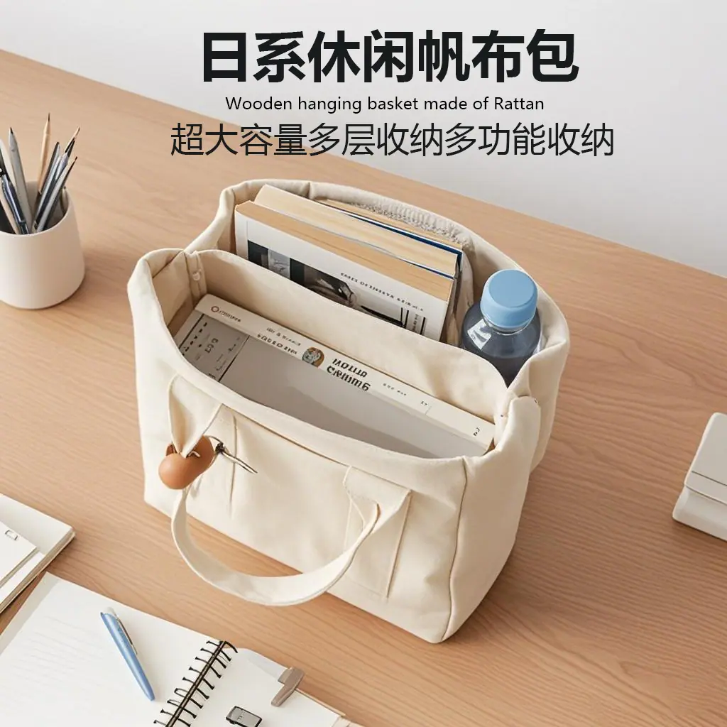 Bolsa de lona casual estilo japonés para mujer, bolso tote, trabajador de oficina, viajero, gran capacidad, portátil, bolsa de almuerzo aislada, bolso de mano