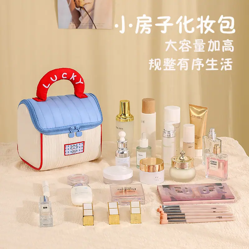 Bolsa de Maquillaje Casa de Dibujos Animados para Mujer de Gran Capacidad Nueva Portátil de Mano Bolsa de Aseo Suave Lindo Estilo Niña Bolsa de Almacenamiento