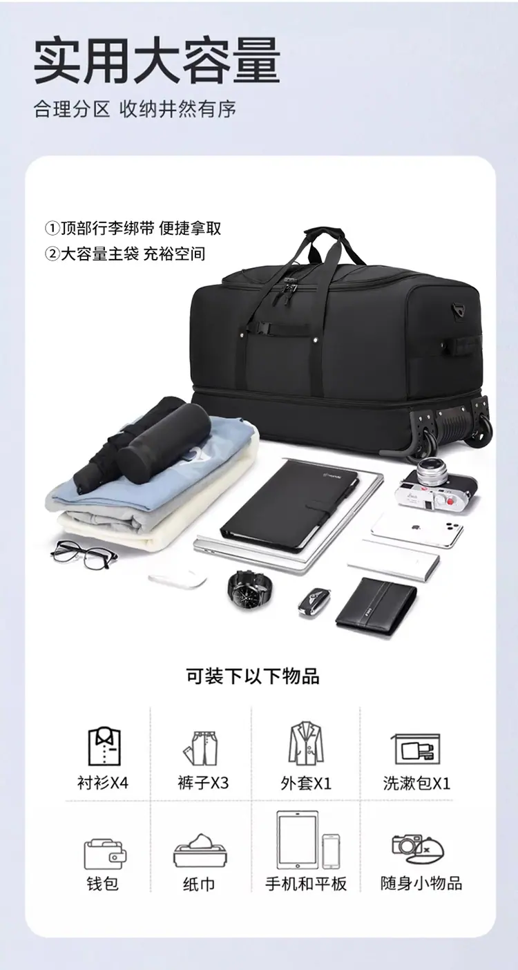Bolsa de Viaje 2025 Nueva Gran Capacidad de Mano Organizador de Equipaje con Ruedas Un Solo Hombro Cruzado Bolsa de Viaje para Documentar