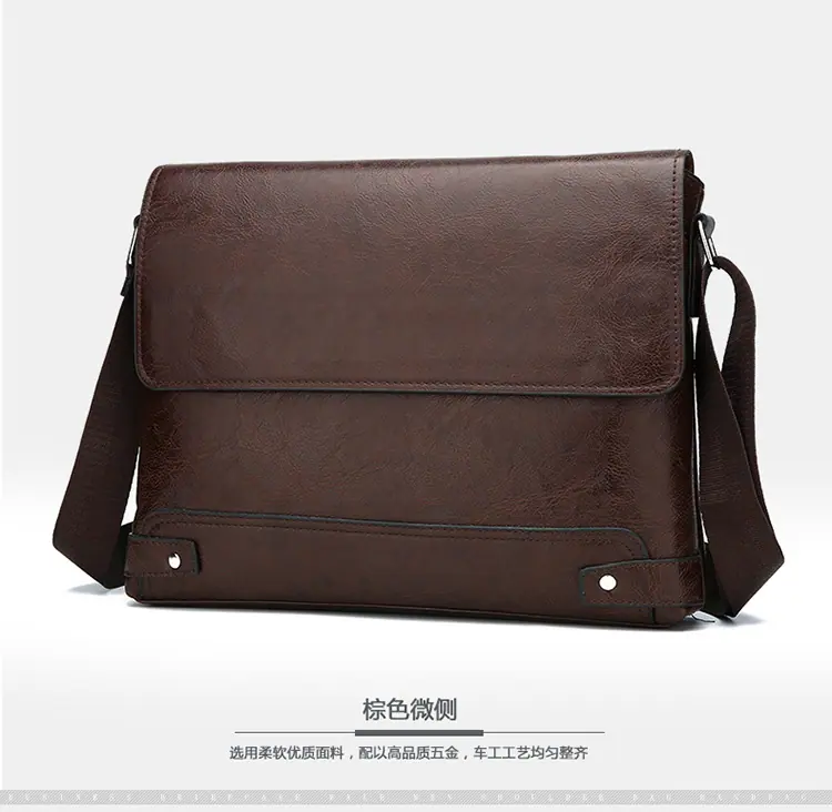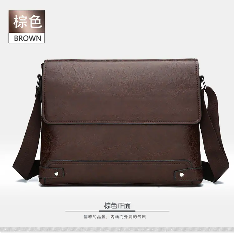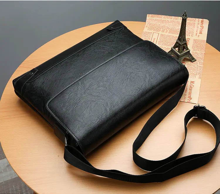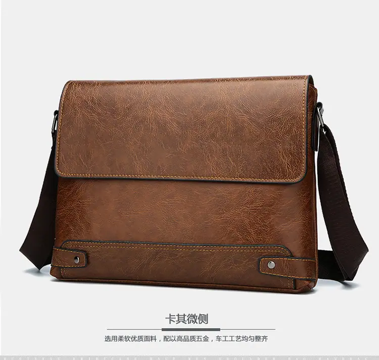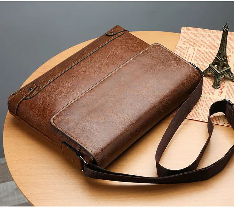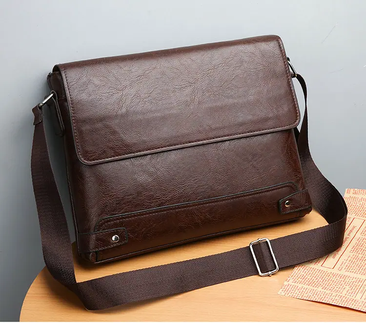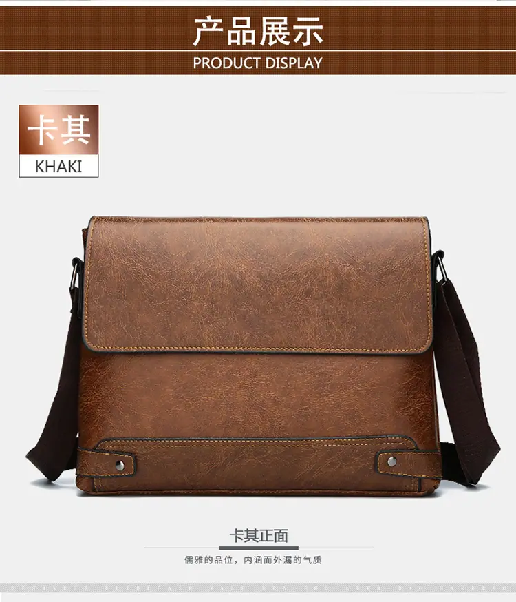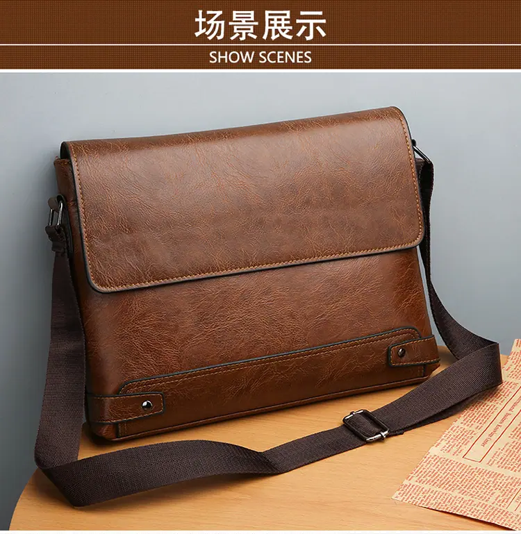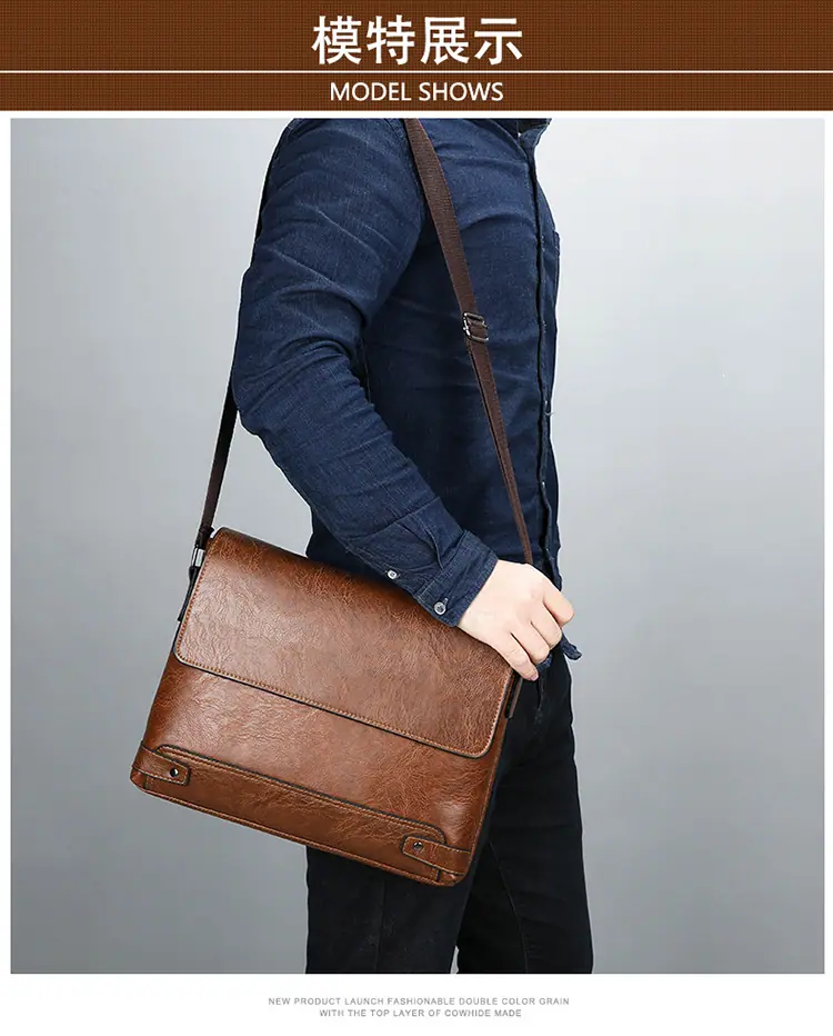 Bolsa de Hombro Retro para Hombre de Negocios de Comercio Exterior Portafolio Horizontal Cubierta Abierta Bolsa para Documentos para Hombre de Gran Capacidad Bolsa Cruzada