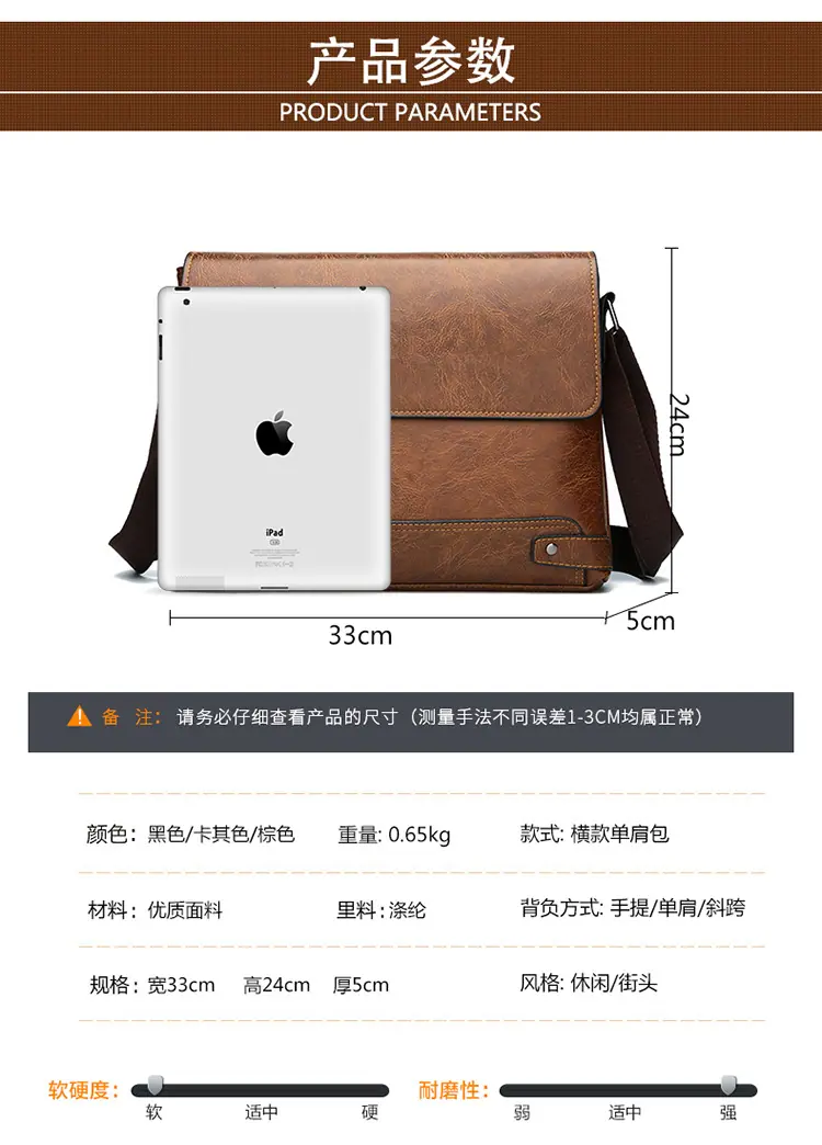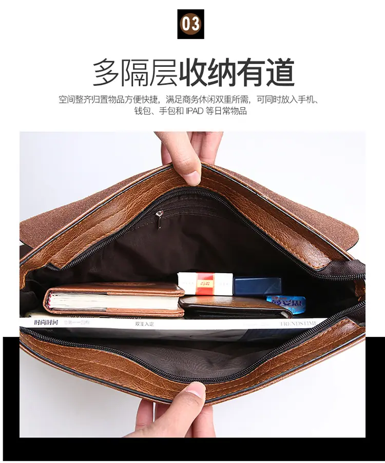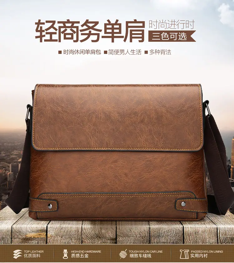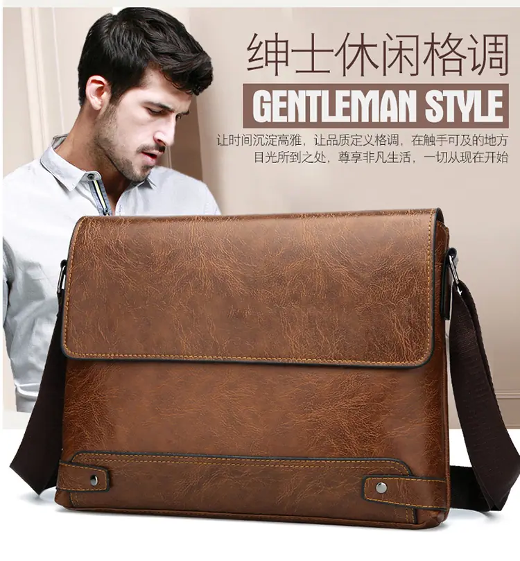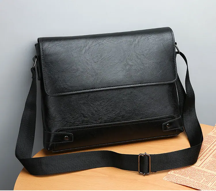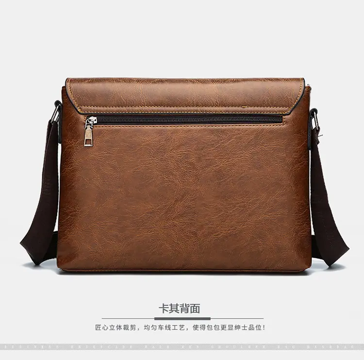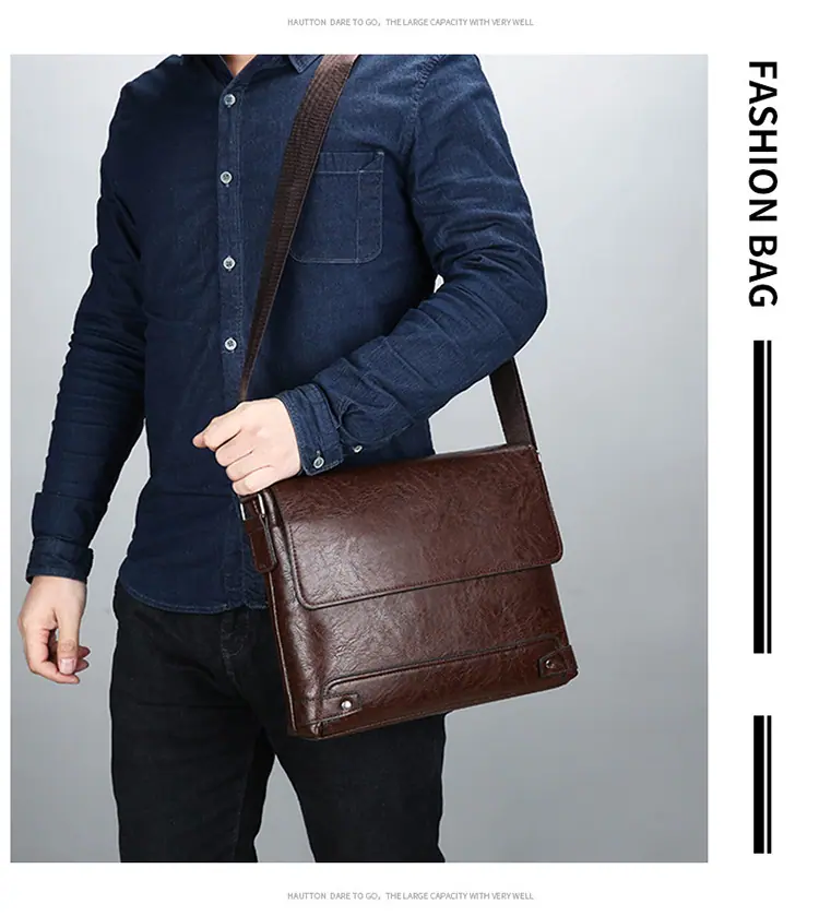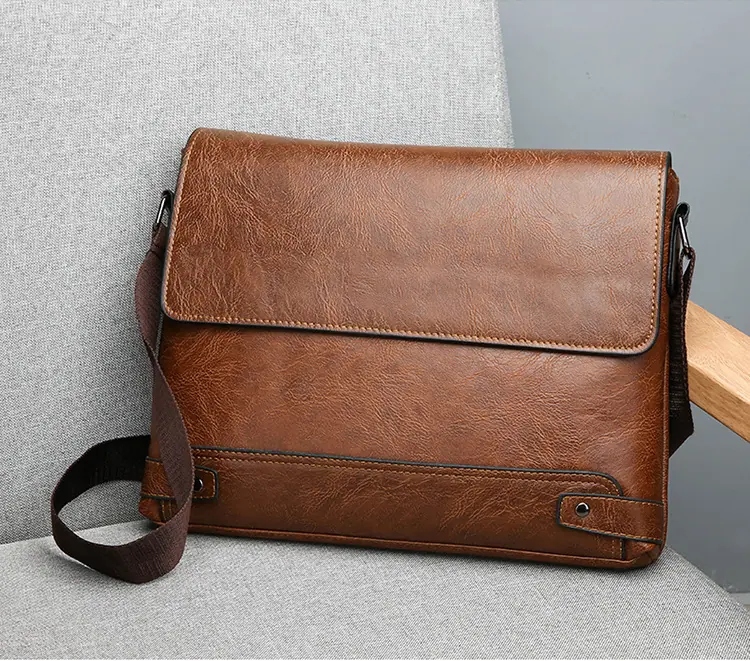 Bolsa de Hombro Retro para Hombre de Negocios de Comercio Exterior Portafolio Horizontal Cubierta Abierta Bolsa para Documentos para Hombre de Gran Capacidad Bolsa Cruzada
