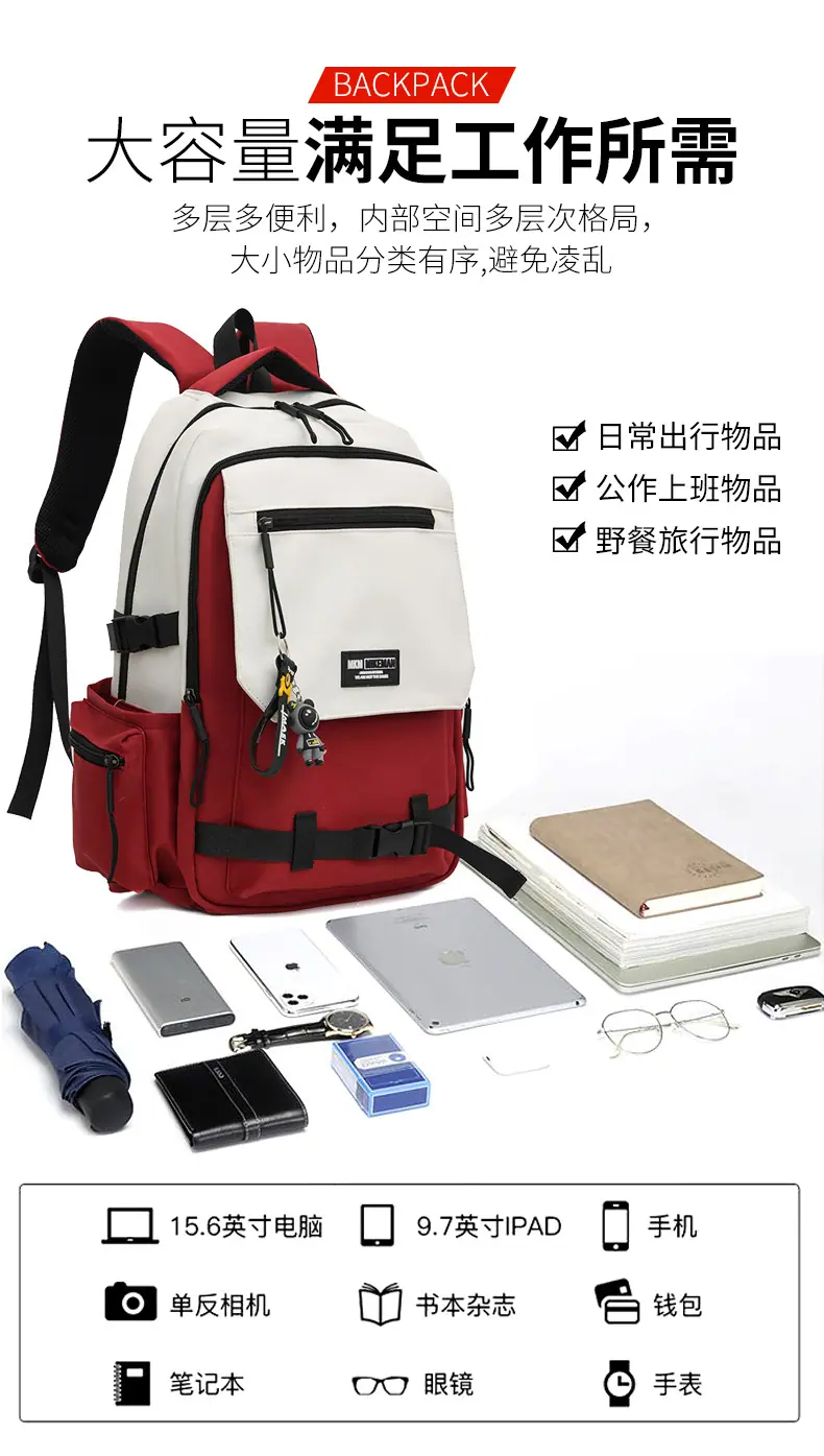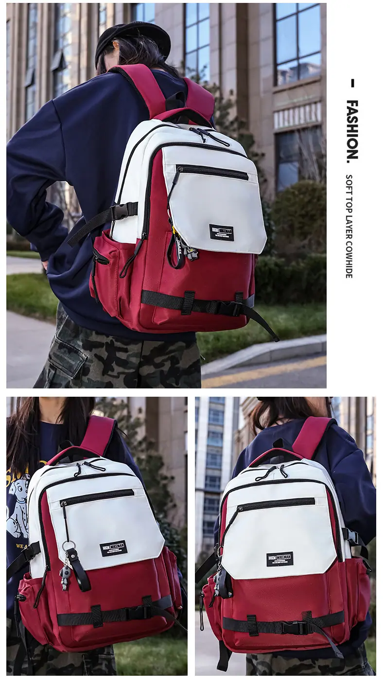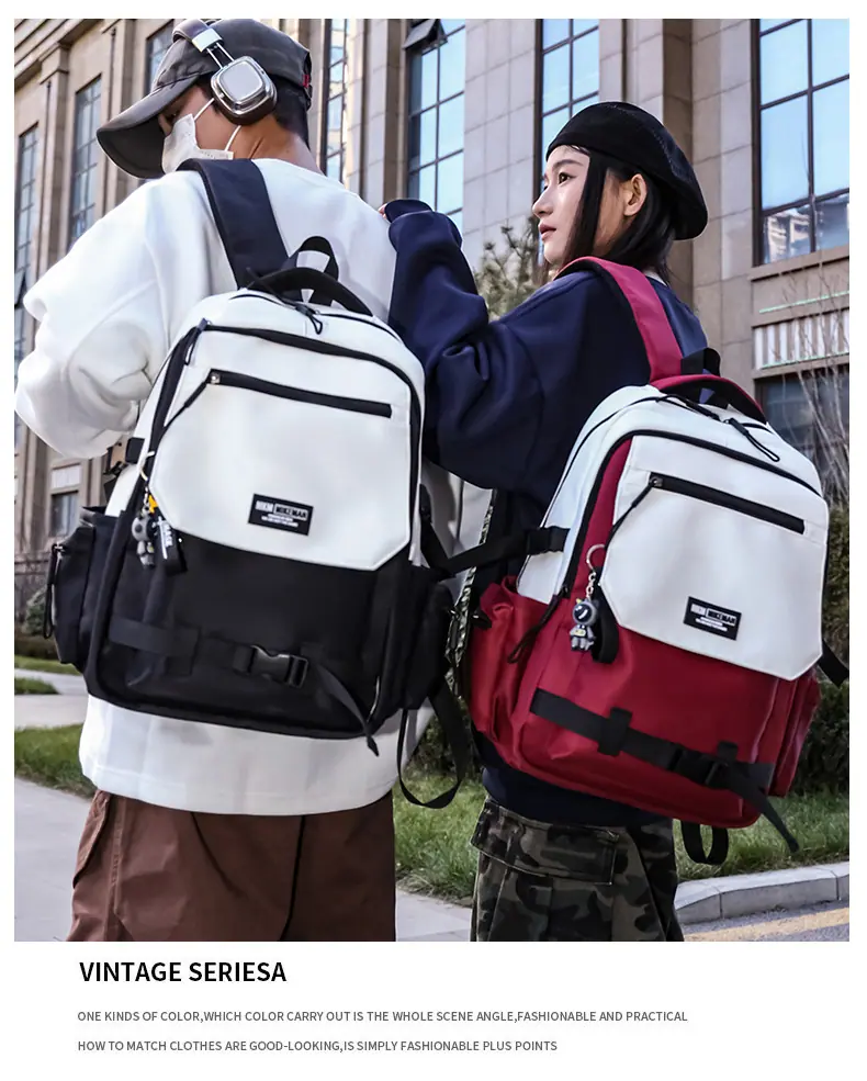 Mochila de Estilo Japonés para Estudiantes de Preparatoria, Mochila Moderna Versátil con Bloques de Color para Estudiantes de Secundaria, Mochila de Diseño Simple para Estudiantes Universitarios a la Moda
