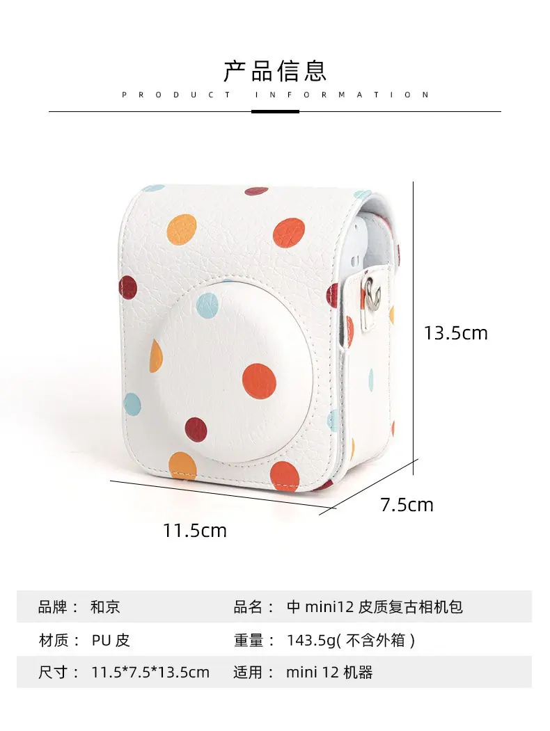 Adecuado para Bolsa de Cámara Polaroid Instax Mini12 Color de Tendencia Lunares Bolsa de Fotografía para Cámara Nuevo Transfronterizo