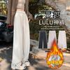 Pantalones de Pierna Ancha Divididos Forrados de Polar para Mujer Otoño e Invierno 2025 Espiga Lana Rectos Casuales Caída Sueltos Adelgazantes de Punto