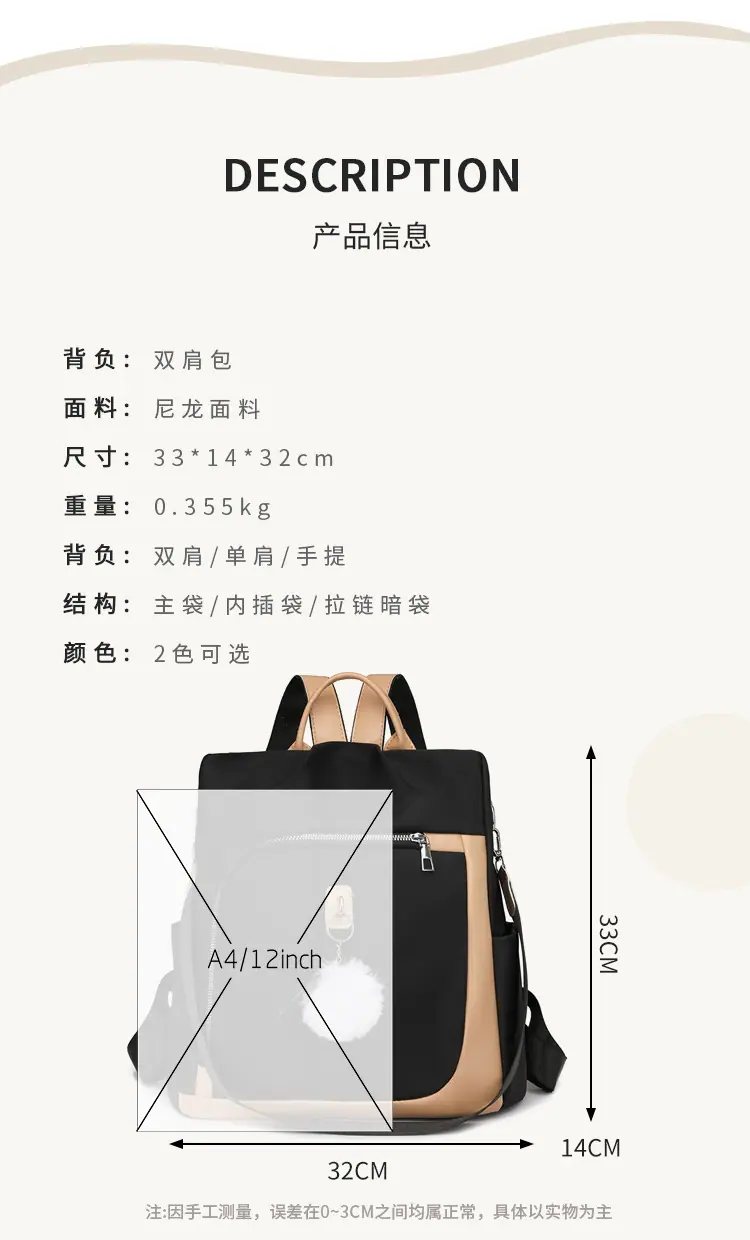 Mochila para Mujer Moda Coreana Sentido de Alta Gama Mochila de Viaje para Exterior para Damas Gran Capacidad Versátil Mochila Pequeña para Estudiante Universitario