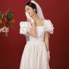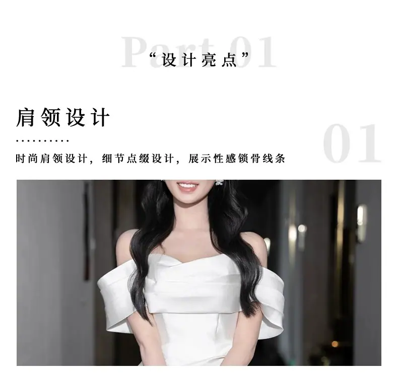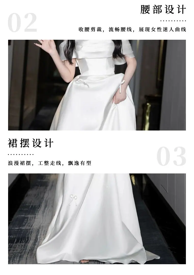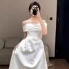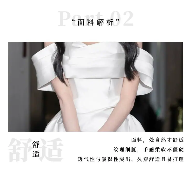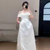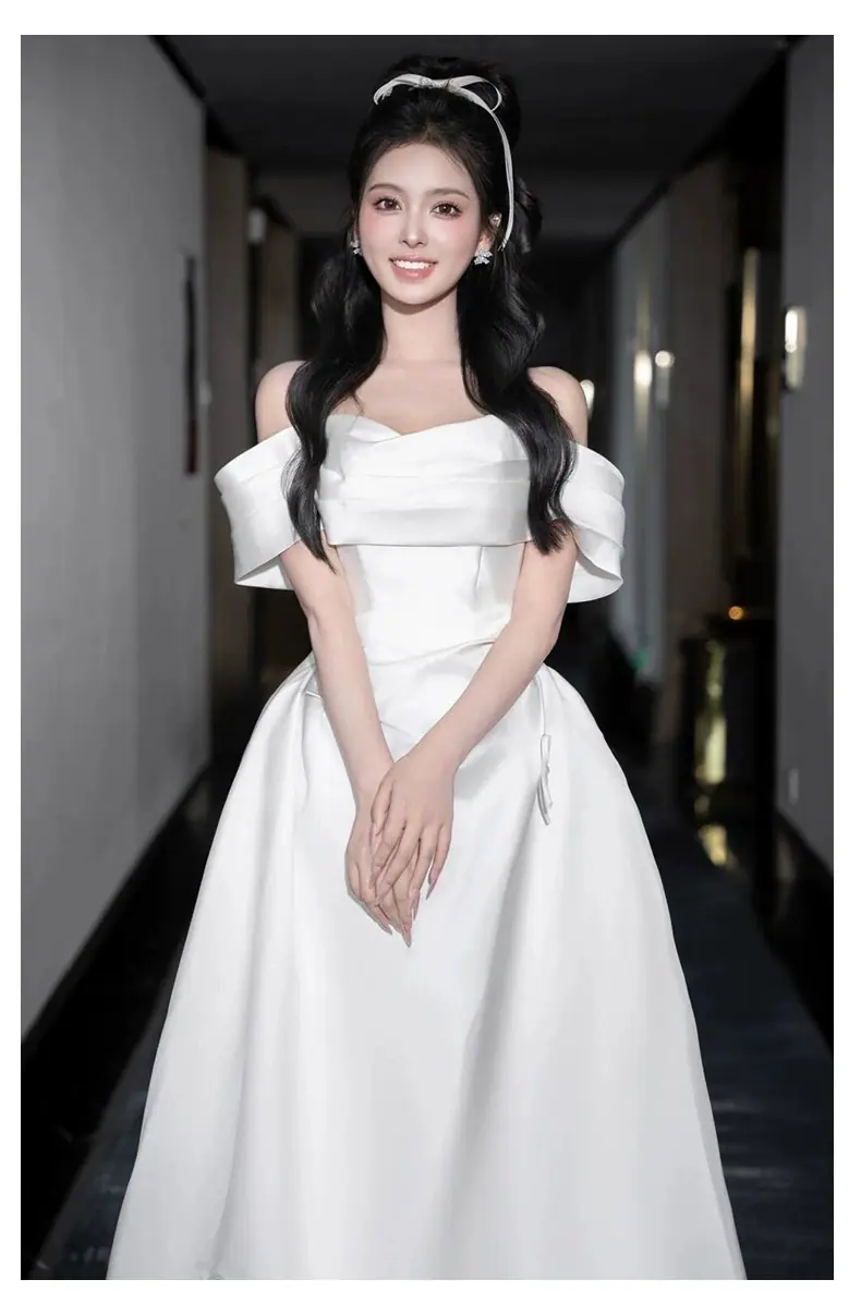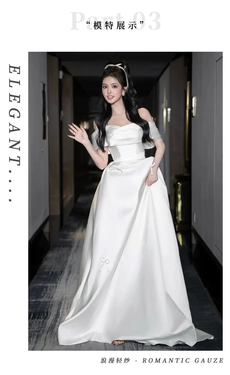 Vestido de Novia Ligero de Satén Francés Novia Compromiso Registro de Licencia Vestido de un Hombro Sencillo Diario Lazo Vestido Blanco Pequeño