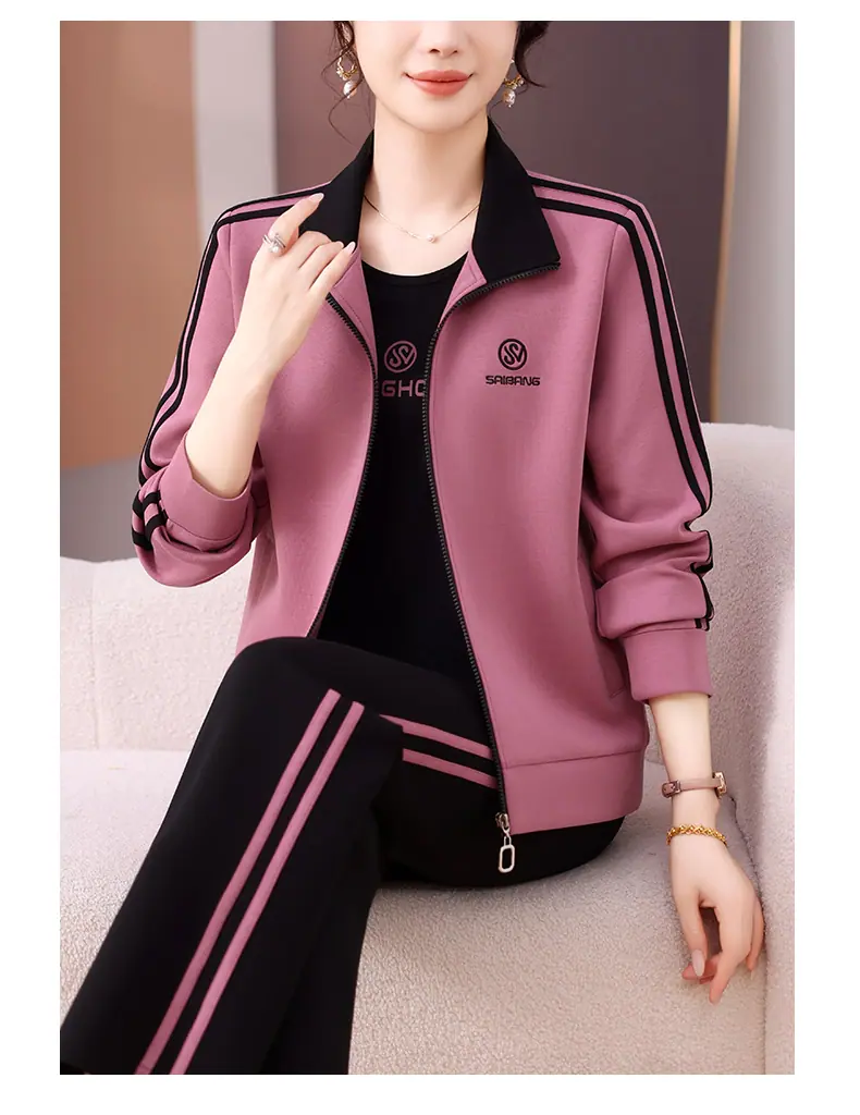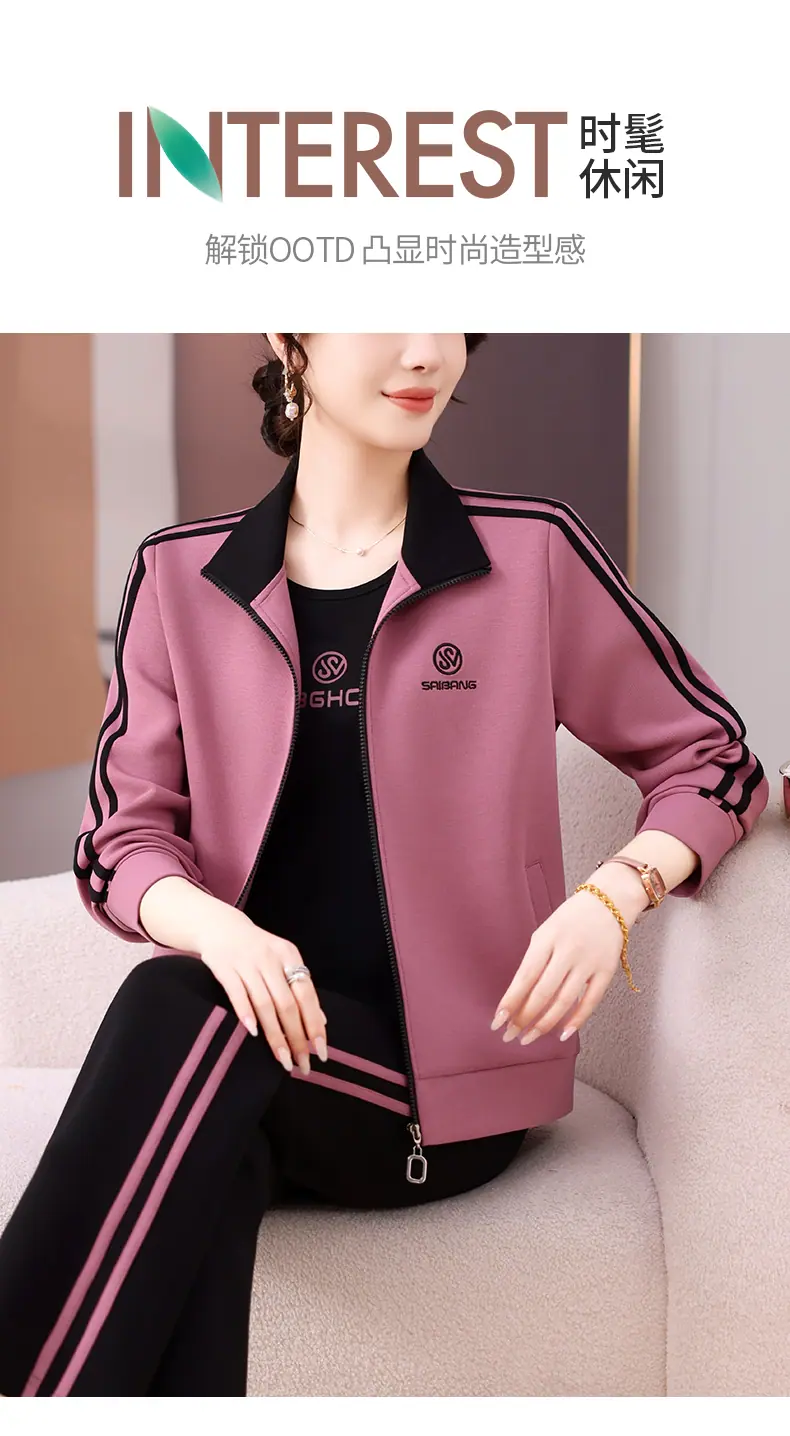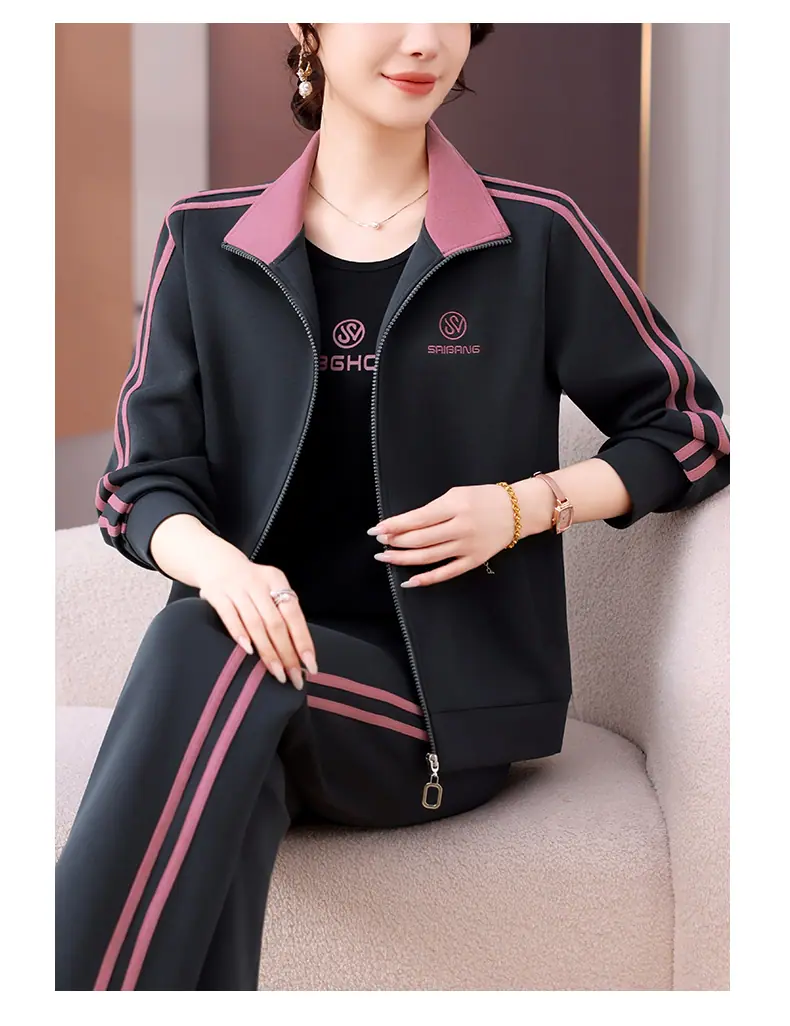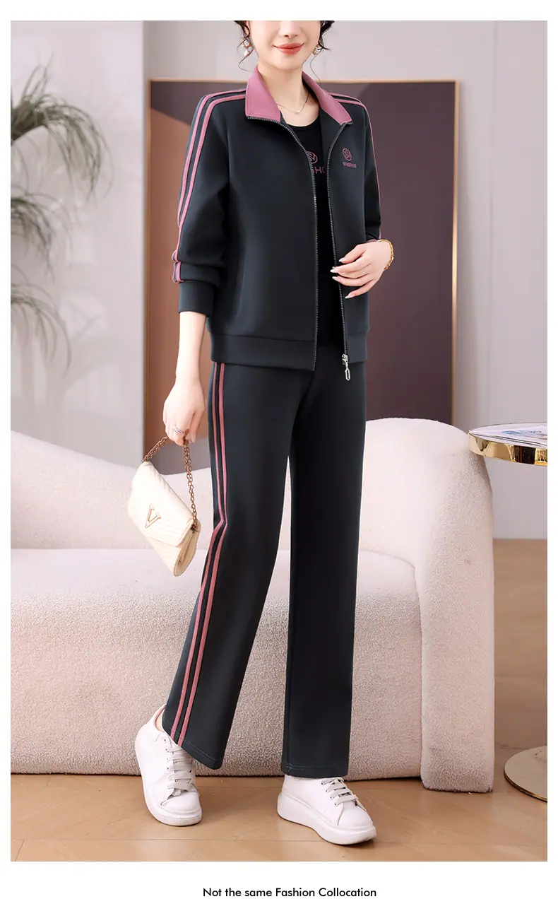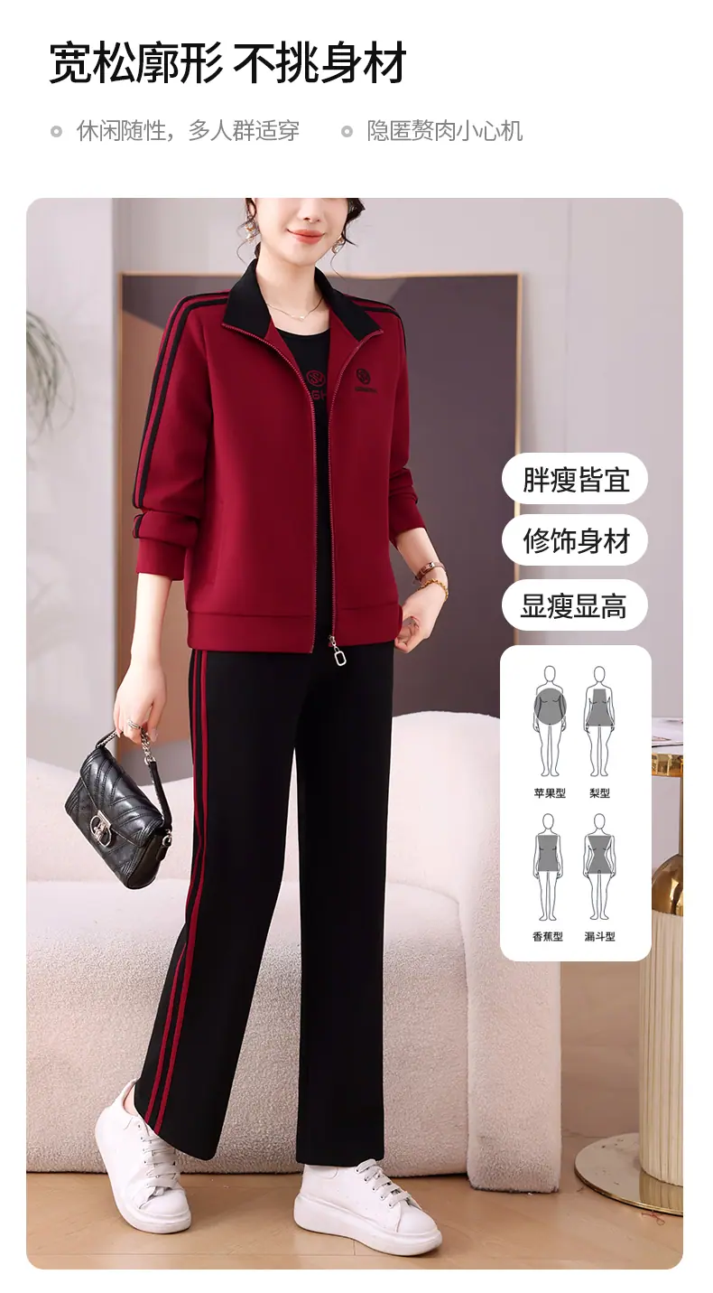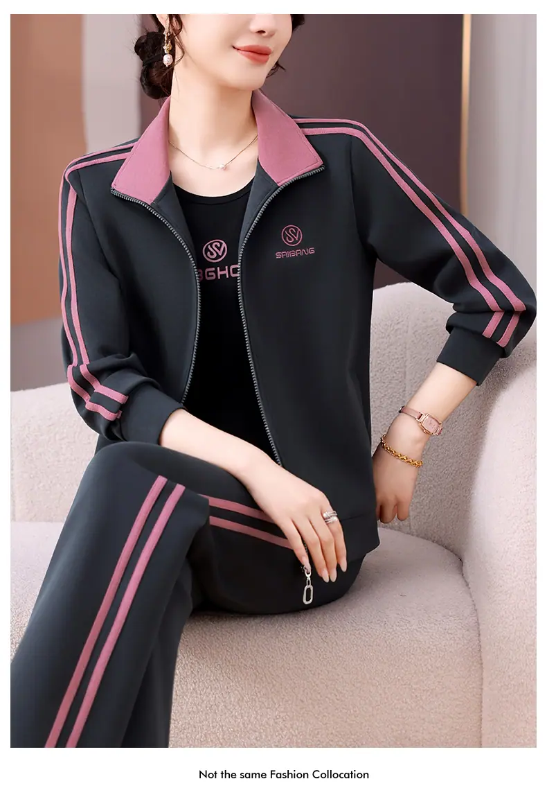Traje Deportivo Casual para Mujer Primavera Otoño 2025 Nueva Moda Suelto Adelgazante Talla Grande Damas para Correr al Aire Libre Conjunto de Tres Piezas