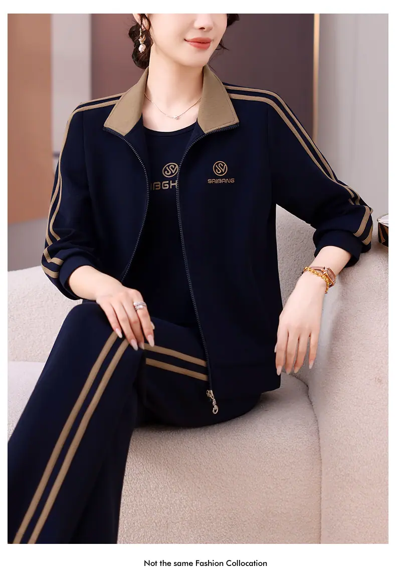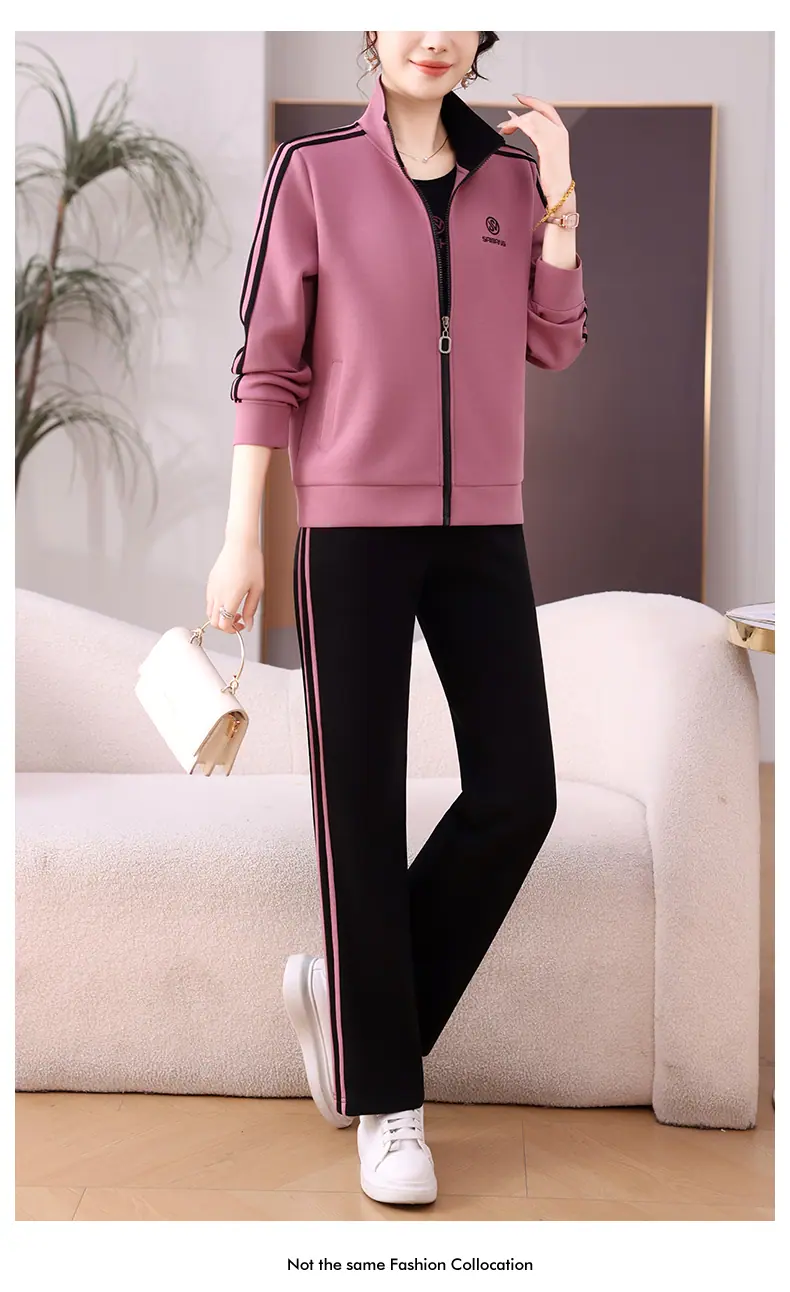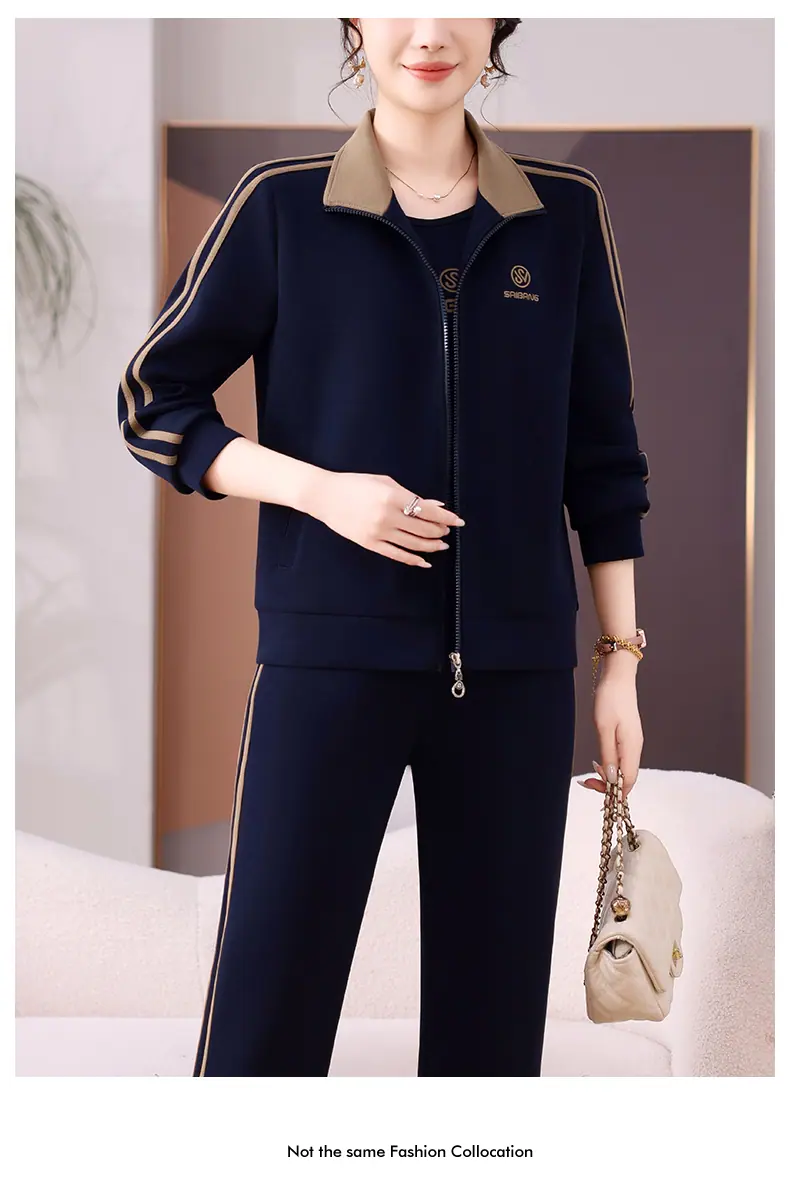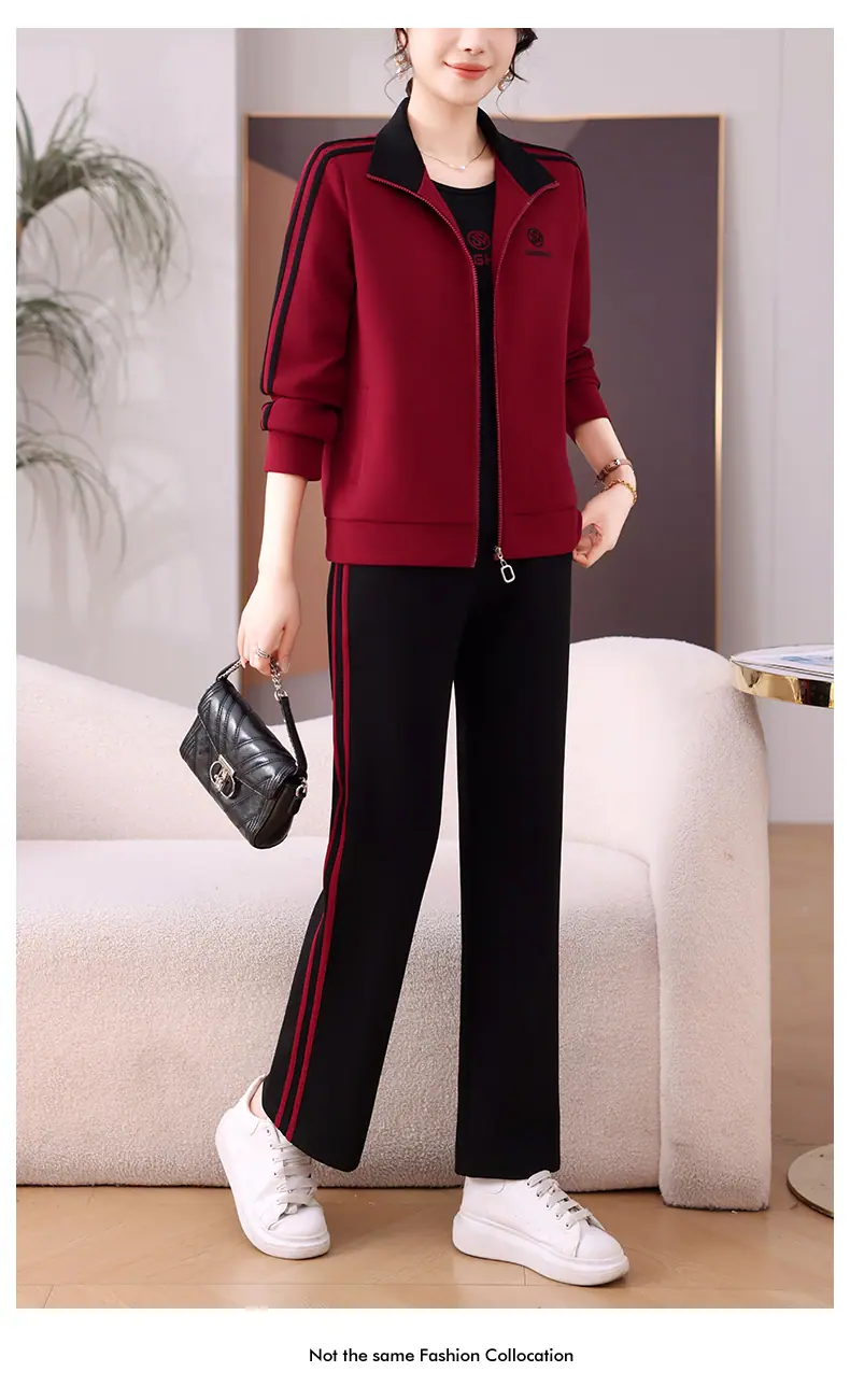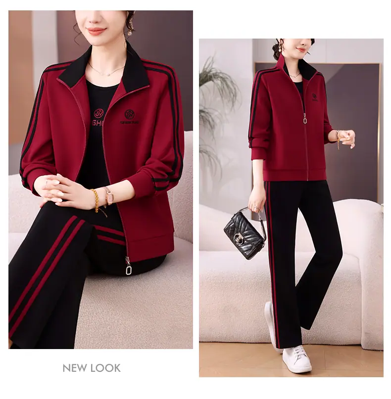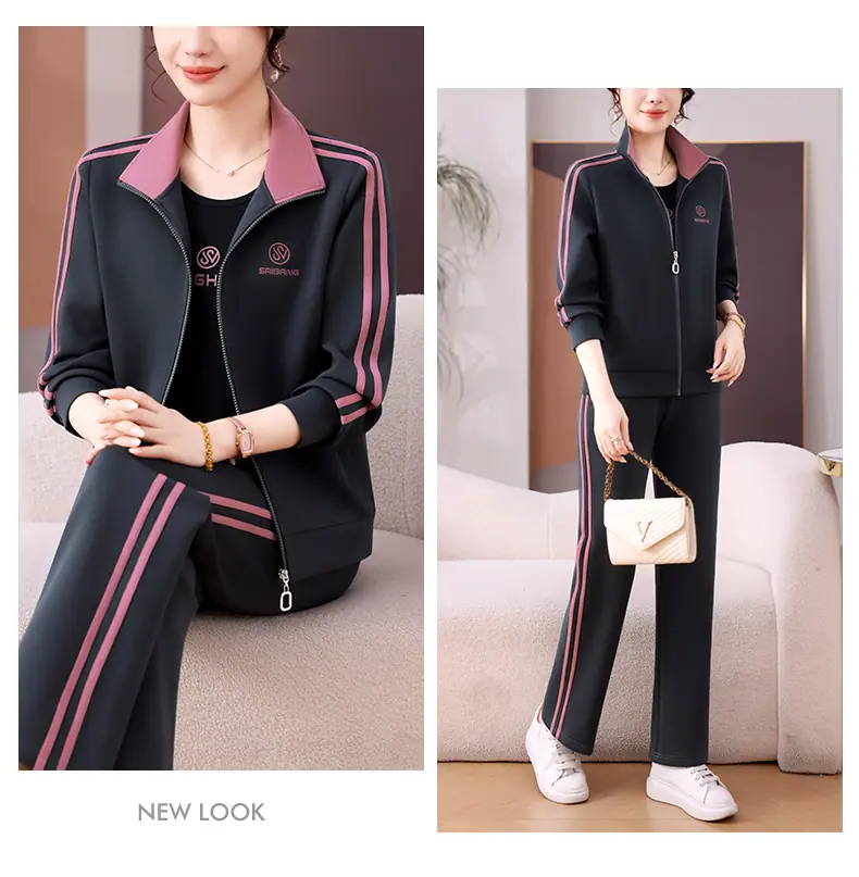 Traje Deportivo Casual para Mujer Primavera Otoño 2025 Nueva Moda Suelto Adelgazante Talla Grande Damas para Correr al Aire Libre Conjunto de Tres Piezas