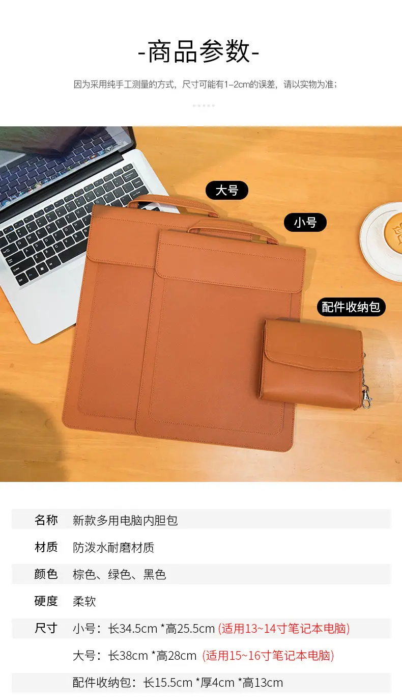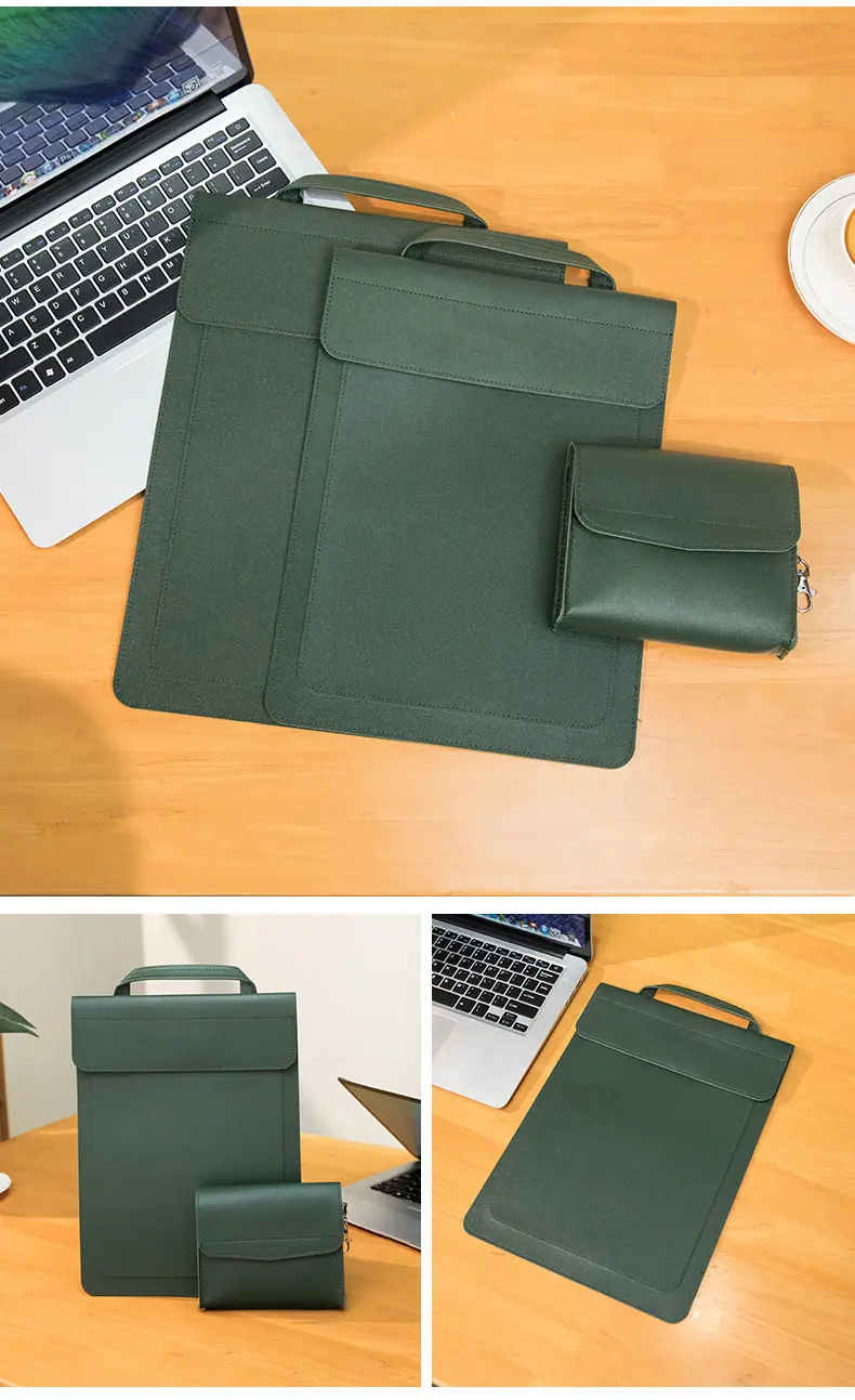 Brown computer bag + accessory bag, Green computer bag + accessory bag, Black computer bag + accessory bag, Br...