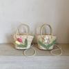 Bolso de Hombro para Mujer Summer Fresh, Bolso de Mano Elegante de Paja para Vacaciones en la Playa, Dulce Bolso con Cadena de Perlas y Flores