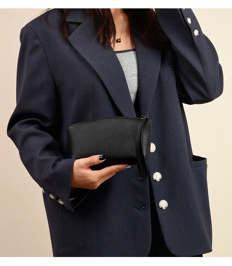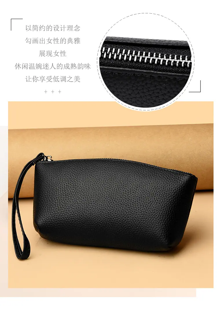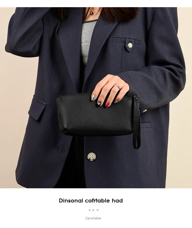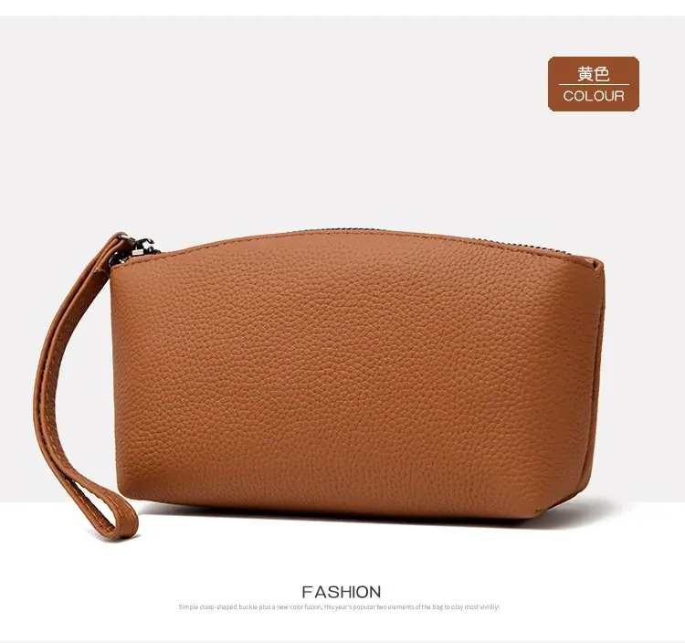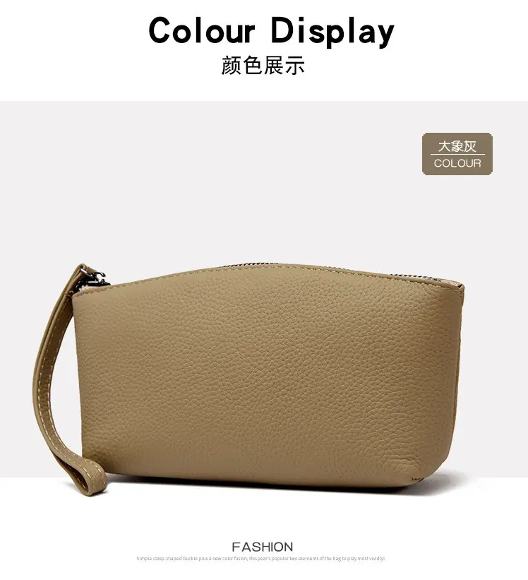 Capa Superior Cuero Vacuno Cuero Vacuno Puro Gran Capacidad Monedero para Monedas de Mujer Simple Cuero Genuino Billetera de Mano para Teléfono Móvil Billetes Grandes Bolso Clutch