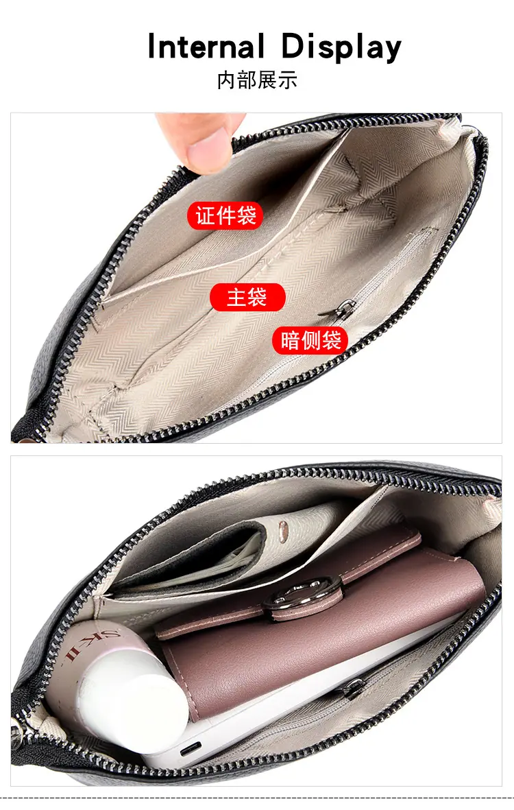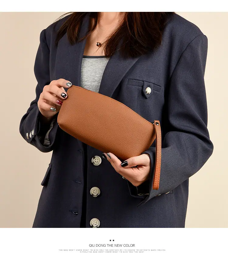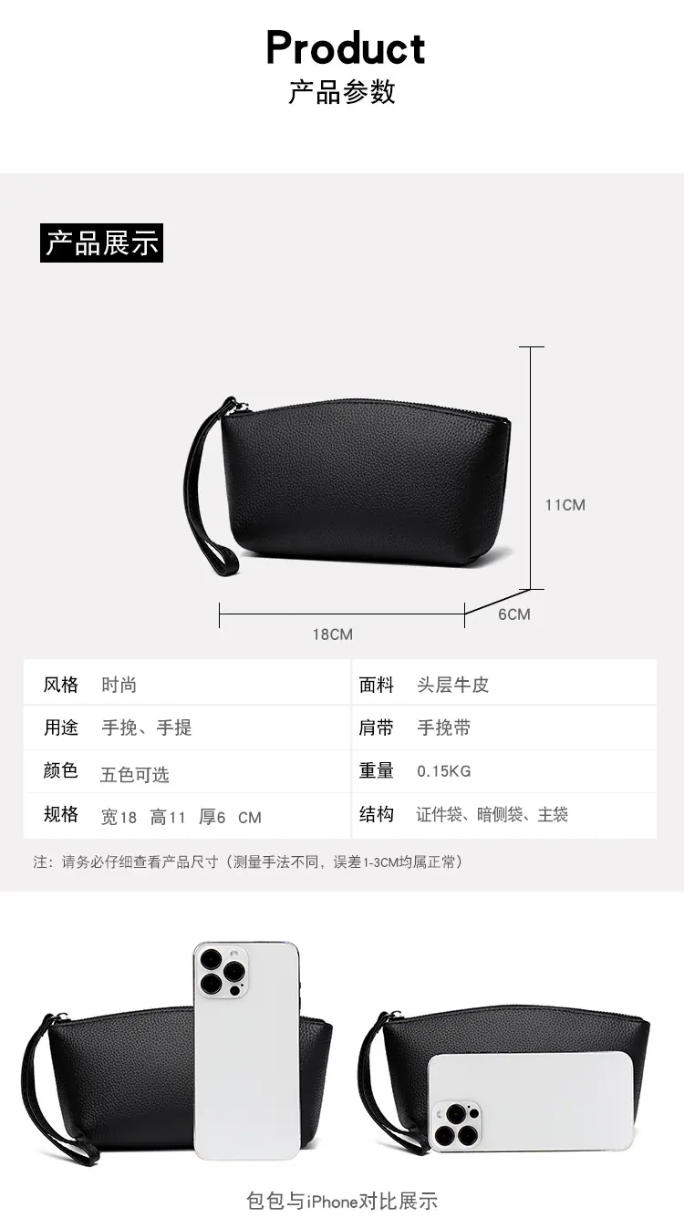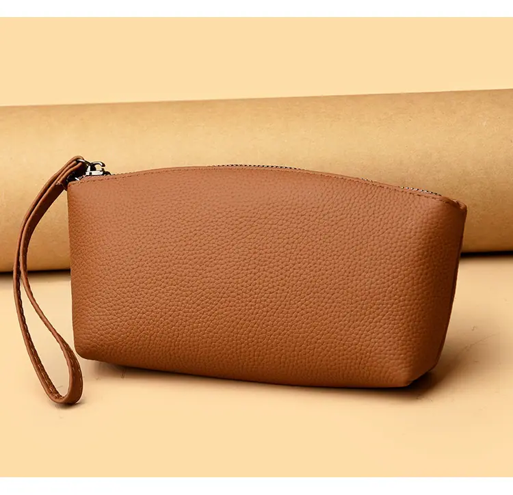 Capa Superior Cuero Vacuno Cuero Vacuno Puro Gran Capacidad Monedero para Monedas de Mujer Simple Cuero Genuino Billetera de Mano para Teléfono Móvil Billetes Grandes Bolso Clutch