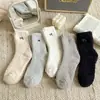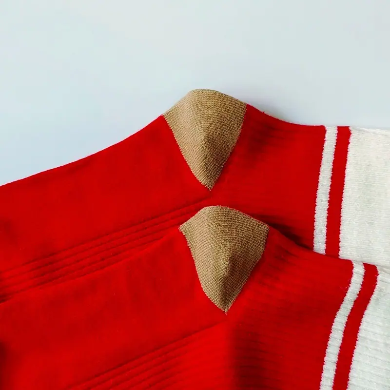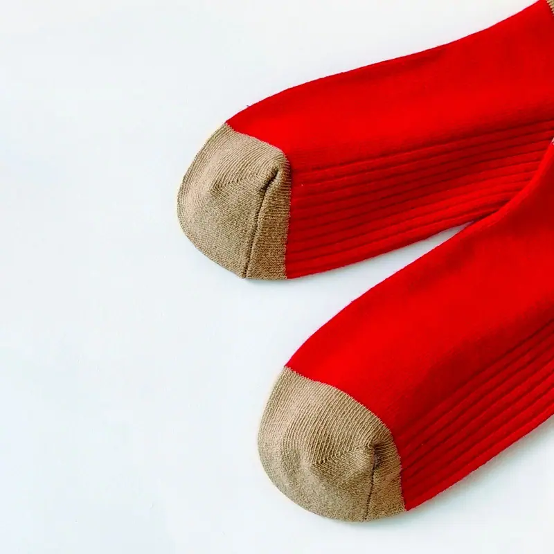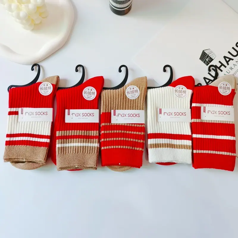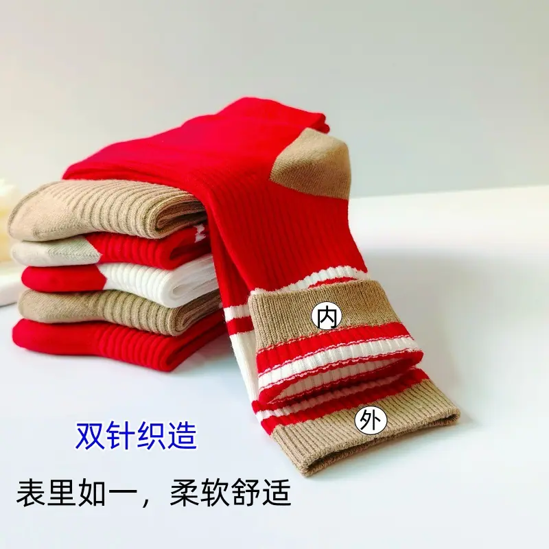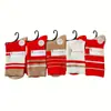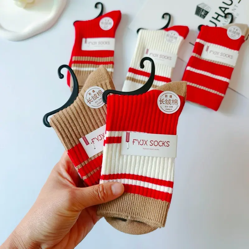 Calcetines de Media Caña para Mujer con Bloque de Color y Doble Aguja El empaque de los calcetines es el mismo que en la imagen, cada par viene con cartulina y un gancho. Enfoque en el suministro de supermercados, con código de barras