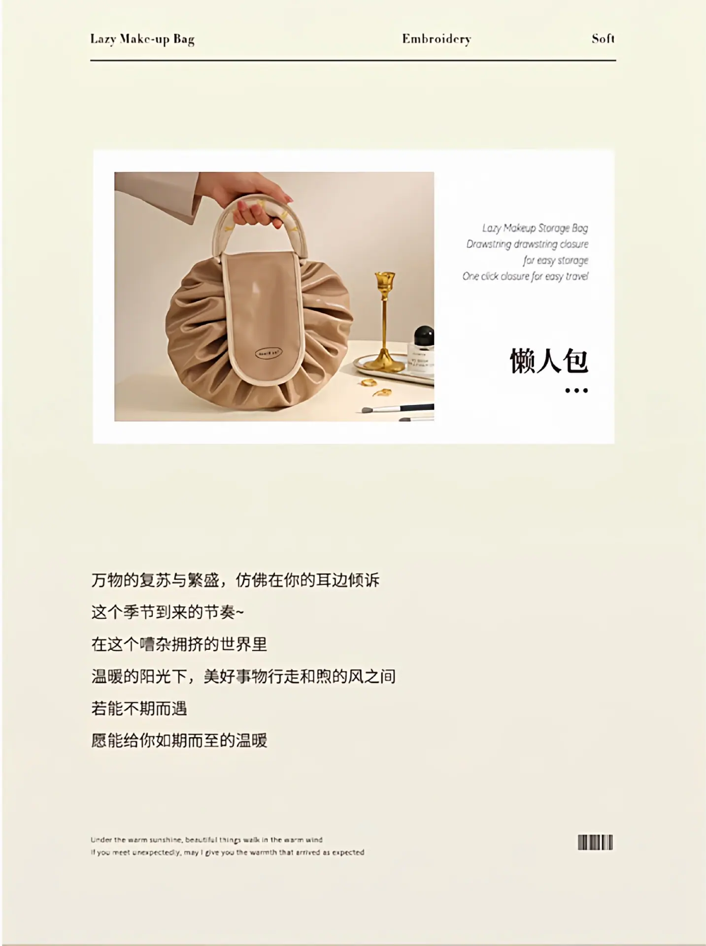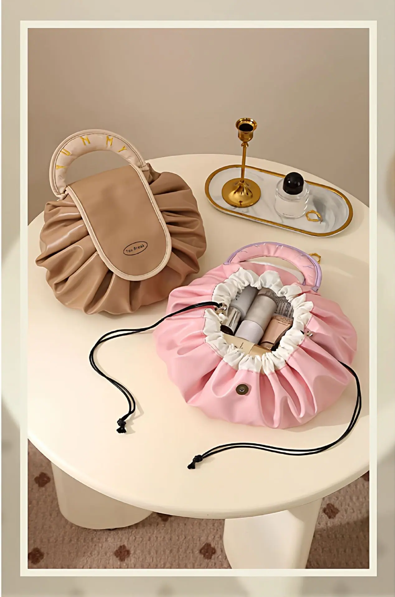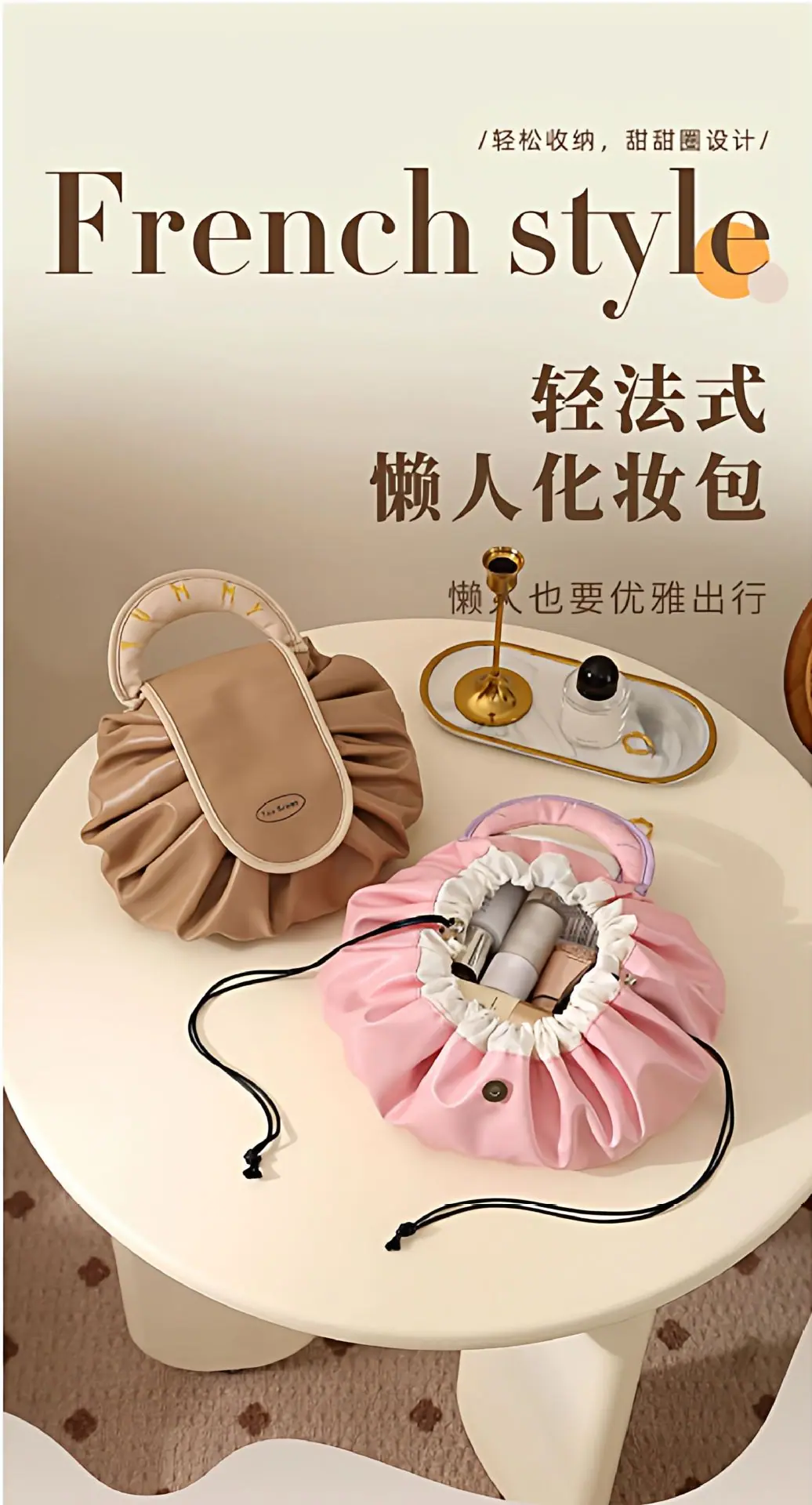 Beige [1 piece] Lazy Makeup Bag, Brown [1 piece] Lazy Makeup Bag, Pink [1 piece] Lazy Makeup Bag