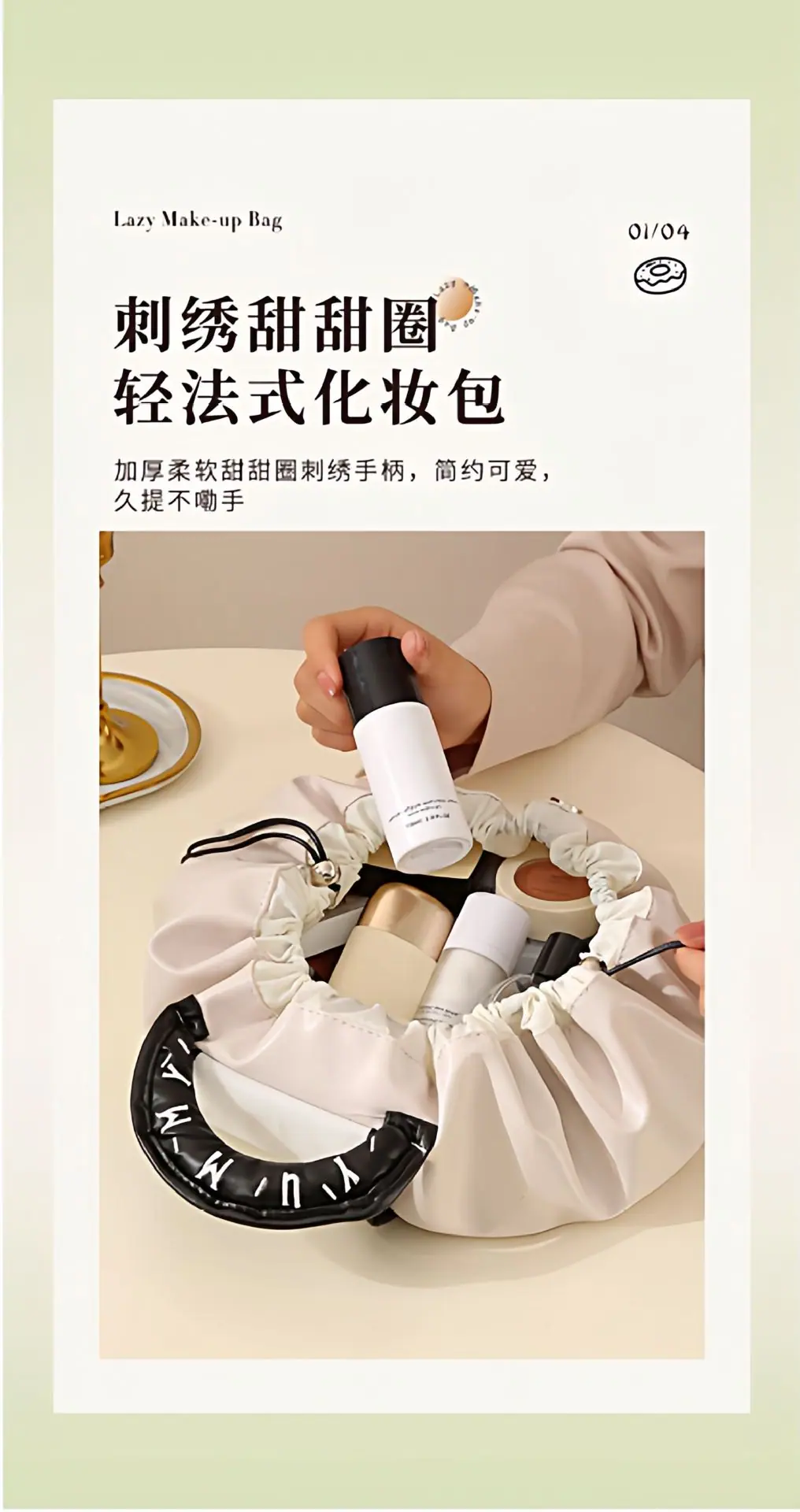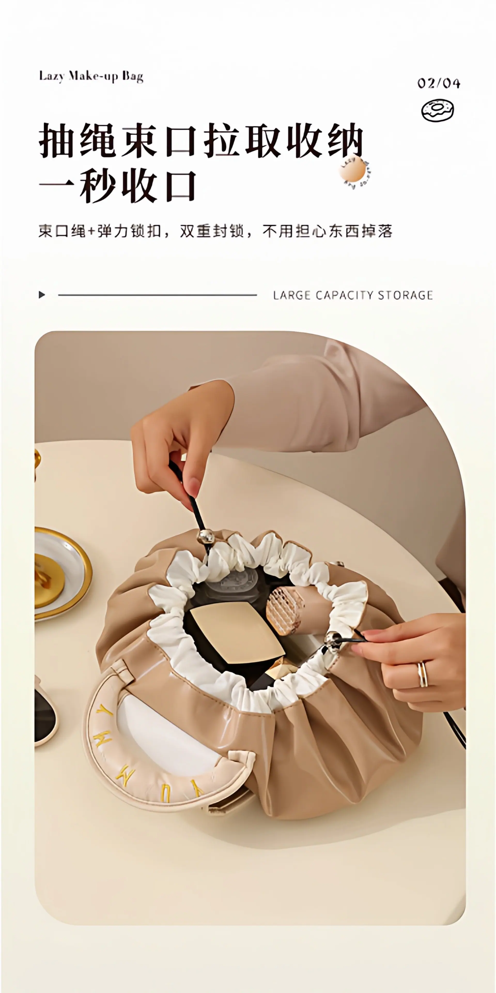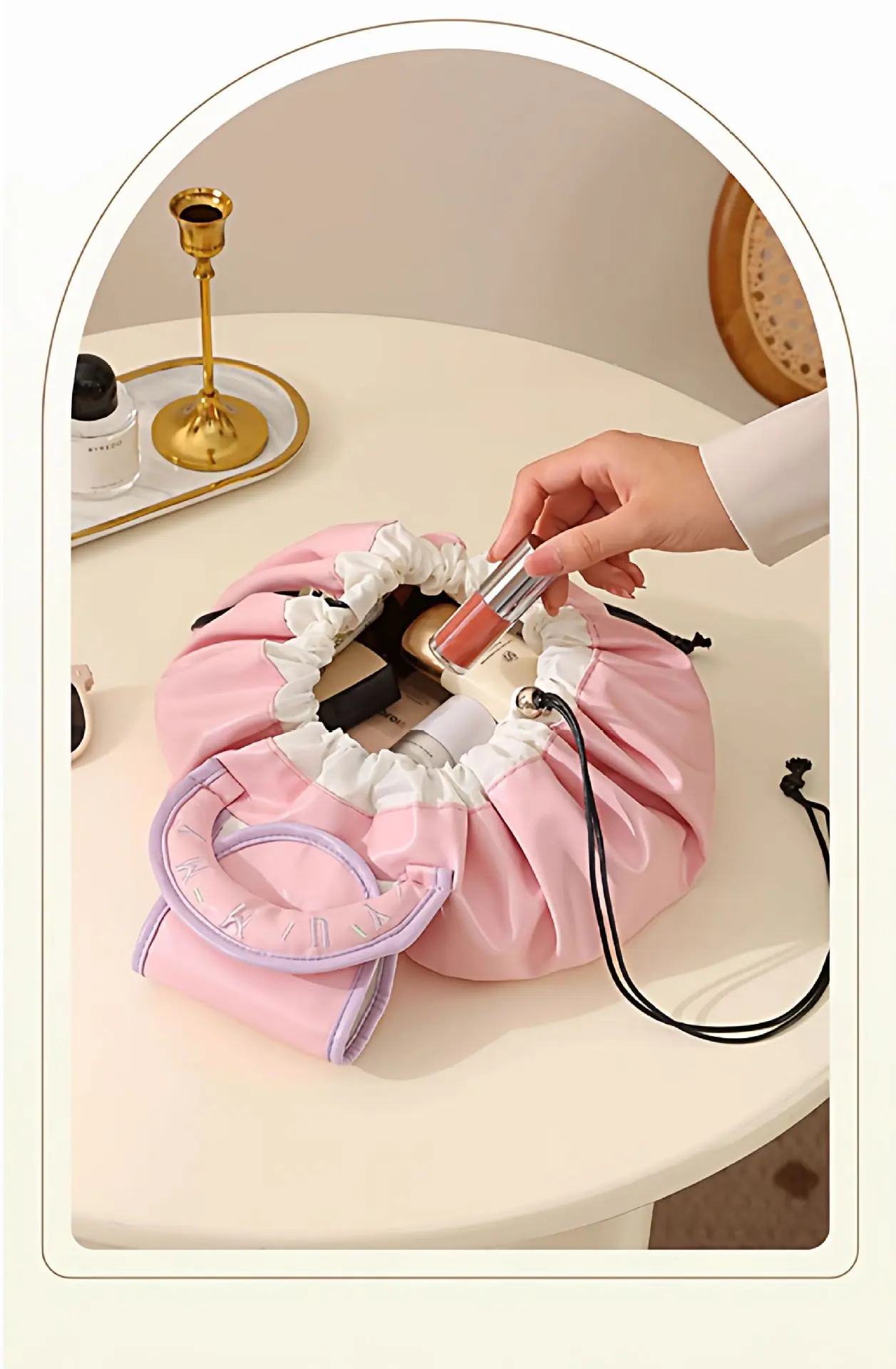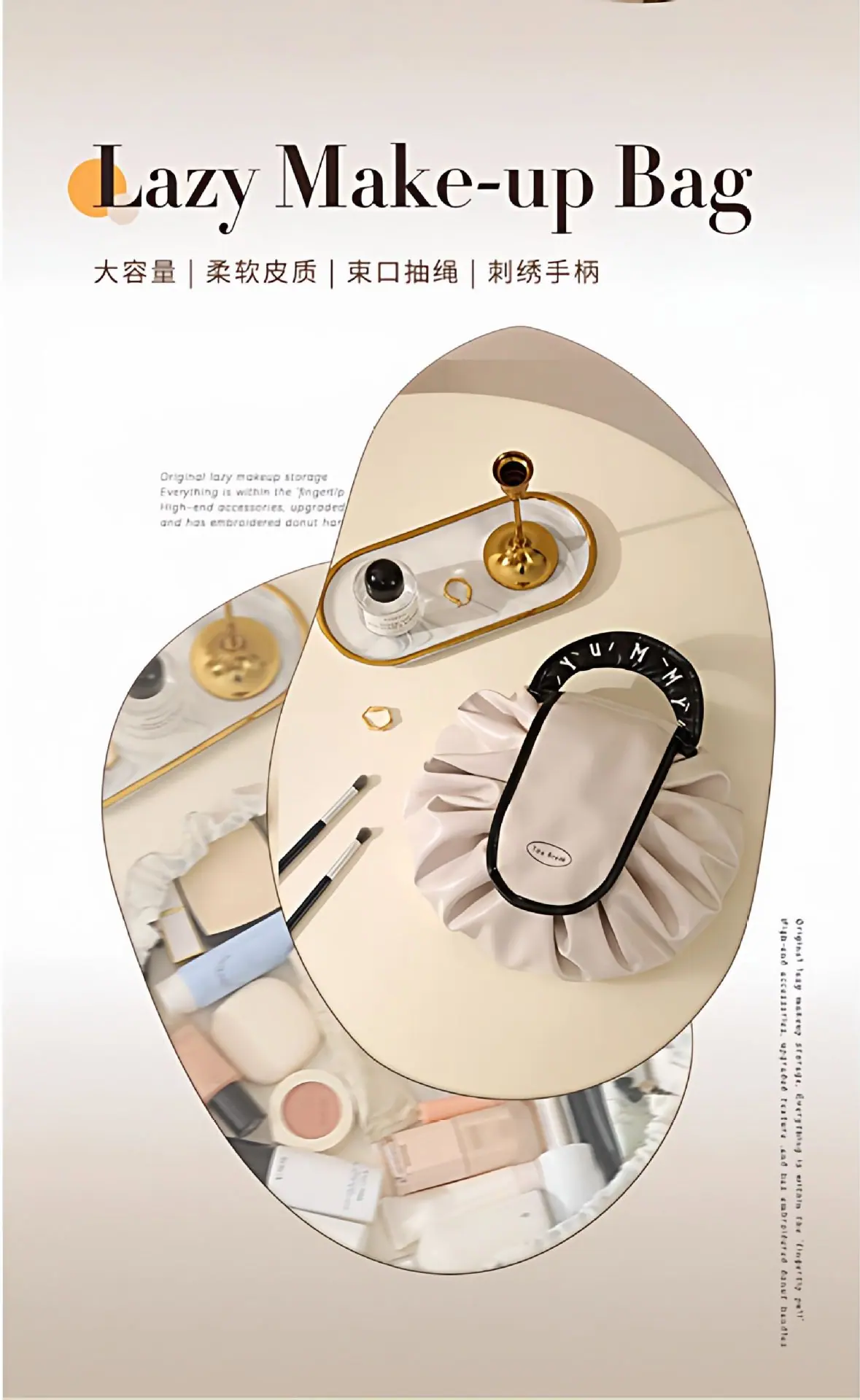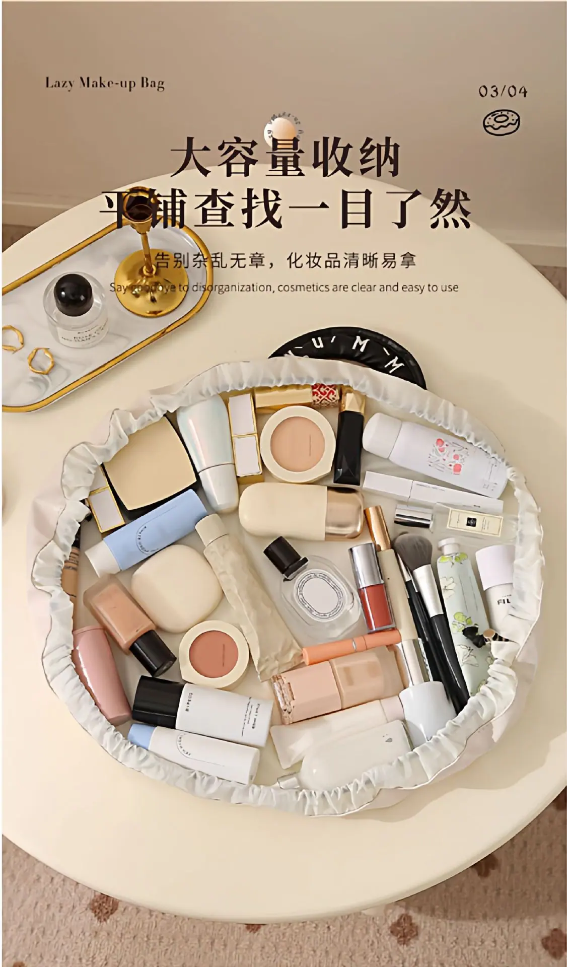 Bolsa de Maquillaje Perezosa para Mujer ins Portátil de Gran Capacidad Bolsa de Almacenamiento de Cosméticos Bolsa de Viaje Impermeable Bolsa con Cordón para Lavado