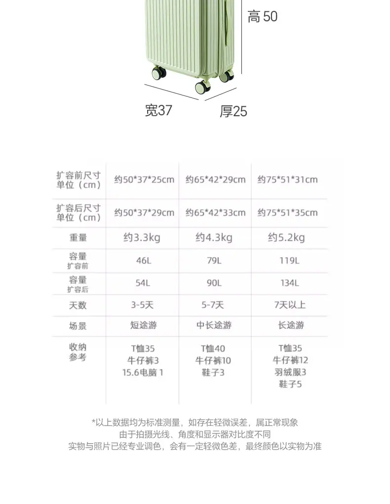 Maleta Nueva de Gran Capacidad para Mujer 20 pulgadas Equipaje de Mano Estudiante Cerradura de Combinación Maleta con Ruedas Hombre 24 Apertura Frontal Maleta de Viaje