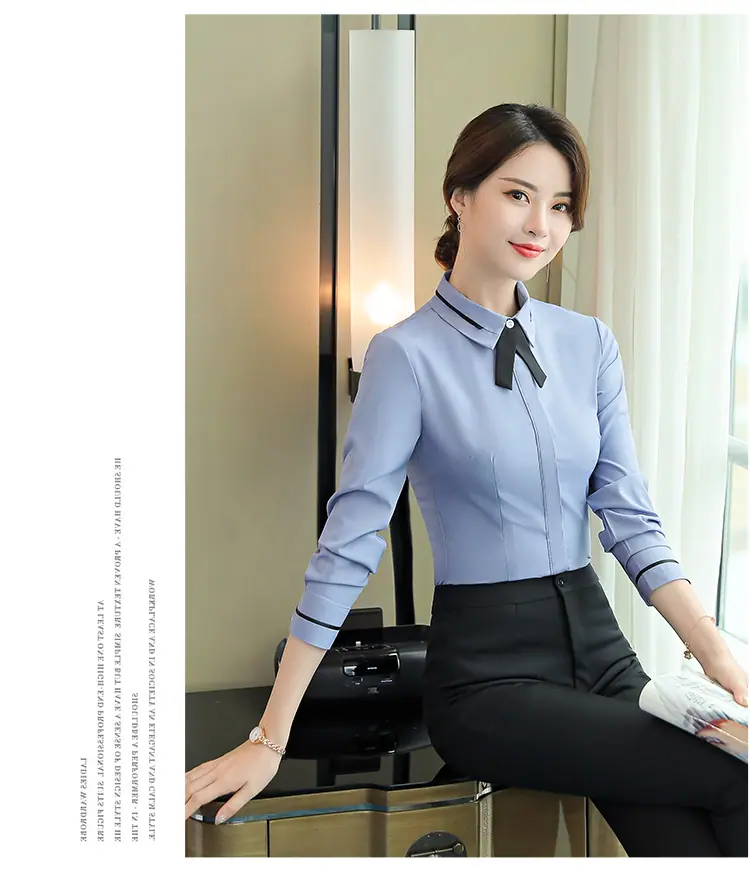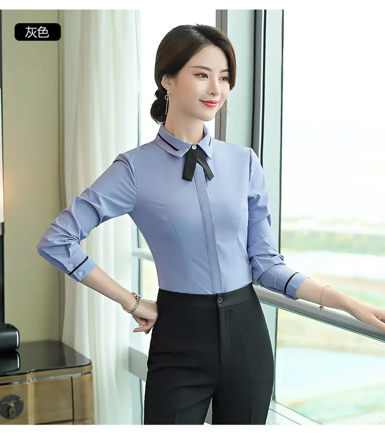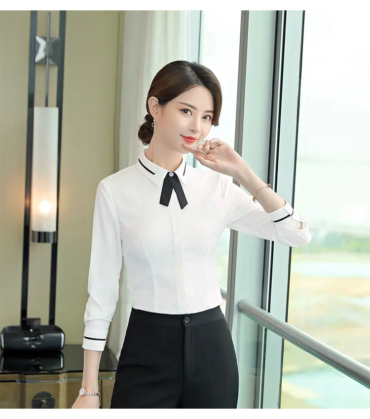 Camisa de manga larga para mujer talla grande elegante ropa de trabajo ol profesional formal nuevo estilo coreano moderno camisa básica