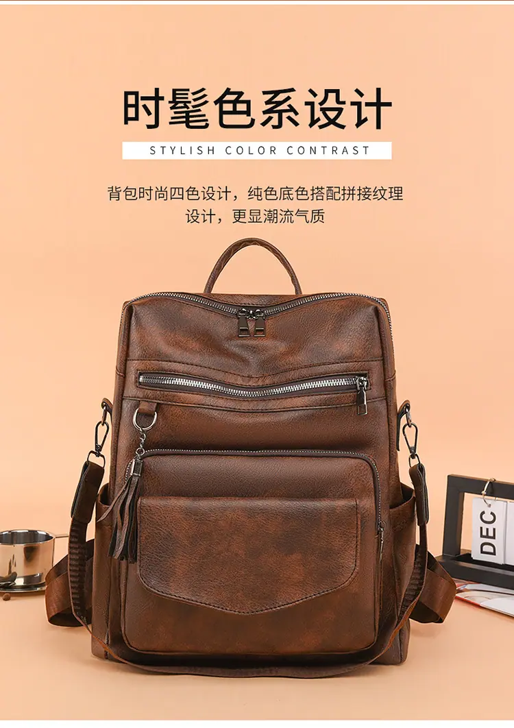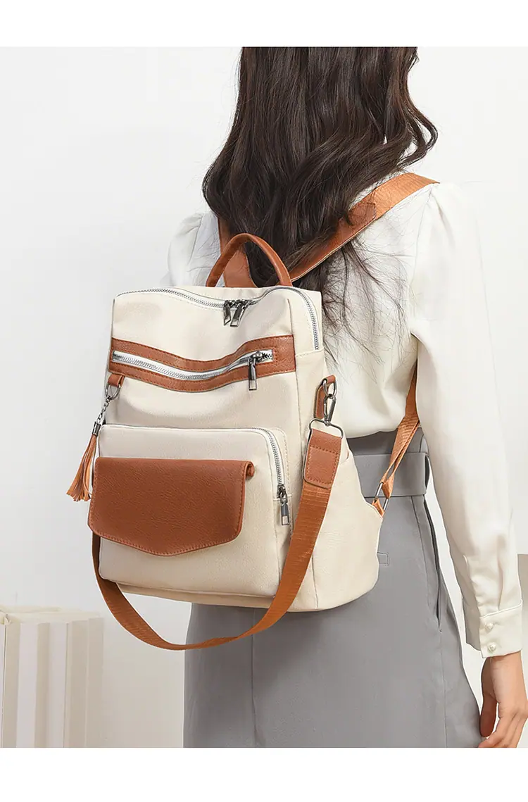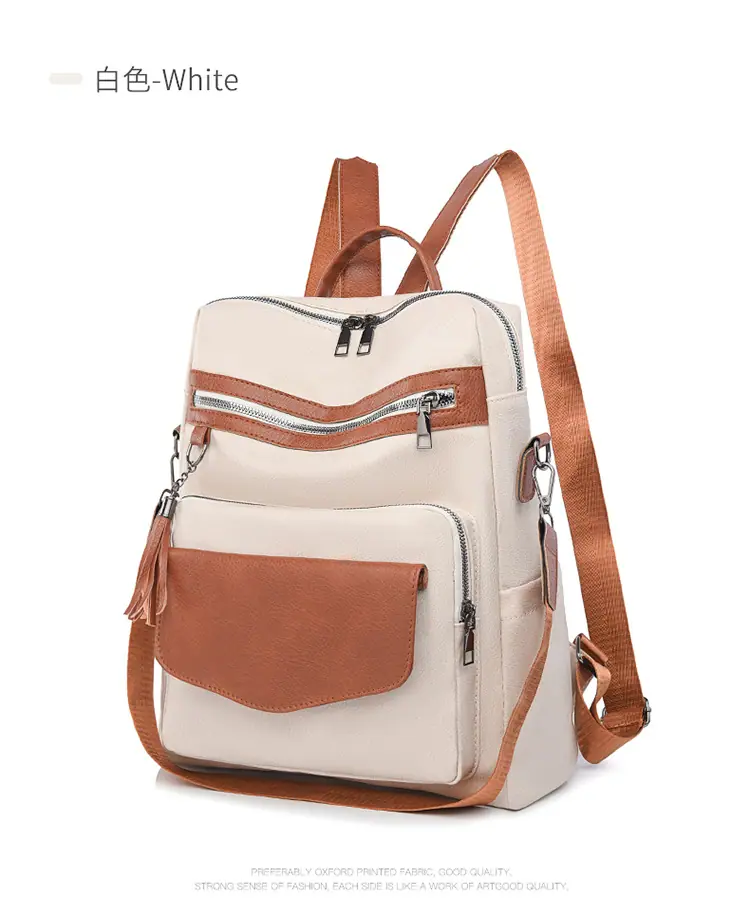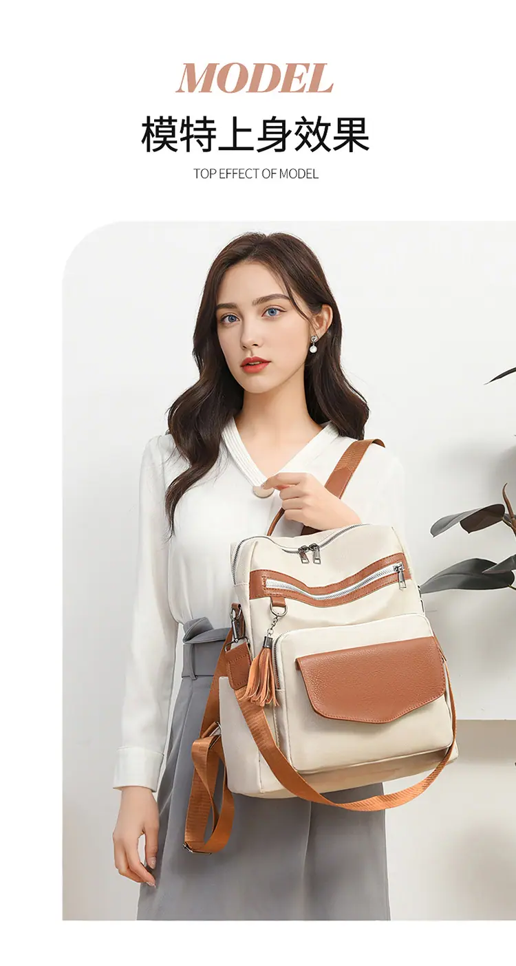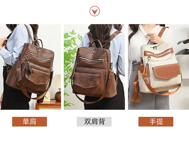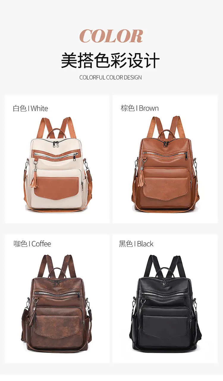 Mochila de Verano 2025 Nueva Moda Retro Europea y Americana para Mujer Mochila de Gran Capacidad Bicolor con Borlas Venta al por Mayor