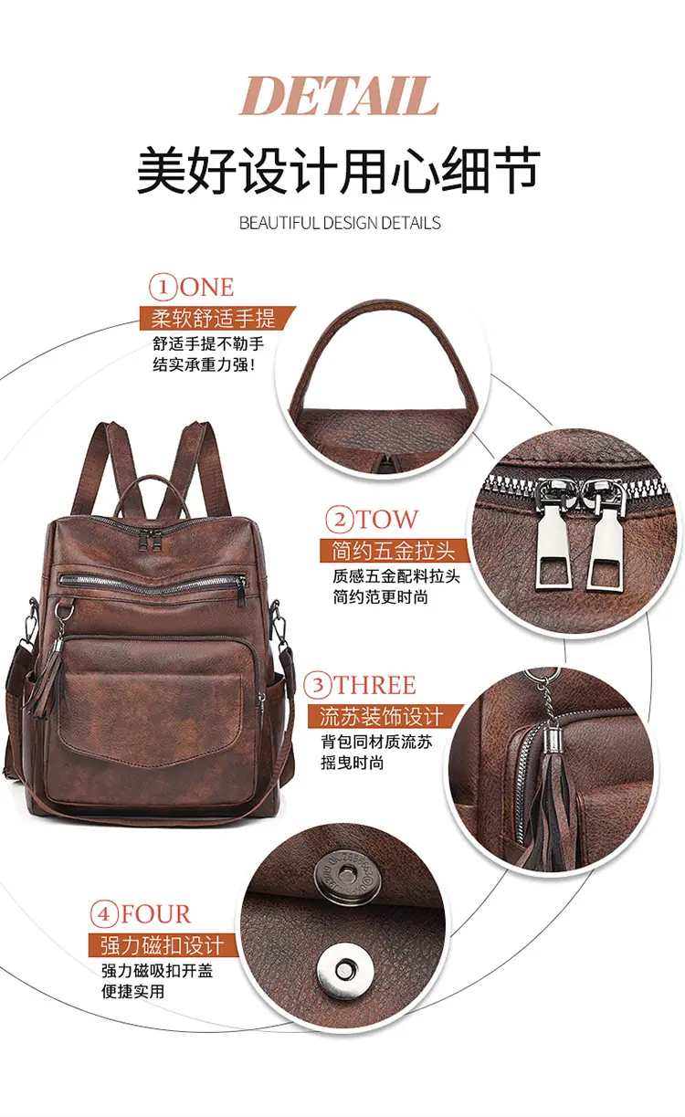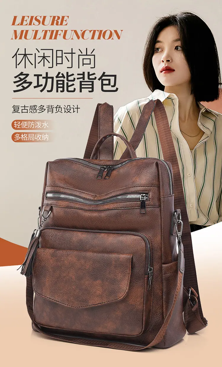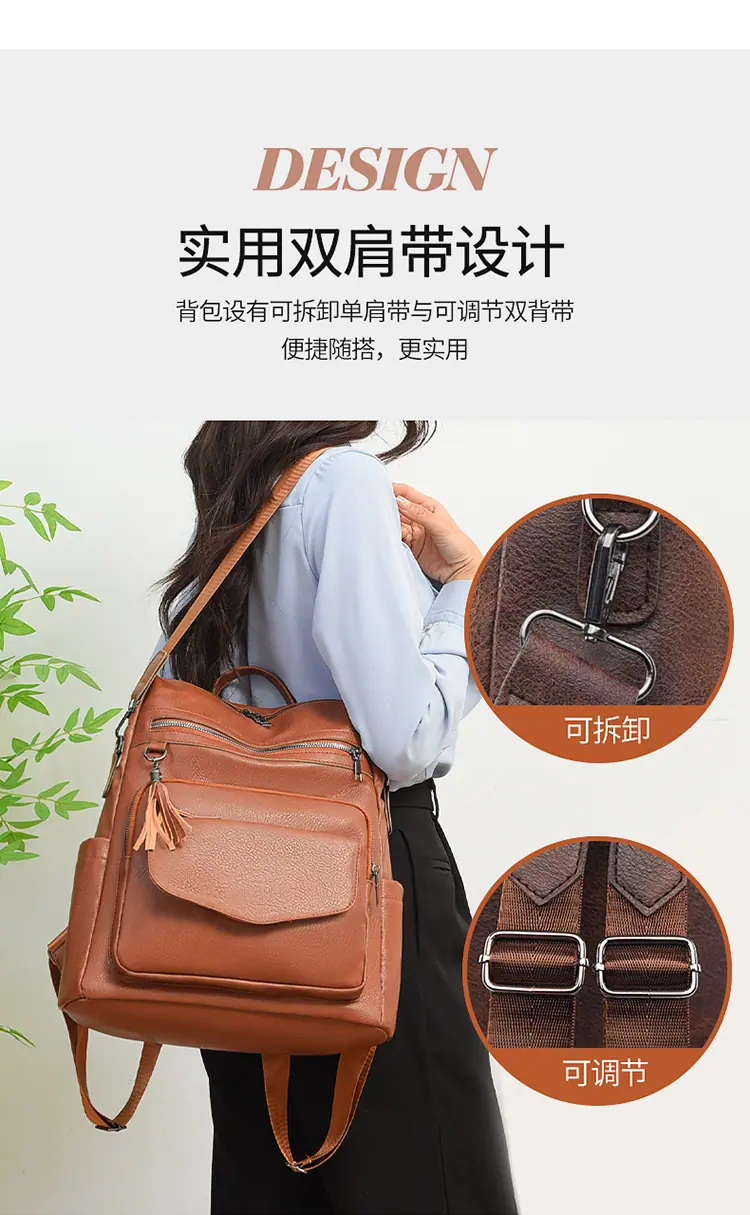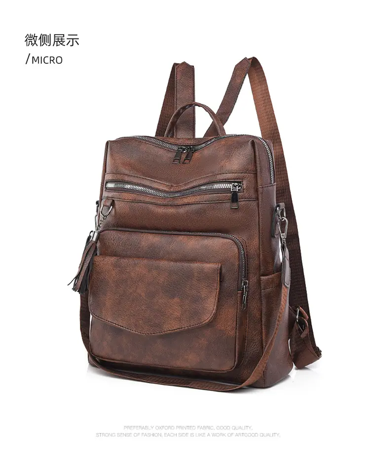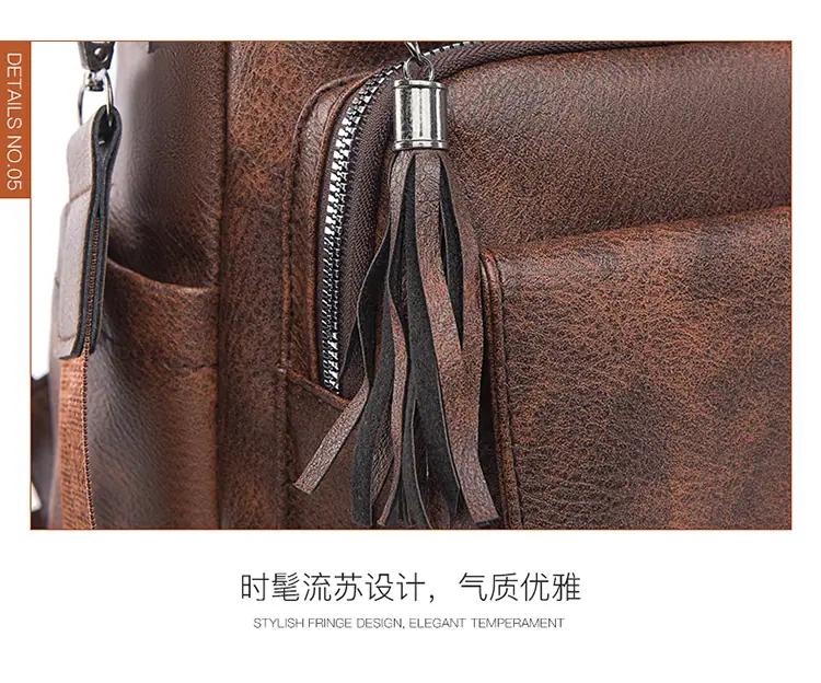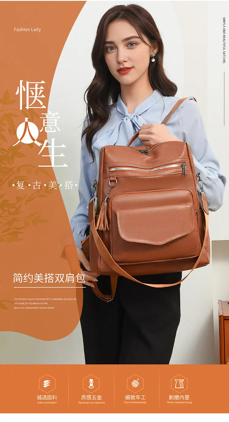 Mochila de Verano 2025 Nueva Moda Retro Europea y Americana para Mujer Mochila de Gran Capacidad Bicolor con Borlas Venta al por Mayor
