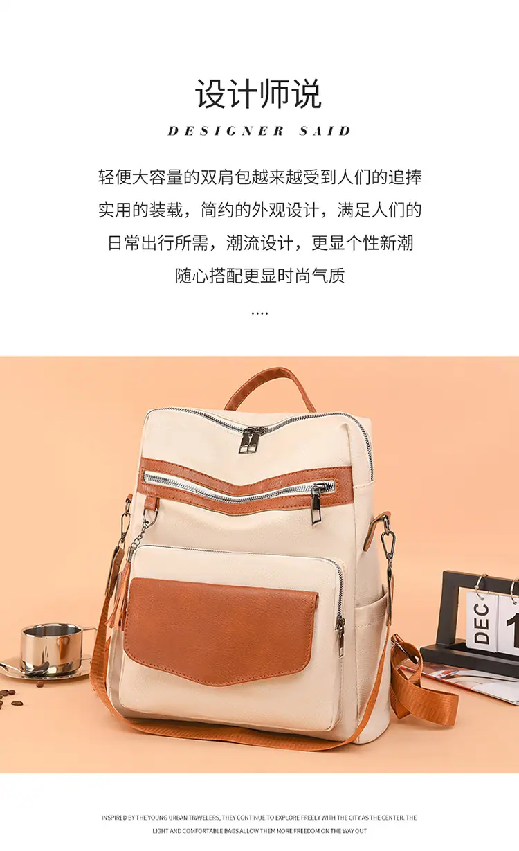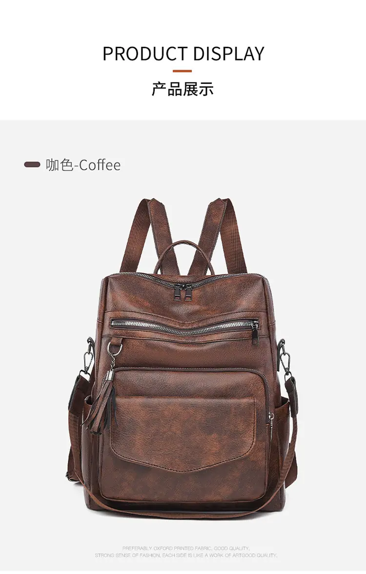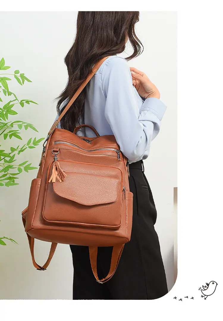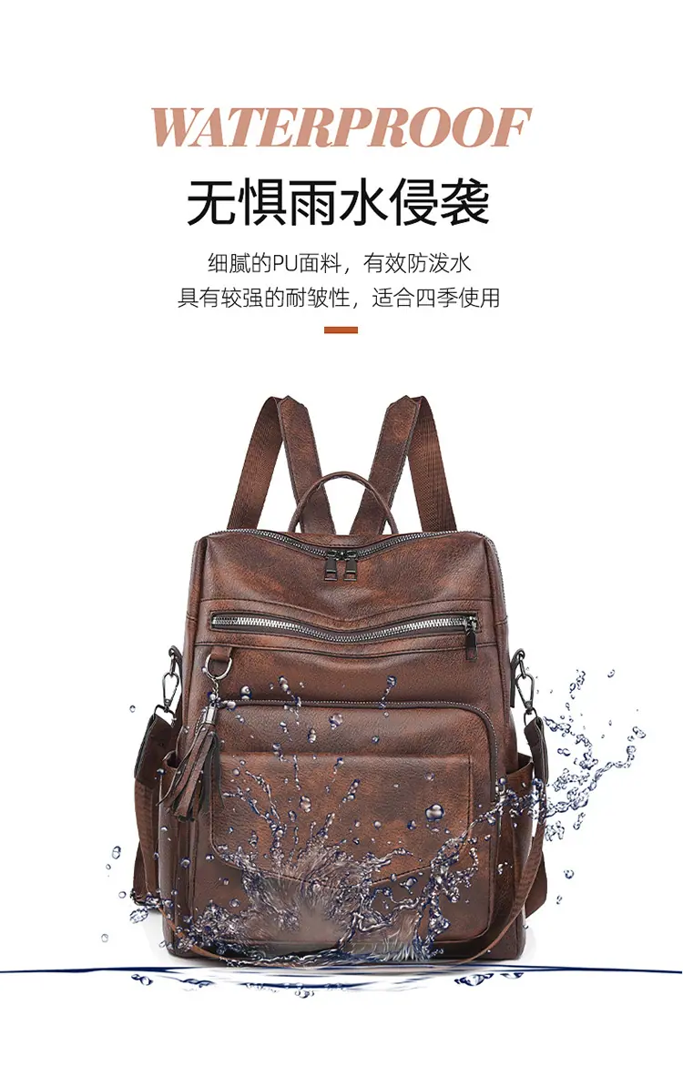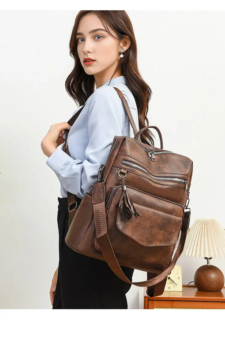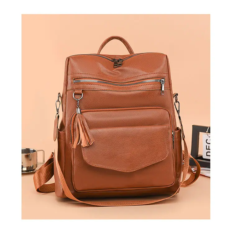 Mochila de Verano 2025 Nueva Moda Retro Europea y Americana para Mujer Mochila de Gran Capacidad Bicolor con Borlas Venta al por Mayor