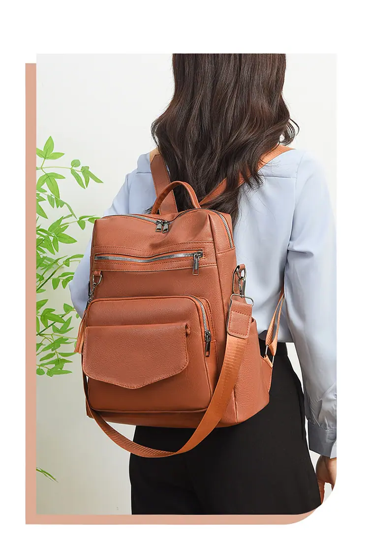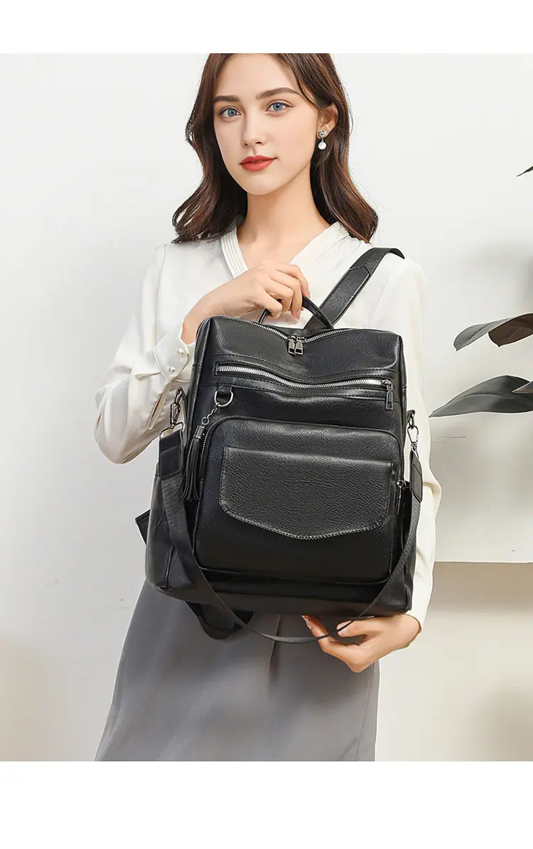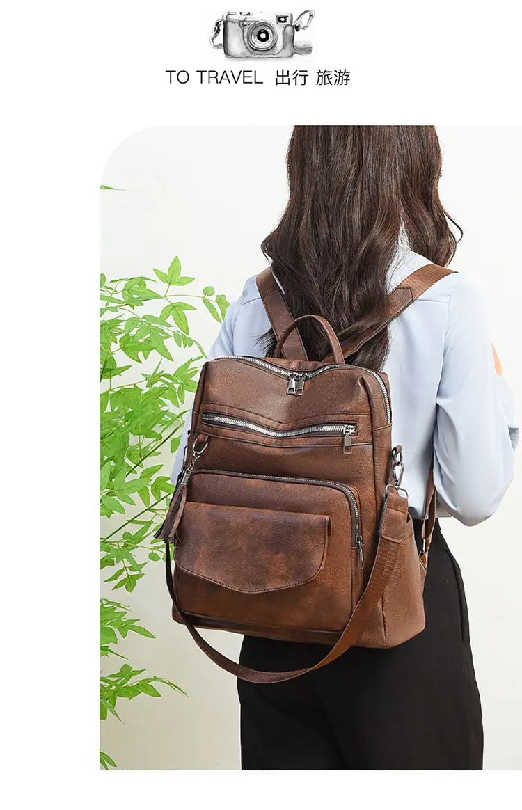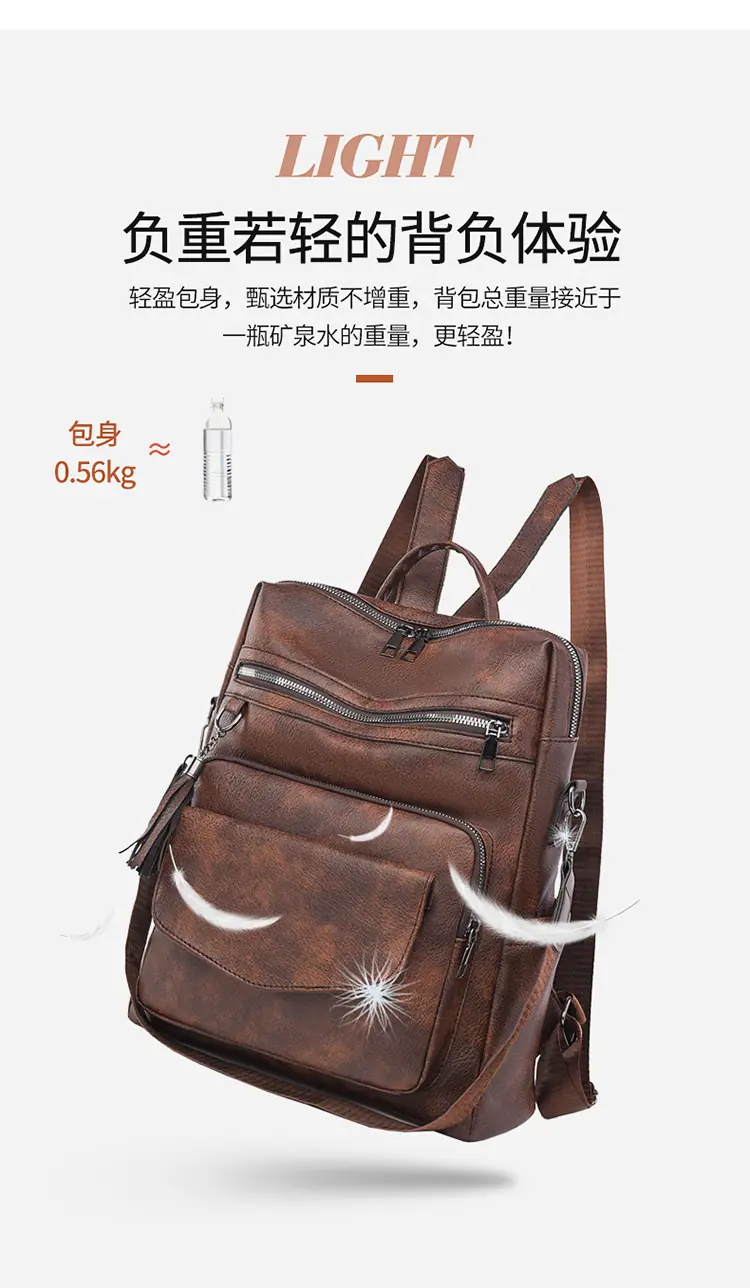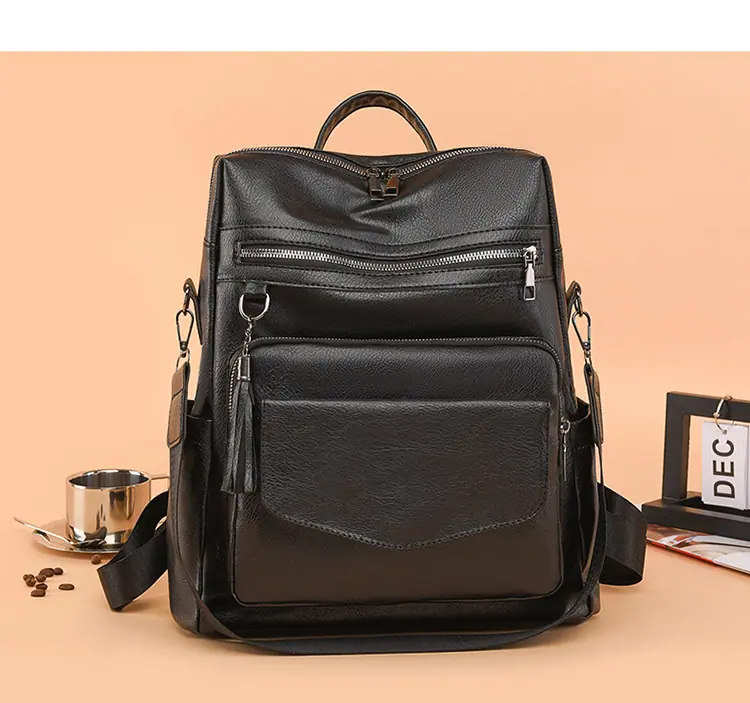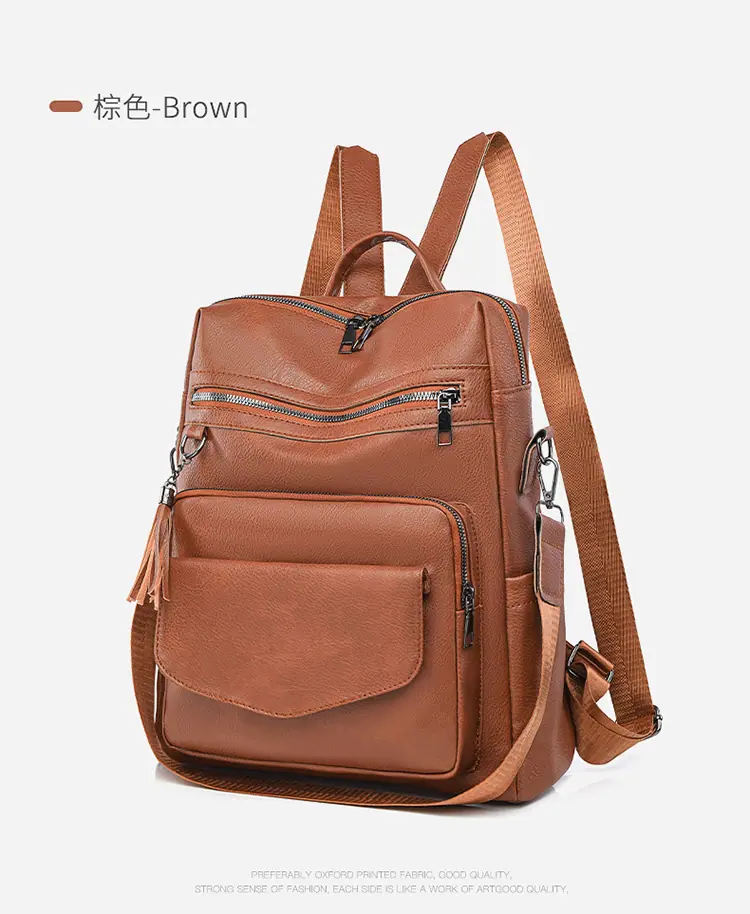 Mochila de Verano 2025 Nueva Moda Retro Europea y Americana para Mujer Mochila de Gran Capacidad Bicolor con Borlas Venta al por Mayor