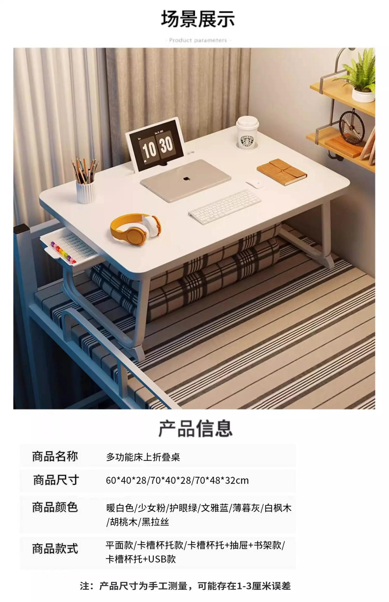 Mesa Pequeña Mesa de Cama Plegable Escritorio Plegable Mesa Pequeña Mesa para Computadora Mesa de Estudio Dormitorio Ventana Mirador Escritorio de Oficina
