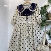 Huimei 2026 Verano Nuevo Vestido de Mujer con Cuello Solapa Estilo Japonés Algodón Lino Vestido Holgado de Longitud Media Lunares Jersey Estilo Mori