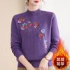 Suéter de Mamá para Mujer, Suéter de Lana de Cuello Medio Alto para Otoño e Invierno, Elegante Camiseta Base Gruesa para Mujeres de Mediana Edad y Mayores, Top Floral
