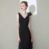 Vestido de Noche Negro Cola de Pez, Elegante Sexy Sin Espalda Banquete Anfitrión Vestido Examen de Arte, Vestido Largo Elegante de Dama Verano