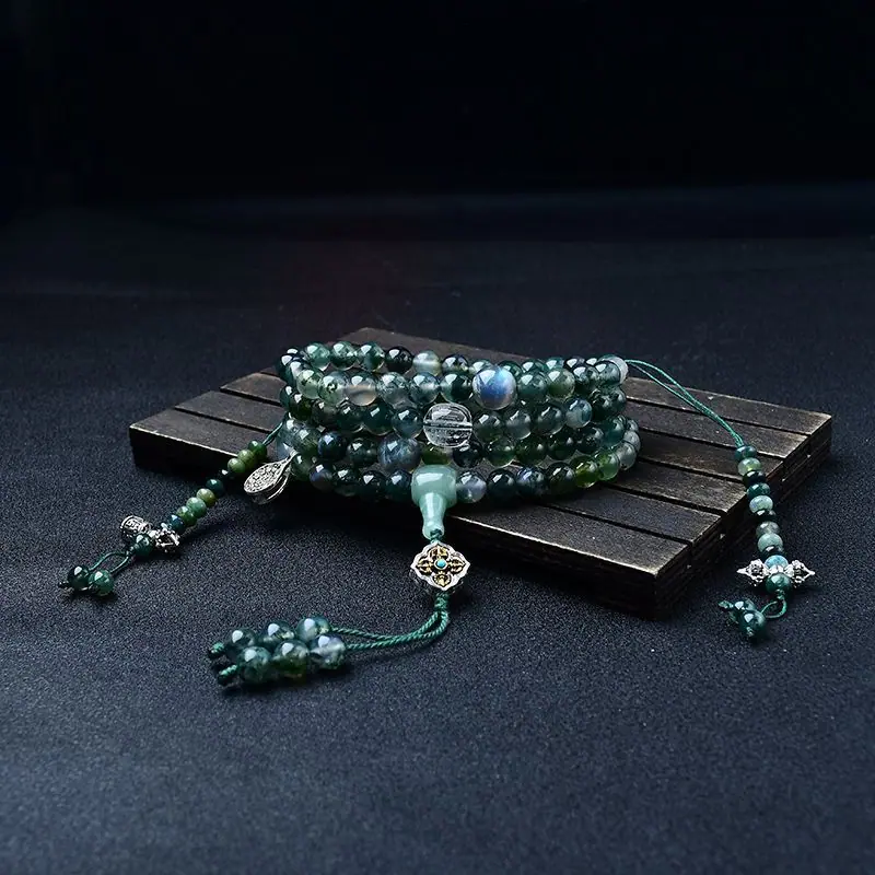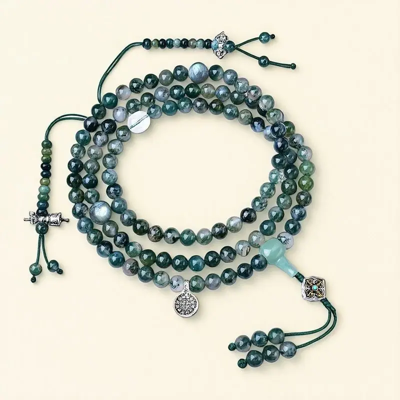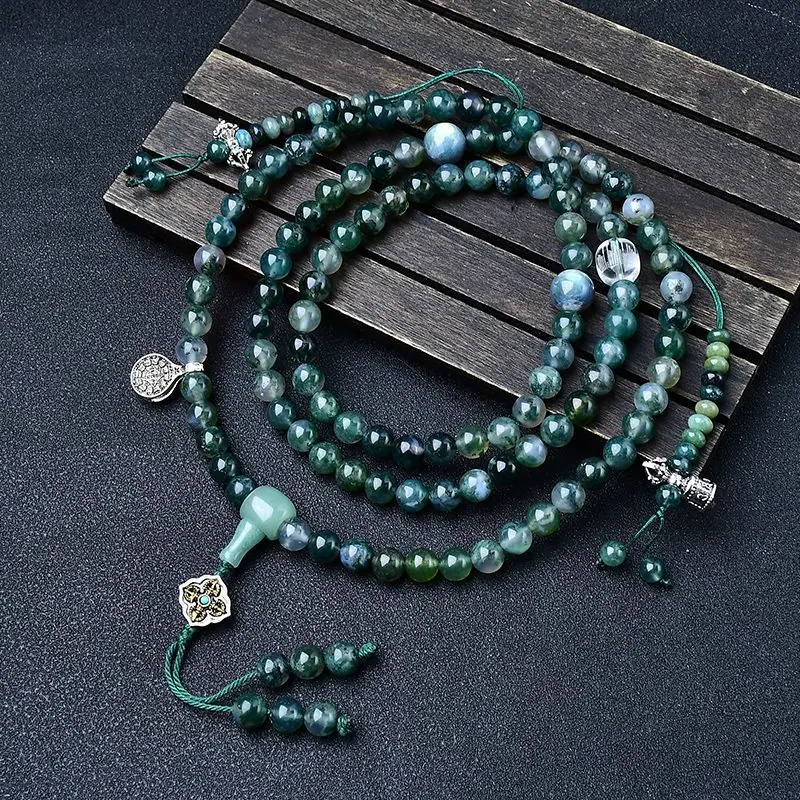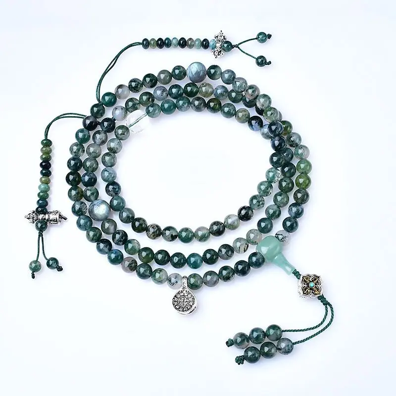 Optimizar Ágata de Agua 108 Cuentas Rosario Budista Mala de Mano Pulsera para Hombre y Mujer Collar Hilo de Mano Joyería Regalo Tara Verde