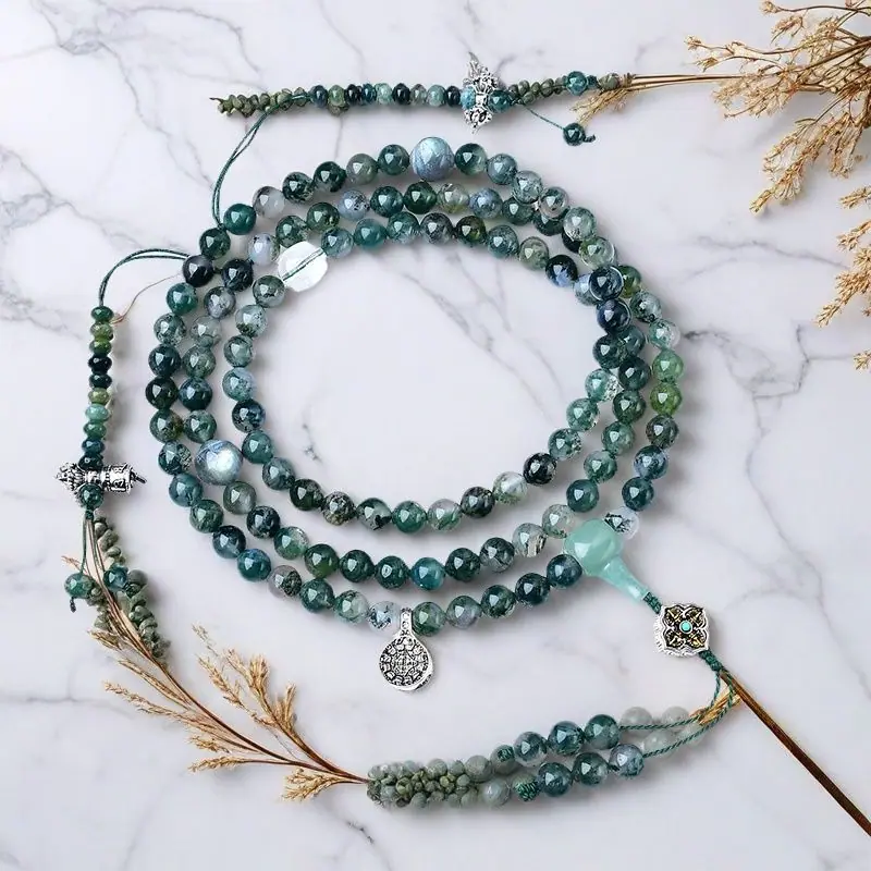 10mm Waterweed Agate Crossbody 108-Bead Mala