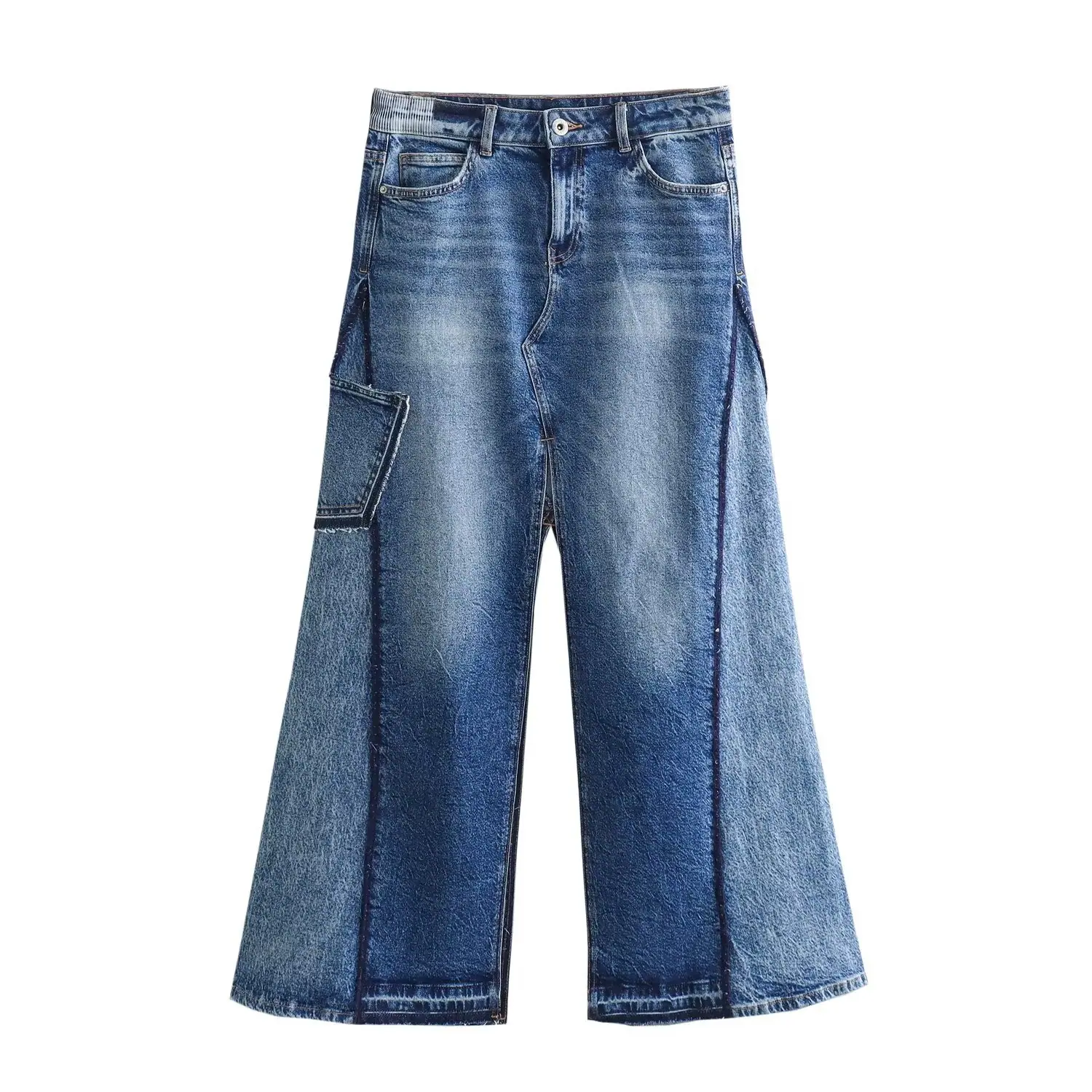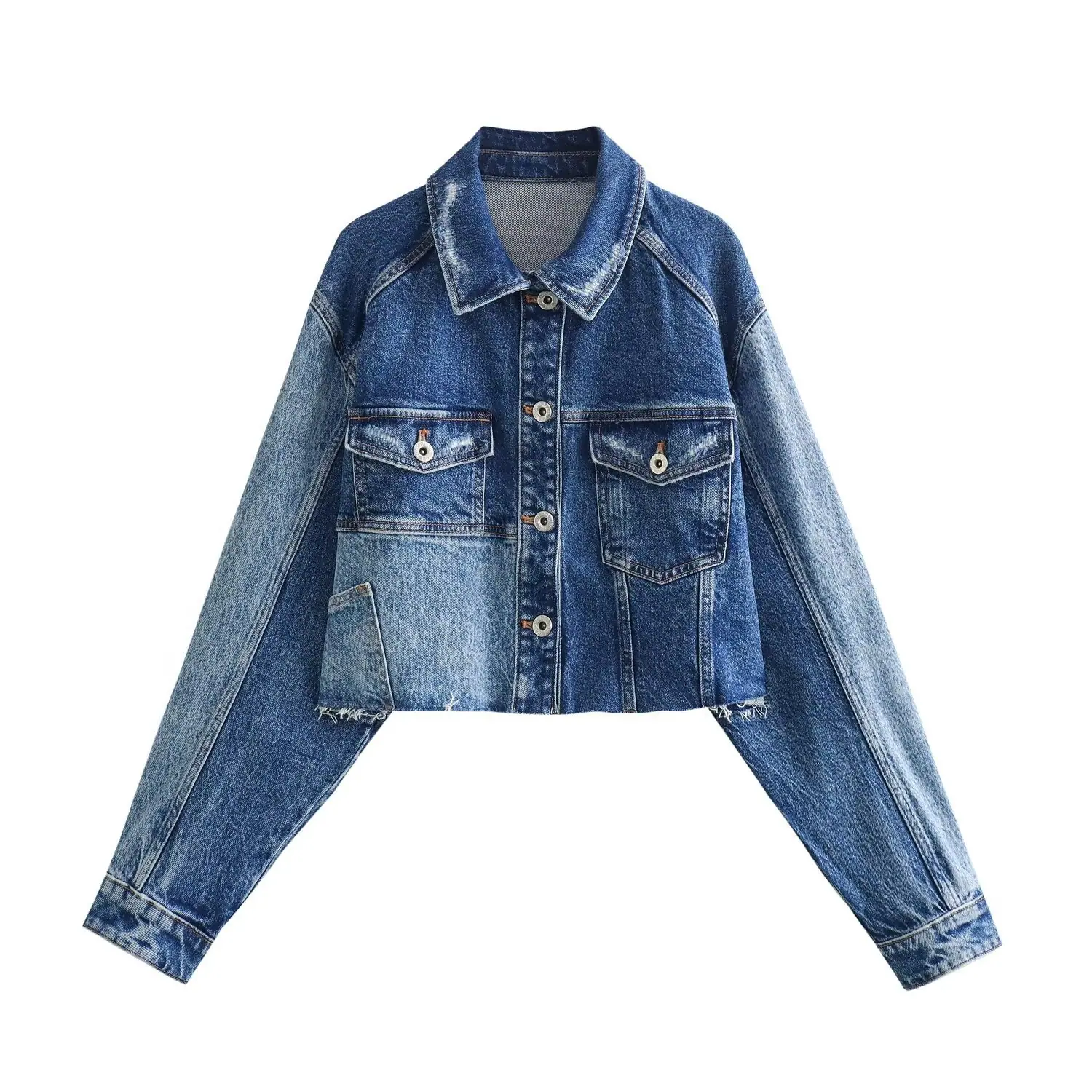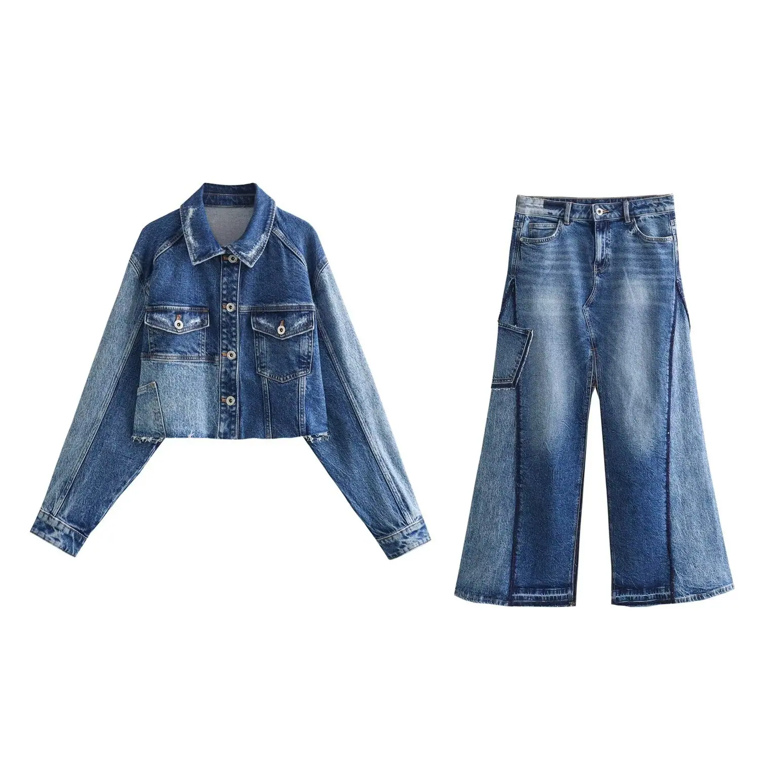 Ropa de Mujer Transfronteriza 2024 Primavera Nuevo Europeo y Americano Lavado Parcheado Chaqueta de Mezclilla + Traje de Falda con Abertura Venta al por Mayor