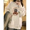 Moletom Feminino Casual com Estampa de Desenho Animado Novo Outono/Inverno 2025 Forrado em Lã Espessado Estilo Coreano Plus Size Solto Quente Top Tendência