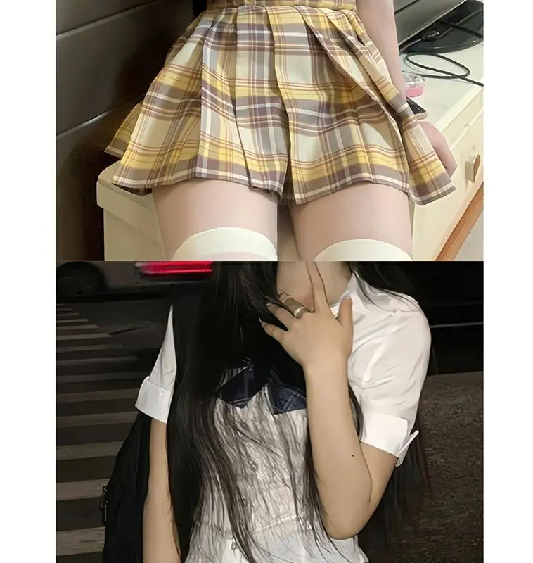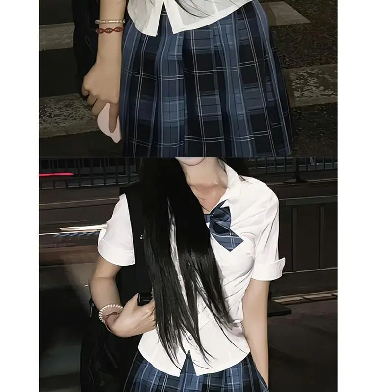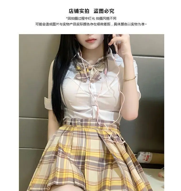 Falda Uniforme JK Estilo Universitario Set Completo Verano Chica Picante Pura Camisa Manga Corta Cintura Ajustada Estudiante Falda Plisada a Cuadros Traje