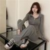Terno da Moda para Mulheres 2025 Primavera e Outono Novo Estilo Solto Casual Esportivo Calças de Perna Larga Cintura Alta Ajustado Moletom Conjunto de Duas Peças