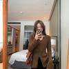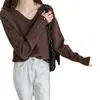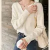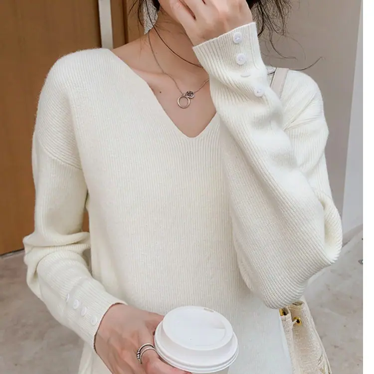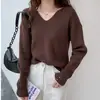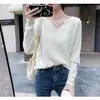 Suéter básico elegante de otoño e invierno con cuello en V y manga larga para mujer
