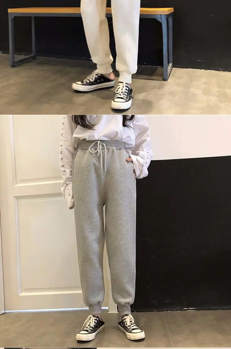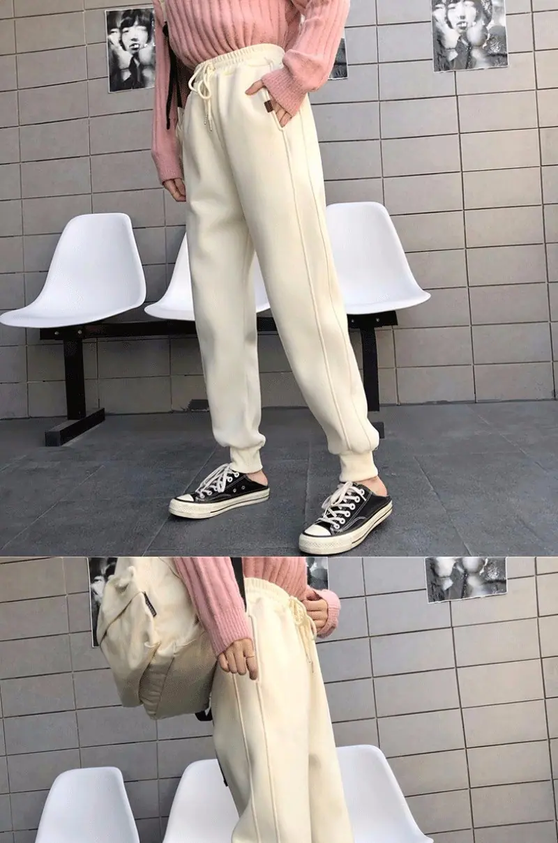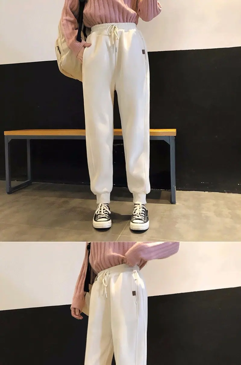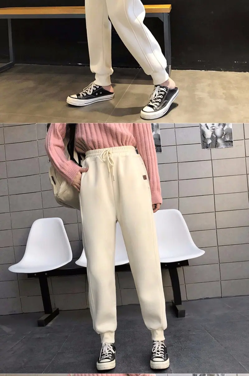 Pantalones Hallen pequeños con forro polar engrosados Otoño e Invierno Nuevos Cálidos Sueltos Casuales Deportivos Pantalones de Sudor a la Moda para Mujer
