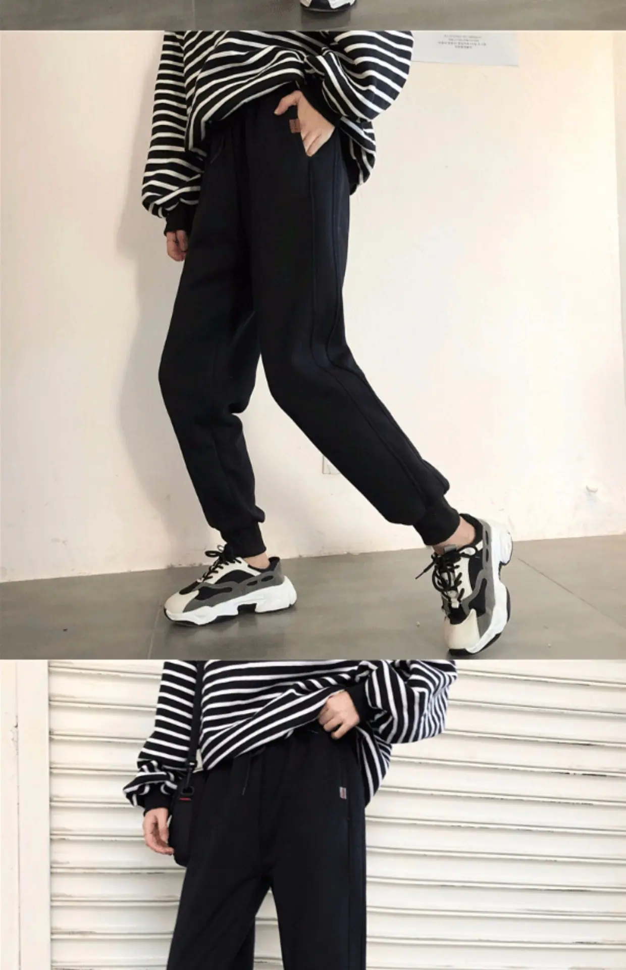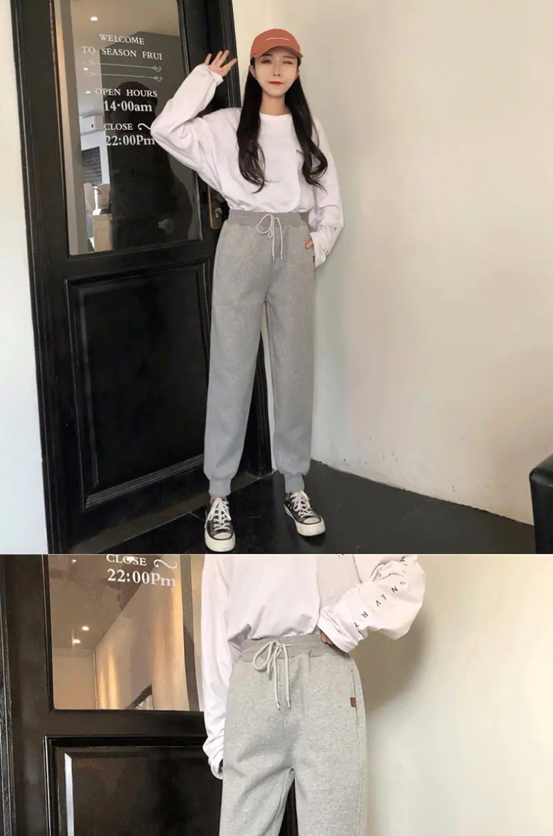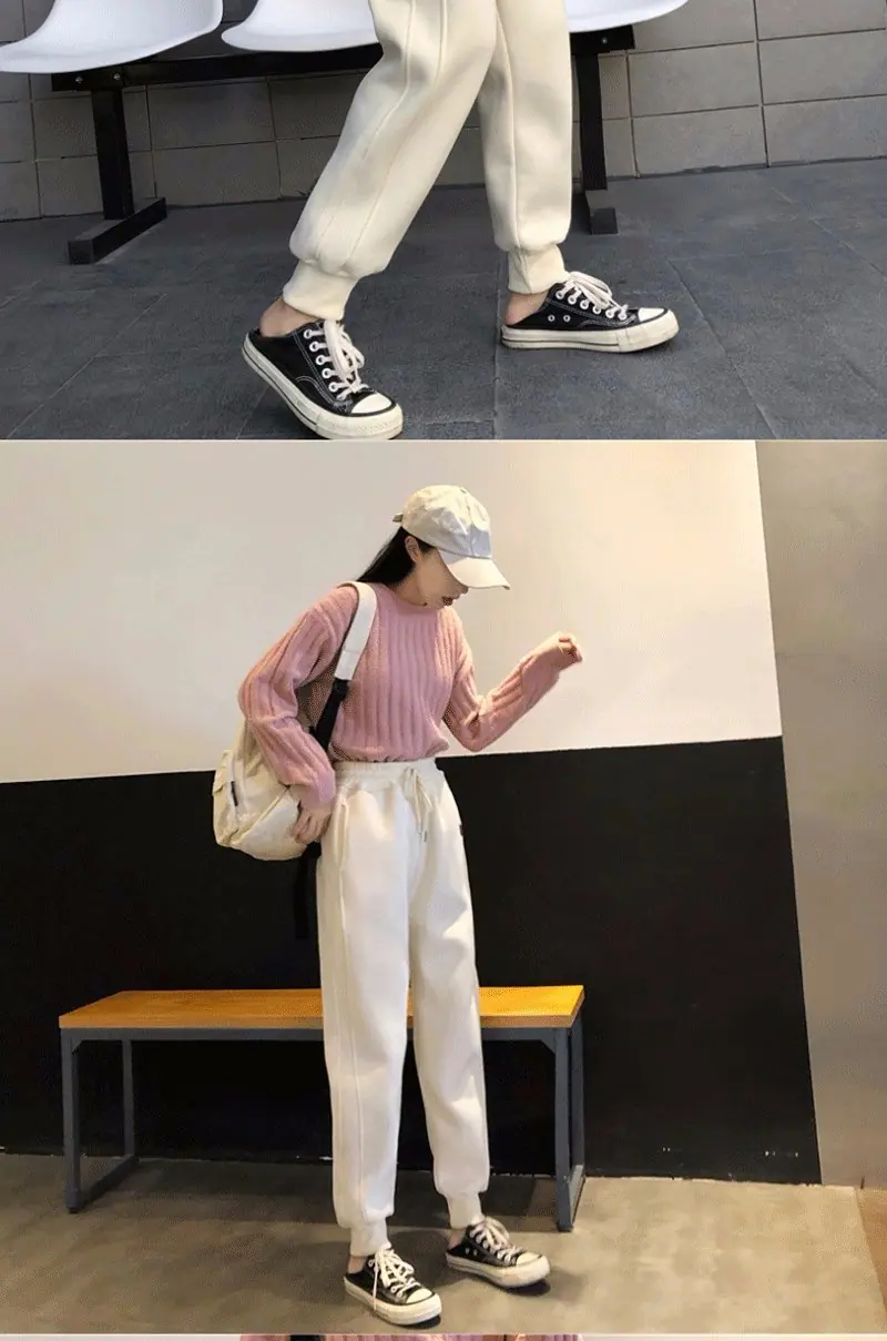 Pantalones Hallen pequeños con forro polar engrosados Otoño e Invierno Nuevos Cálidos Sueltos Casuales Deportivos Pantalones de Sudor a la Moda para Mujer