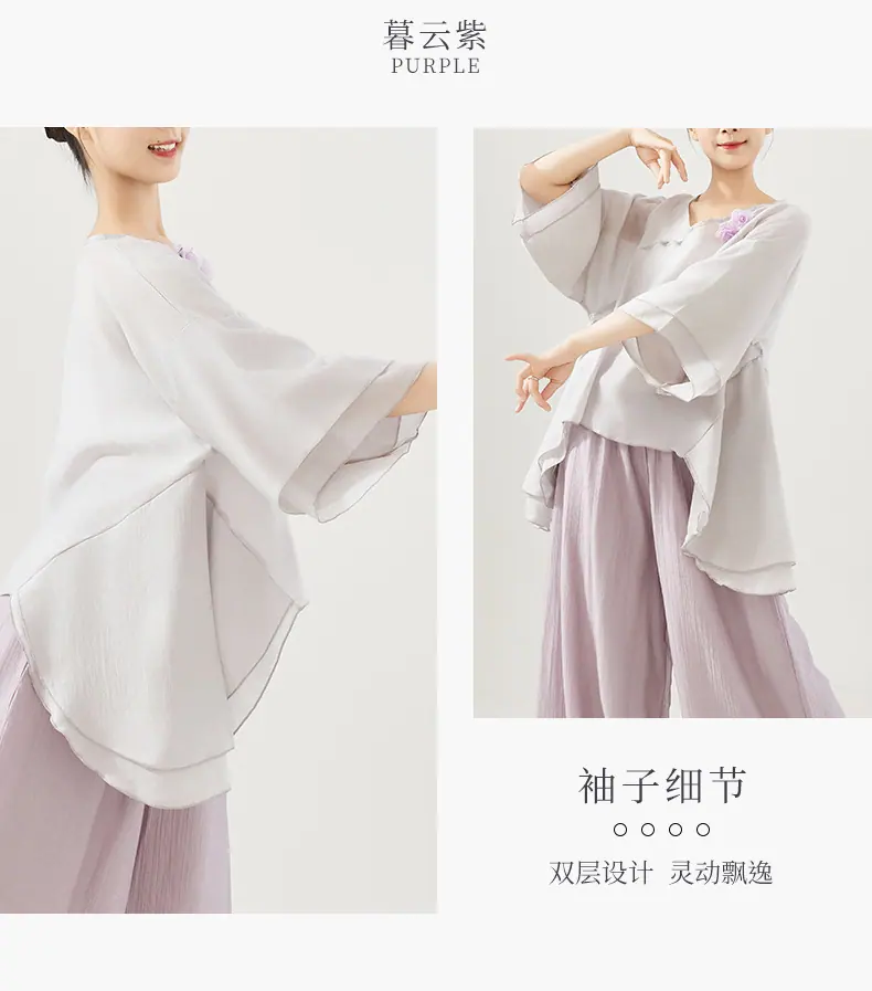 Twilight Purple Top, Moon Tea Apricot Top, Spring Cherry Pink Top, Mambo green top, Hibiscus purple pants, Yuy...