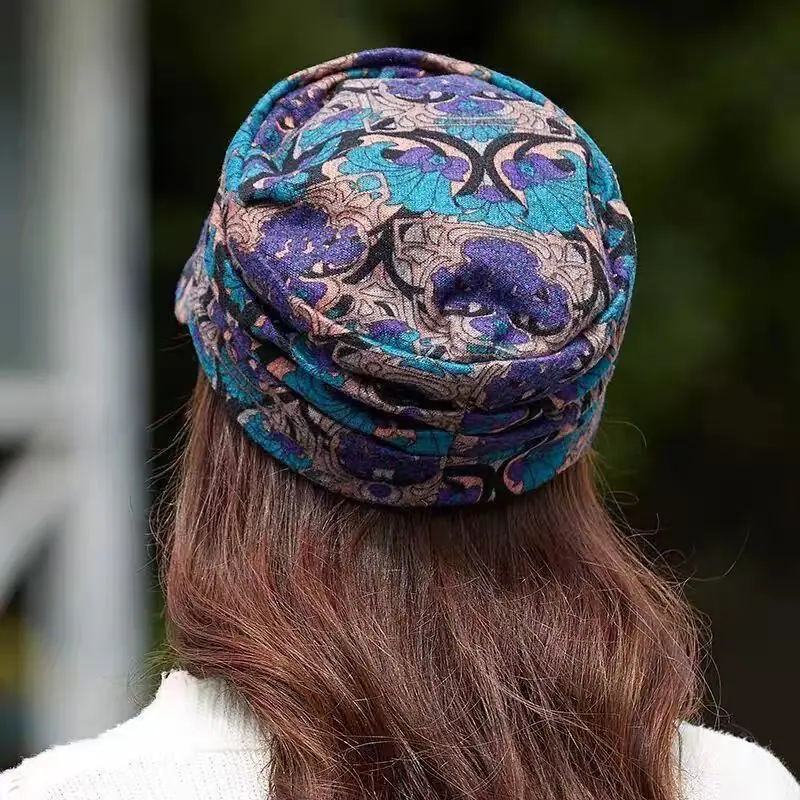 Sombrero floral nuevo 2025 para mujer estilo coreano versátil ala suave estilo étnico gorra de béisbol otoño e invierno sombrero cálido